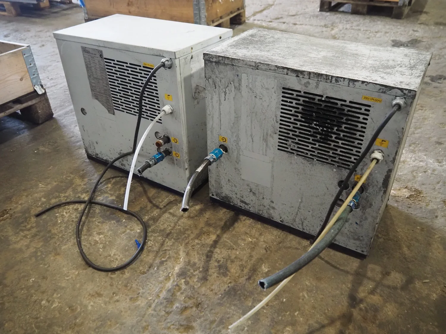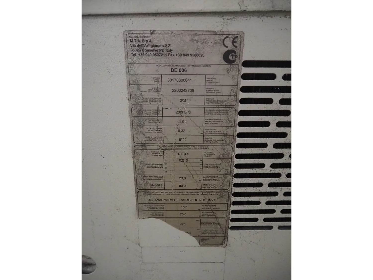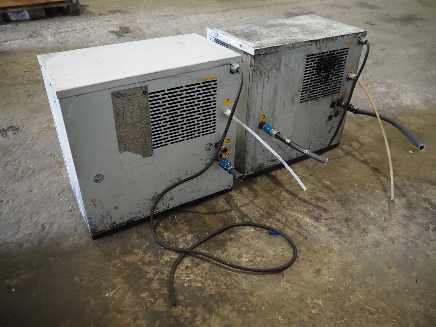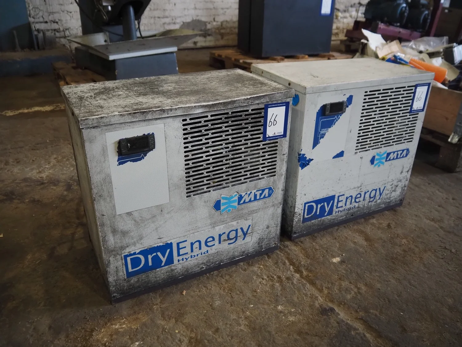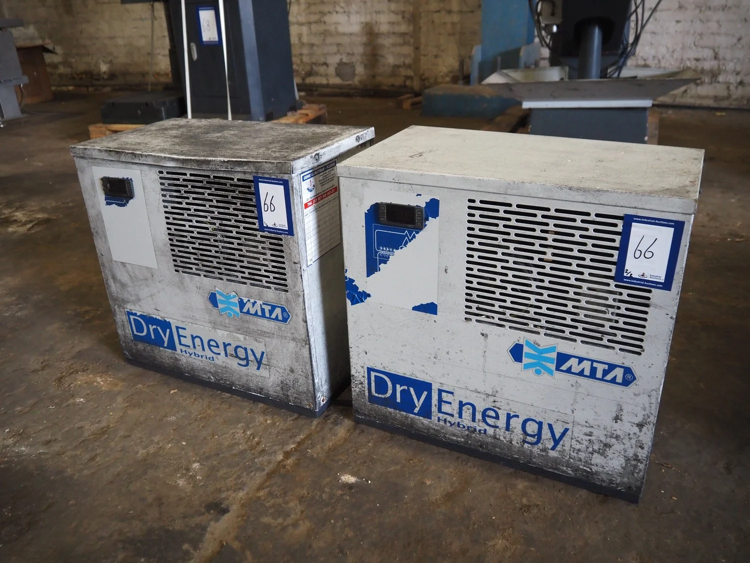 2 M.T.A. S.p.A. air dryers, model: DE 006, serial number: 2200242709, year of construction: 2014, 230 V, 1 Ph, 50 Hz, 1.9 A, 0.32 kW, refrigerant: R134a, 0.21 kg, dimensions: (2x) 530 mm x 300 mm x 510 mm.
