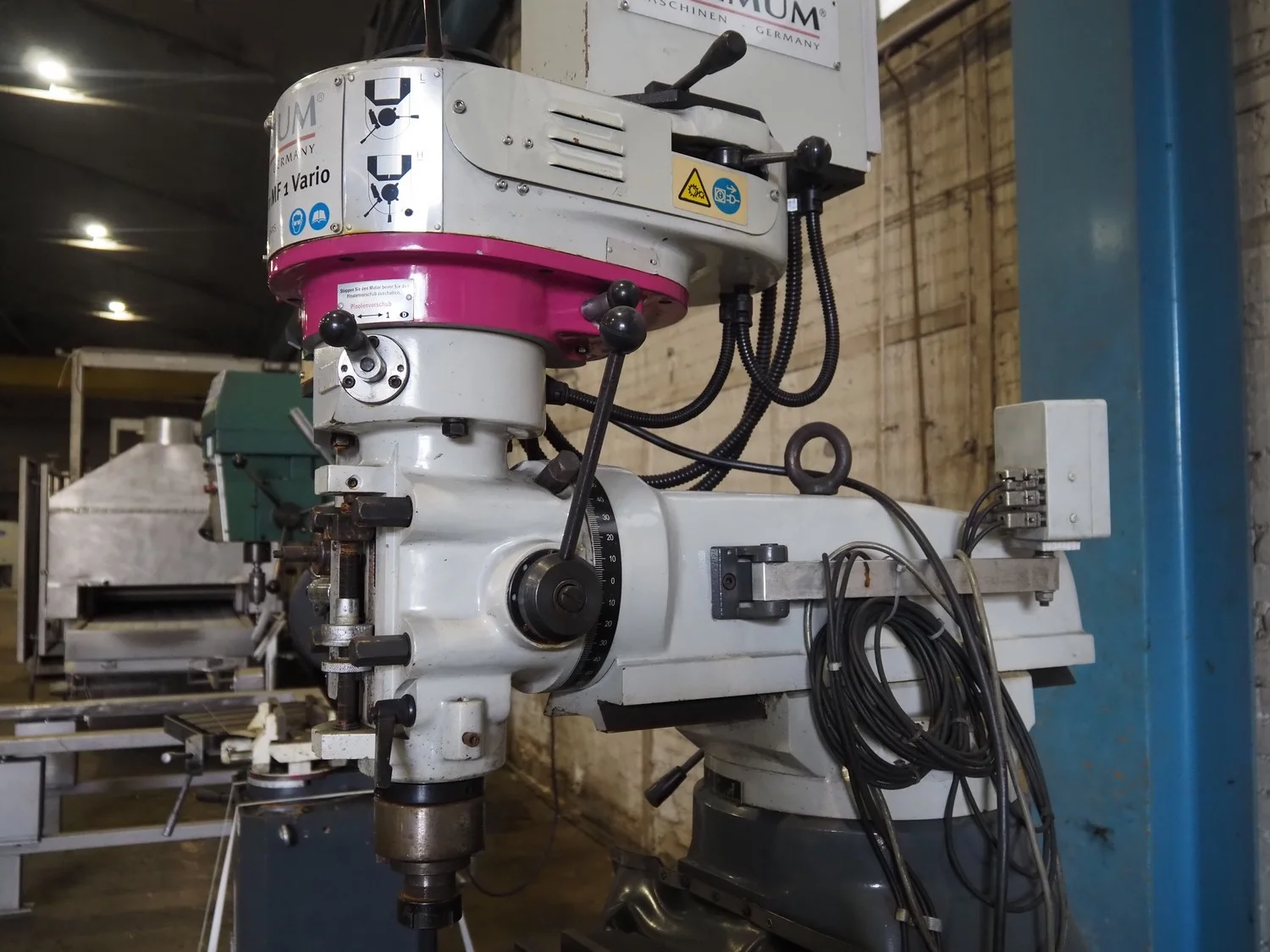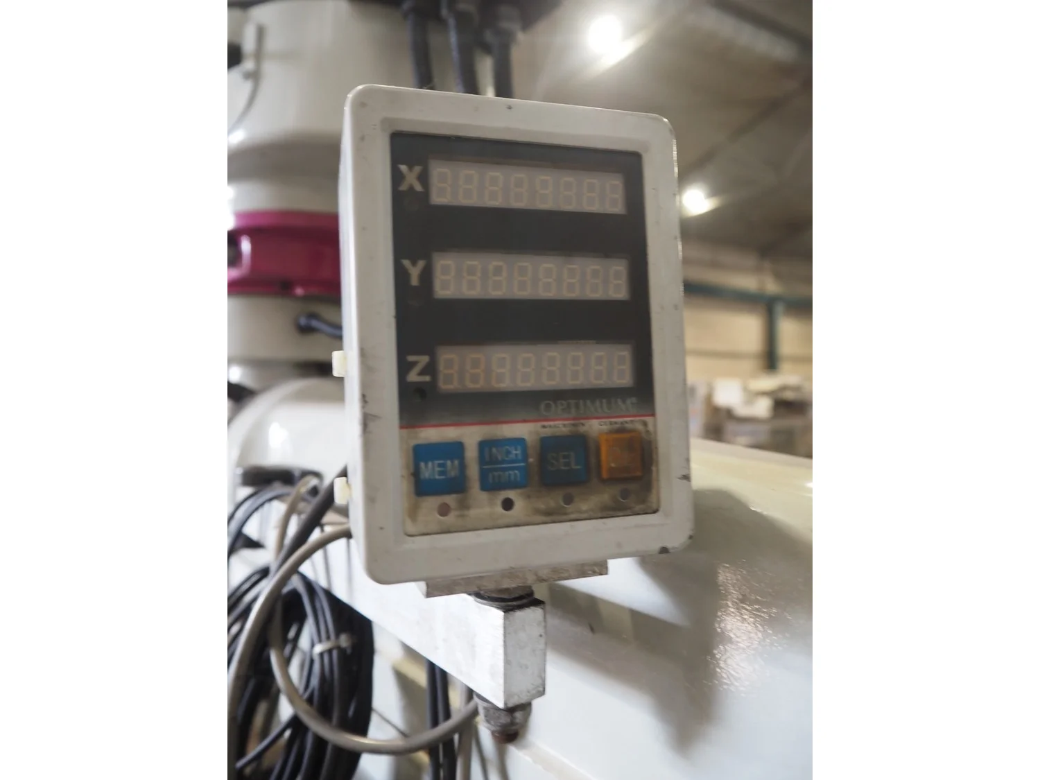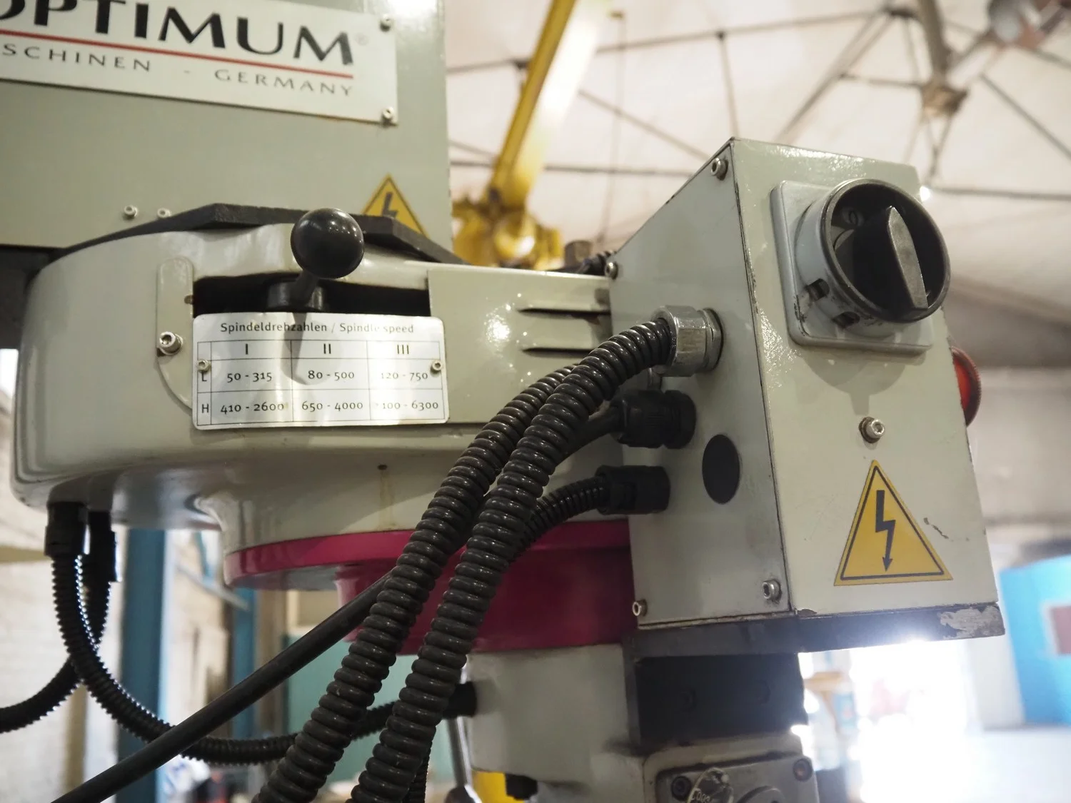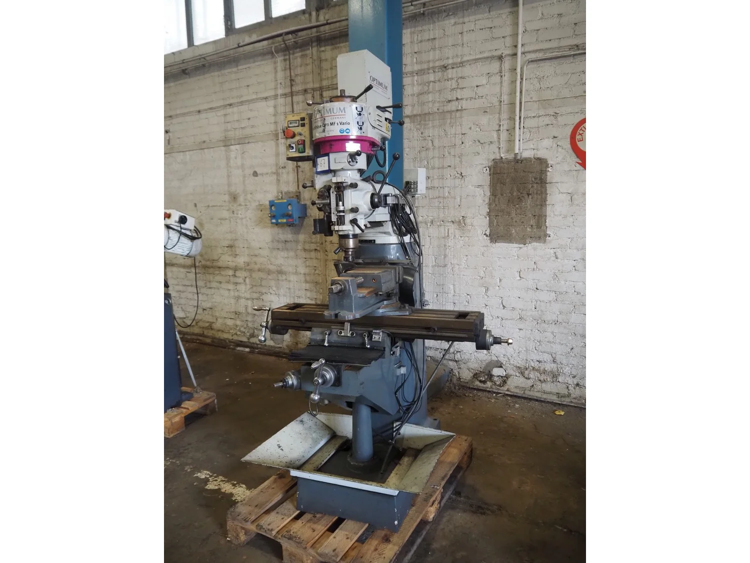 Optimum Maschinen column drill, serial number: J1101045, year of construction: 2011, 230 V, 50 Hz, 2.2 kW, weight: 930 Kg, dimensions: 1250 mm x 1100 mm x 2000 mm.