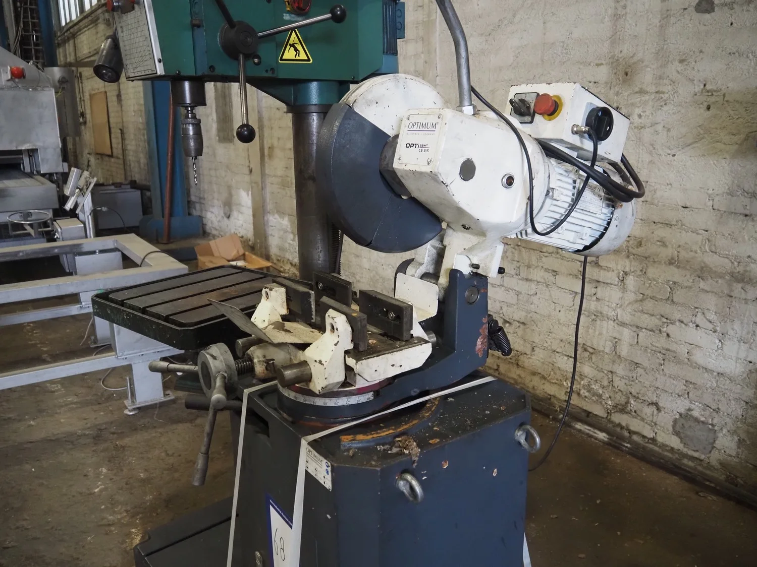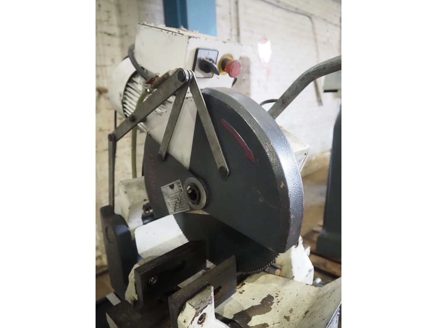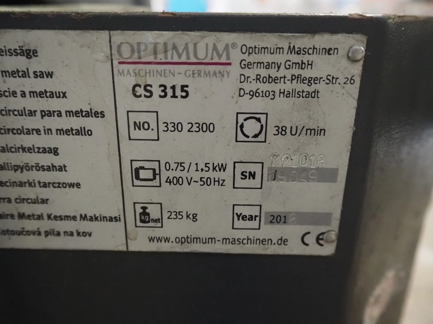 Optimum Maschinen metal saw, number: 330 2300, serial number: 221018 09049, year of construction: 2018, 400 V, 50 Hz, 1.75/1.5 kW, weight: 235 Kg, ⌀ saw blade: 300 mm, total dimensions: 630 mm x 950 mm x 1750 mm.