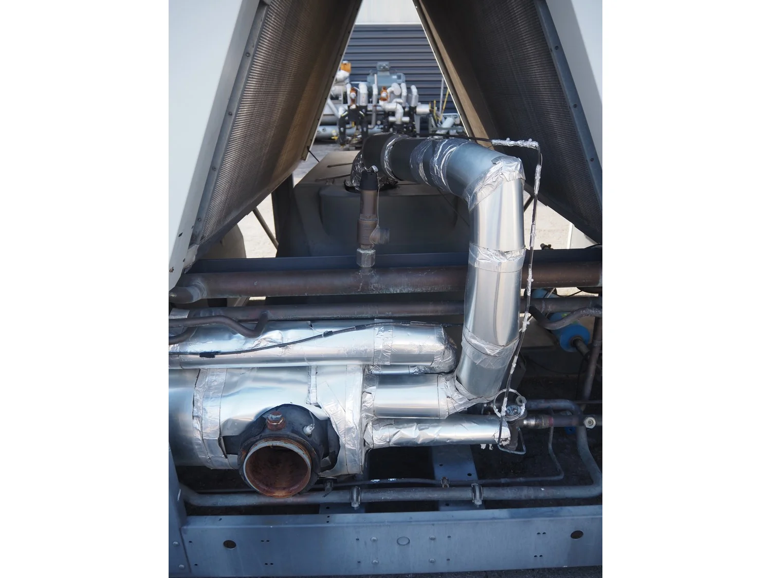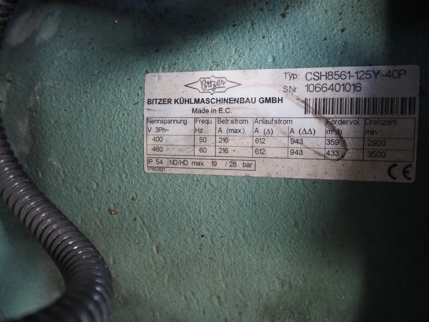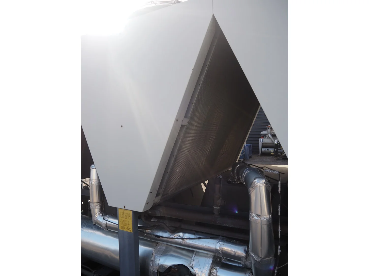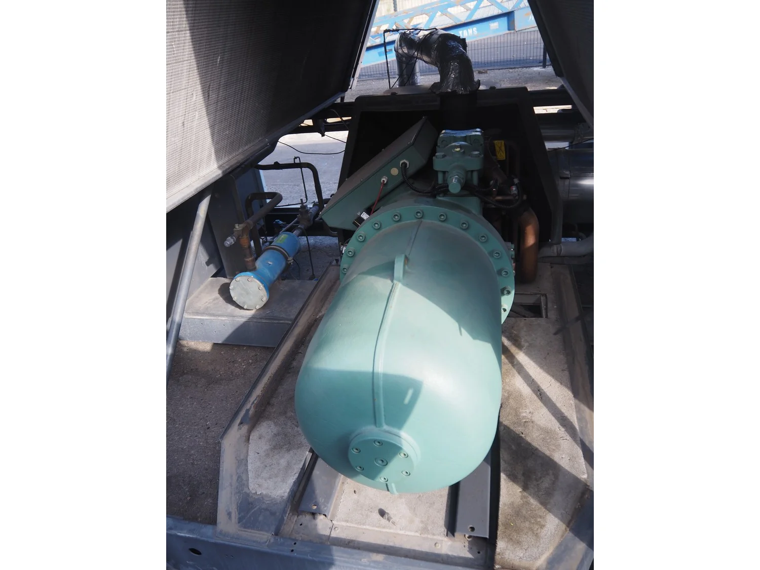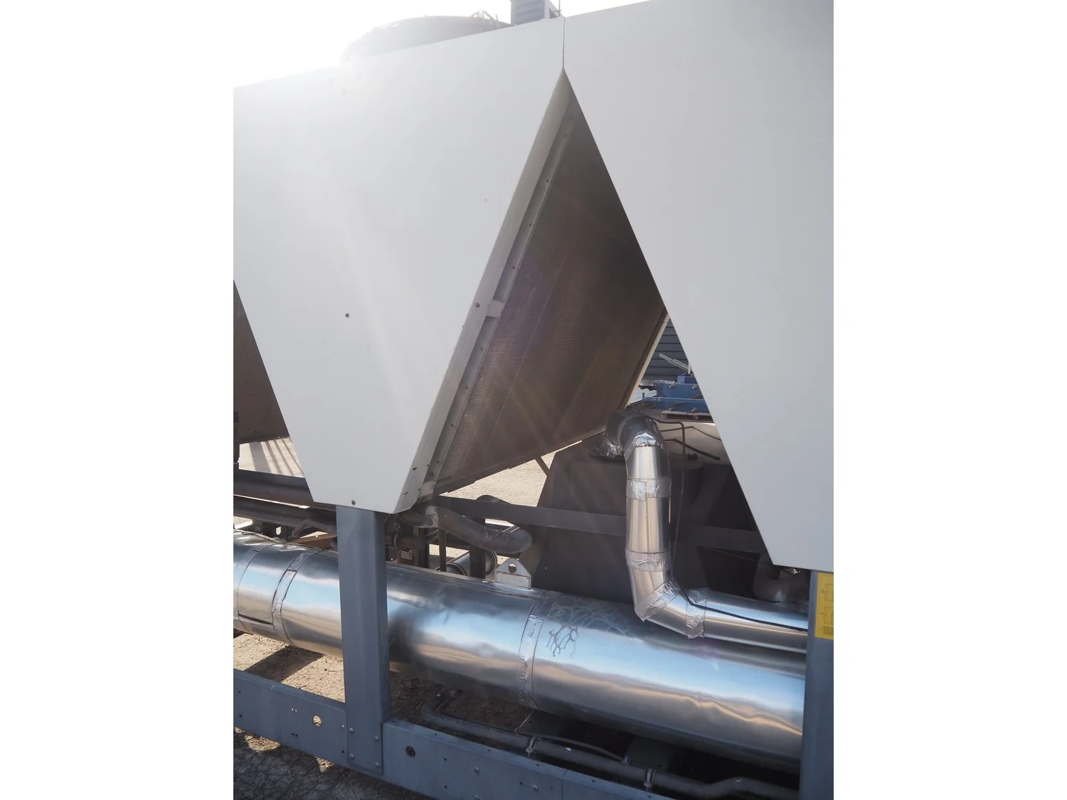 Ciat air cooled chiller, model: LX 2500Z-HPS R407C, serial number: 00555645/0002, year of construction: 2004, 400 V, 3 Ph, 50 Hz, 462 A, cooling capacity: 594 kW, heating capacity: 242.3 kW, weight: 5327 kg, refrigerant: R407C, gas inside, 60+60 kg, 4 fans, with 2 Bitzer Kühlmaschinenbau GmbH cooling compressors, type: (2x) CSH8561-125Y-40P, capacity: 359/433 m³ per hour, total dimensions: 5550 mm x 2200 mm x 2550 mm.