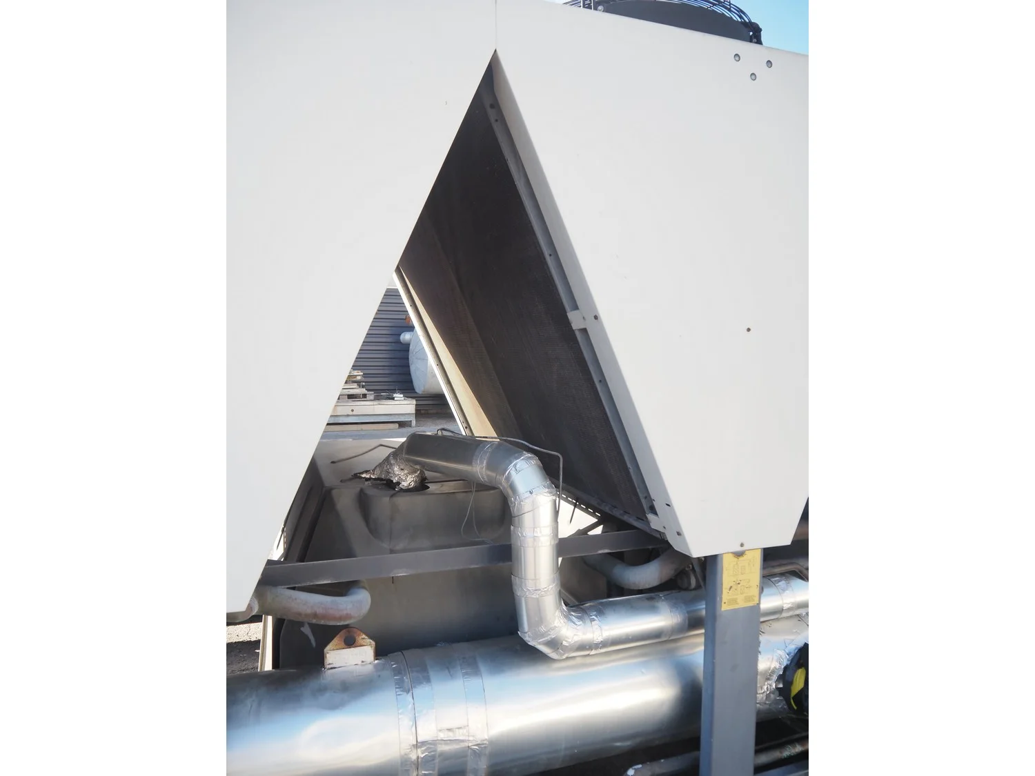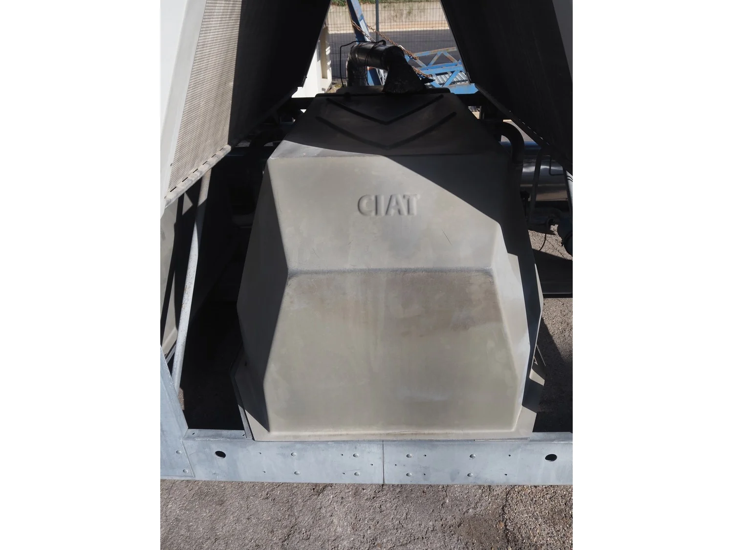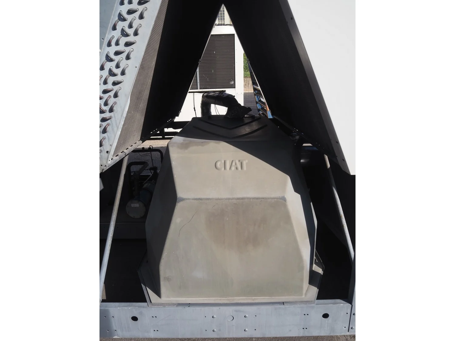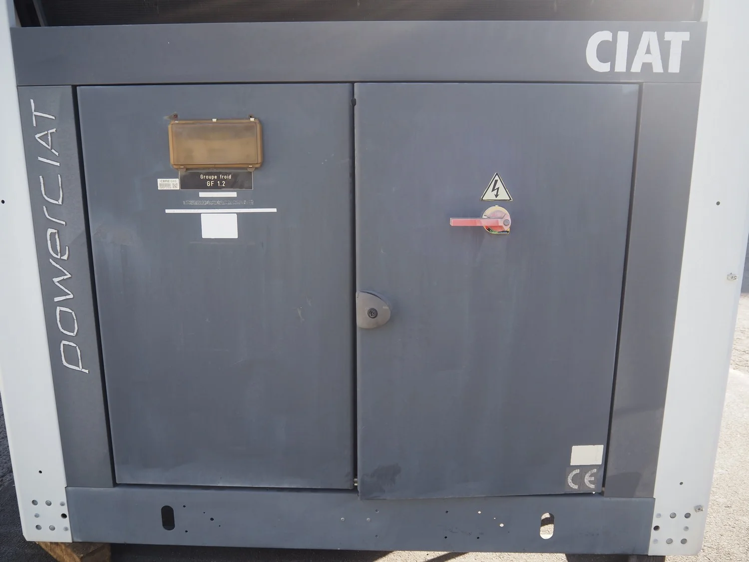 Ciat air cooled chiller, model: LX 2500Z-HPS, cooling capacity: 594 kW, refrigerant: R407C, gas inside, 4 fans, with 2 Bitzer Kühlmaschinenbau GmbH cooling compressors, type: CSH8561-125Y-40P, capacity: 359/433 m³ per hour, total dimensions: 5550 mm x 2200 mm x 2550 mm.