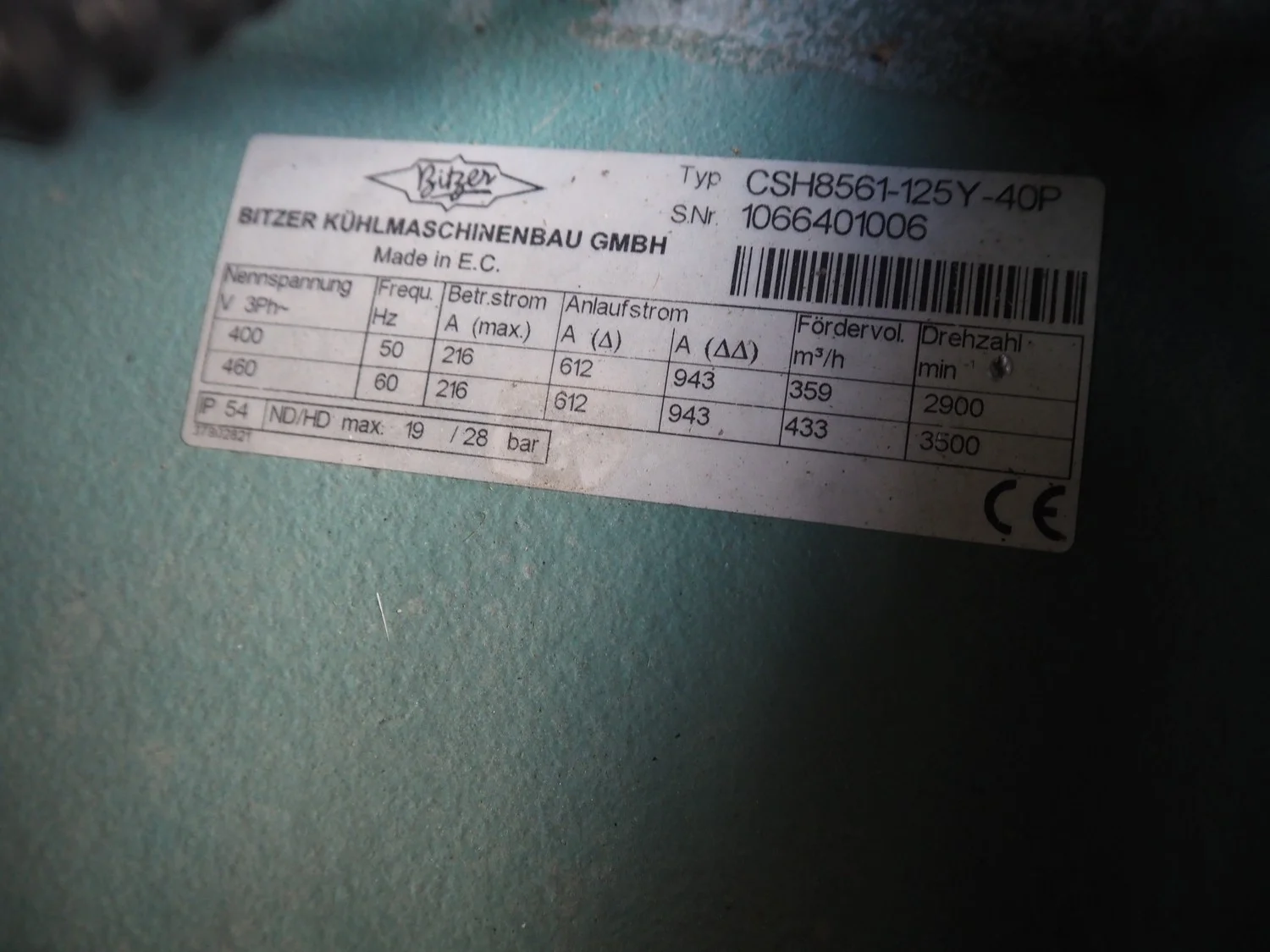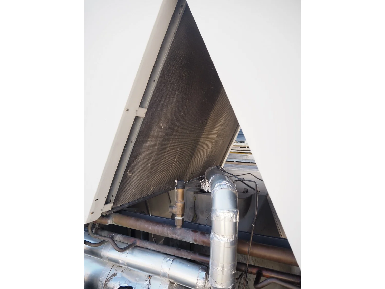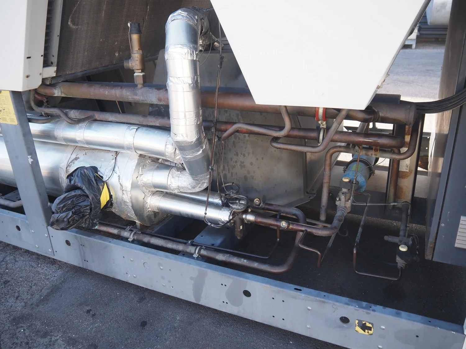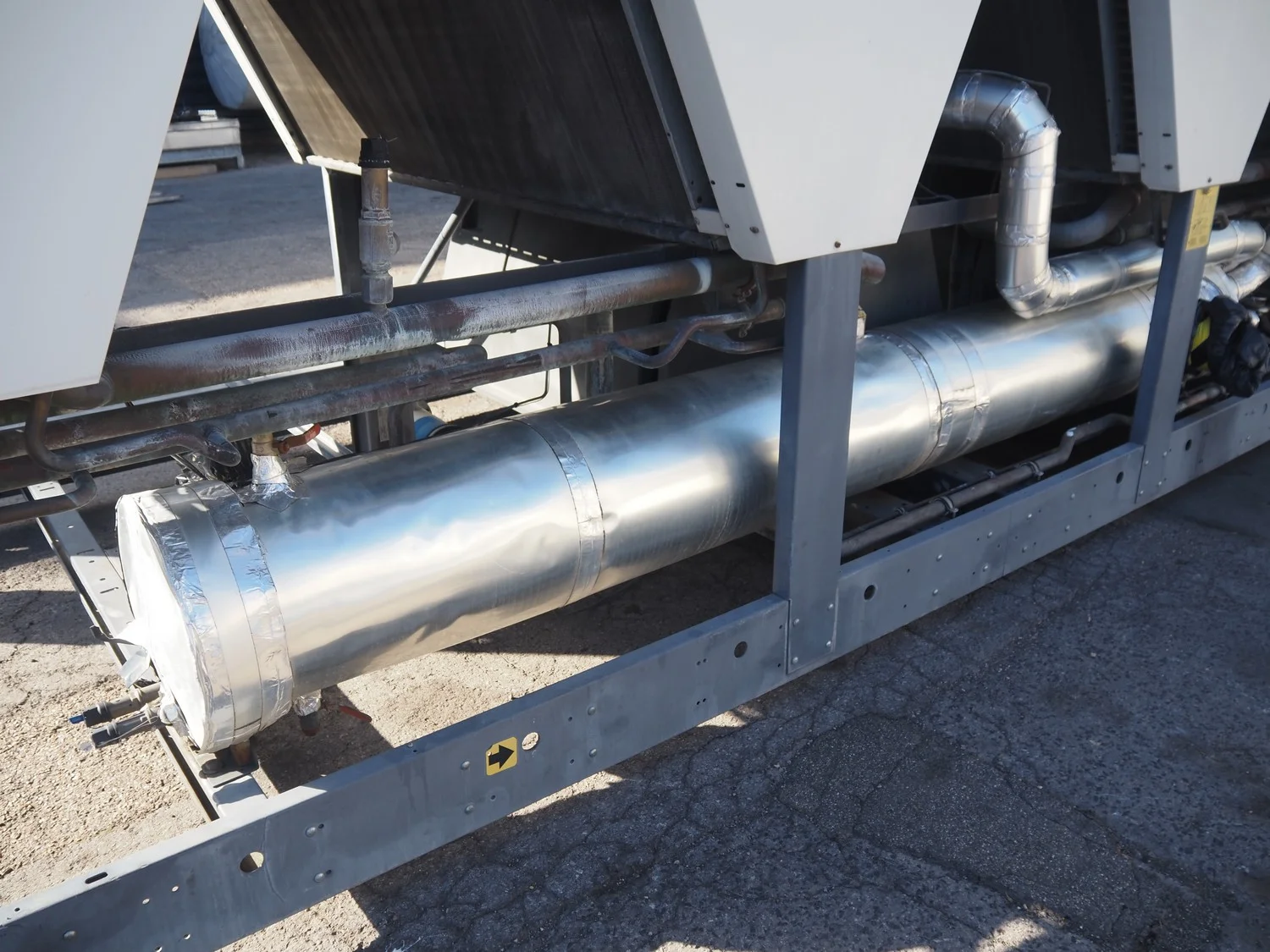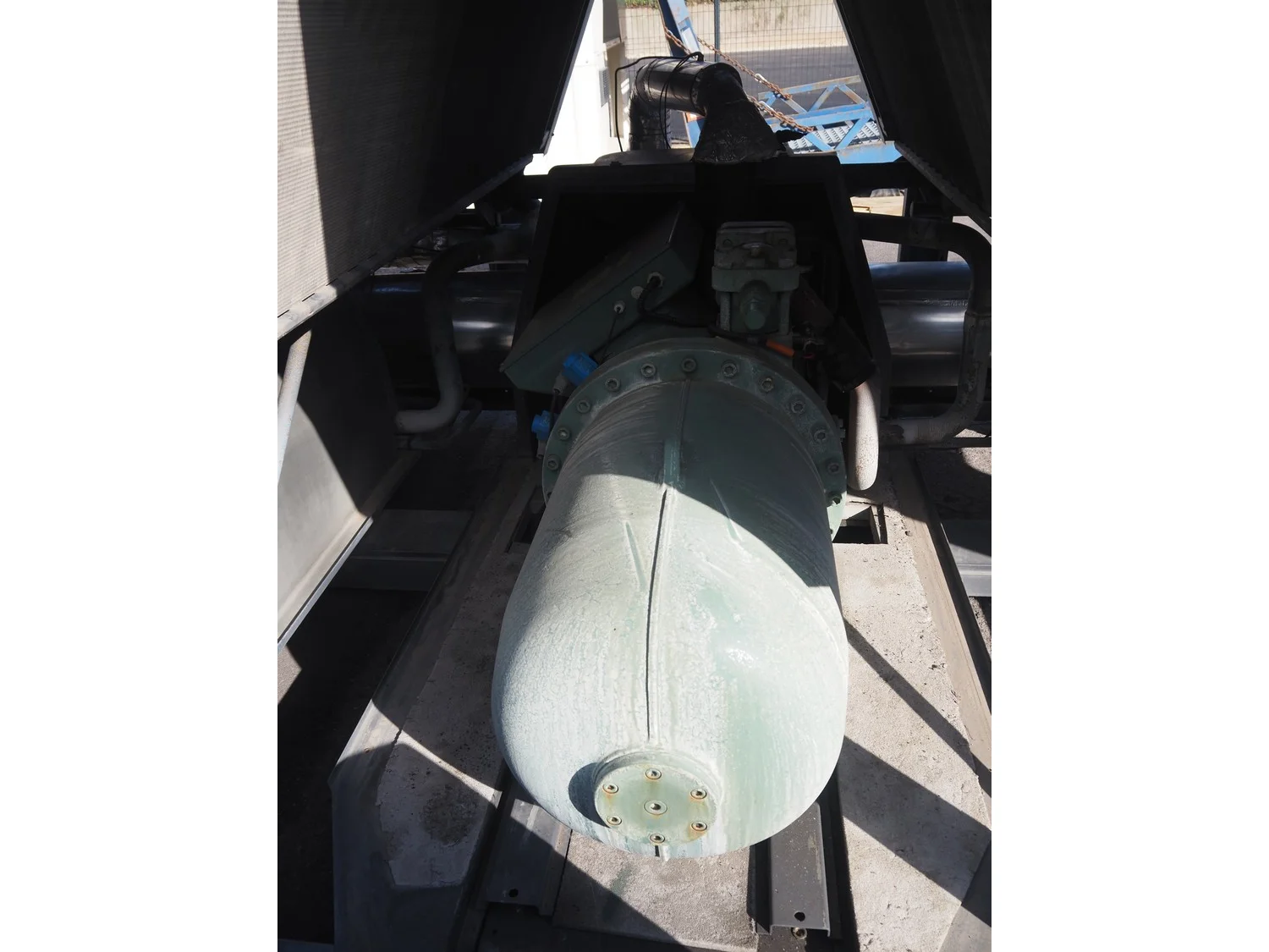 Ciat air cooled chiller, model: LX 2500Z-HPS, cooling capacity: 594 kW, refrigerant: R407C, gas inside, 4 fans, with 2 Bitzer Kühlmaschinenbau GmbH cooling compressors, type: CSH8561-125Y-40P, capacity: 359/433 m³ per hour, total dimensions: 5550 mm x 2200 mm x 2550 mm.
