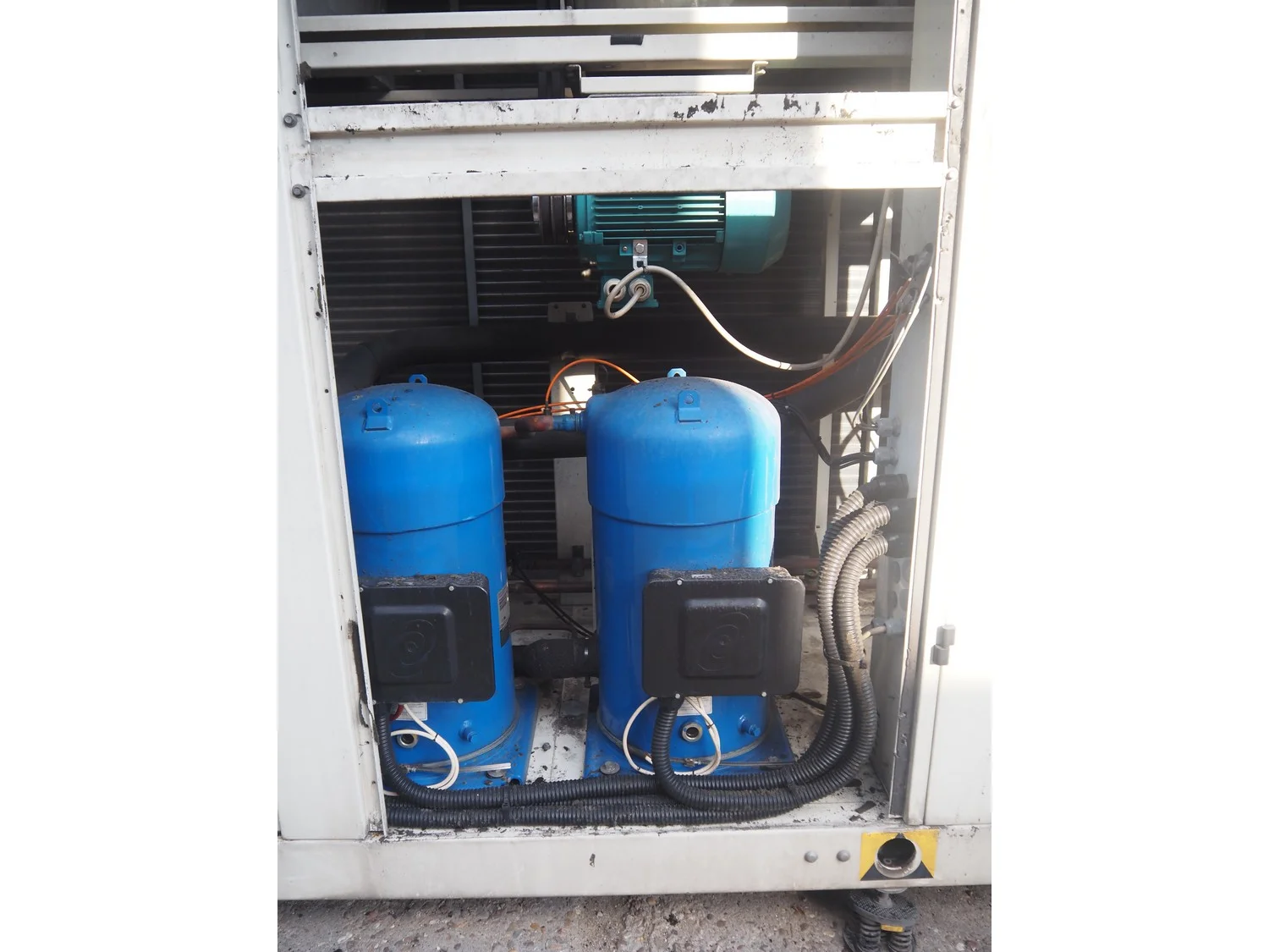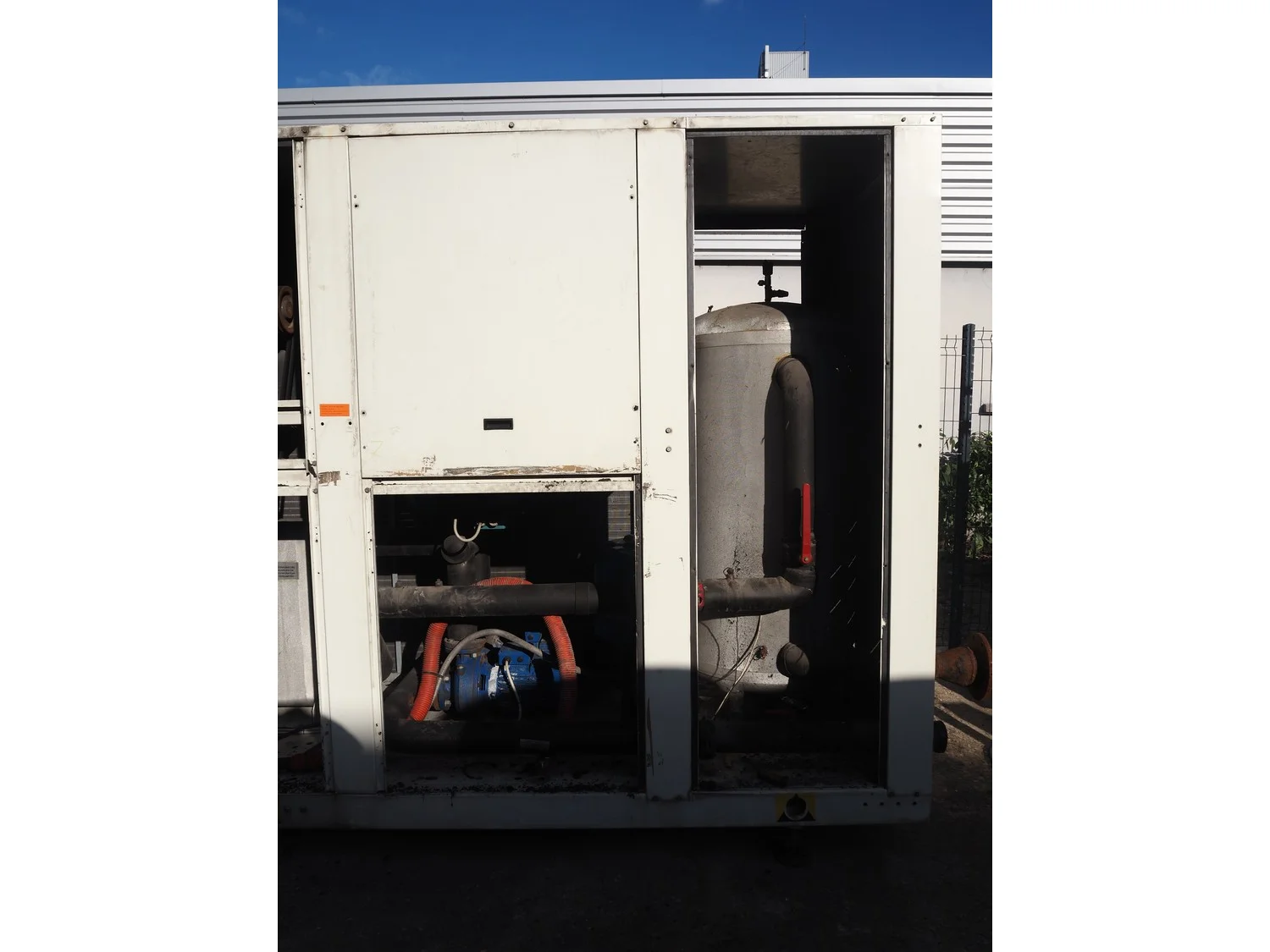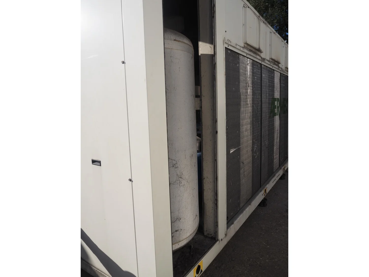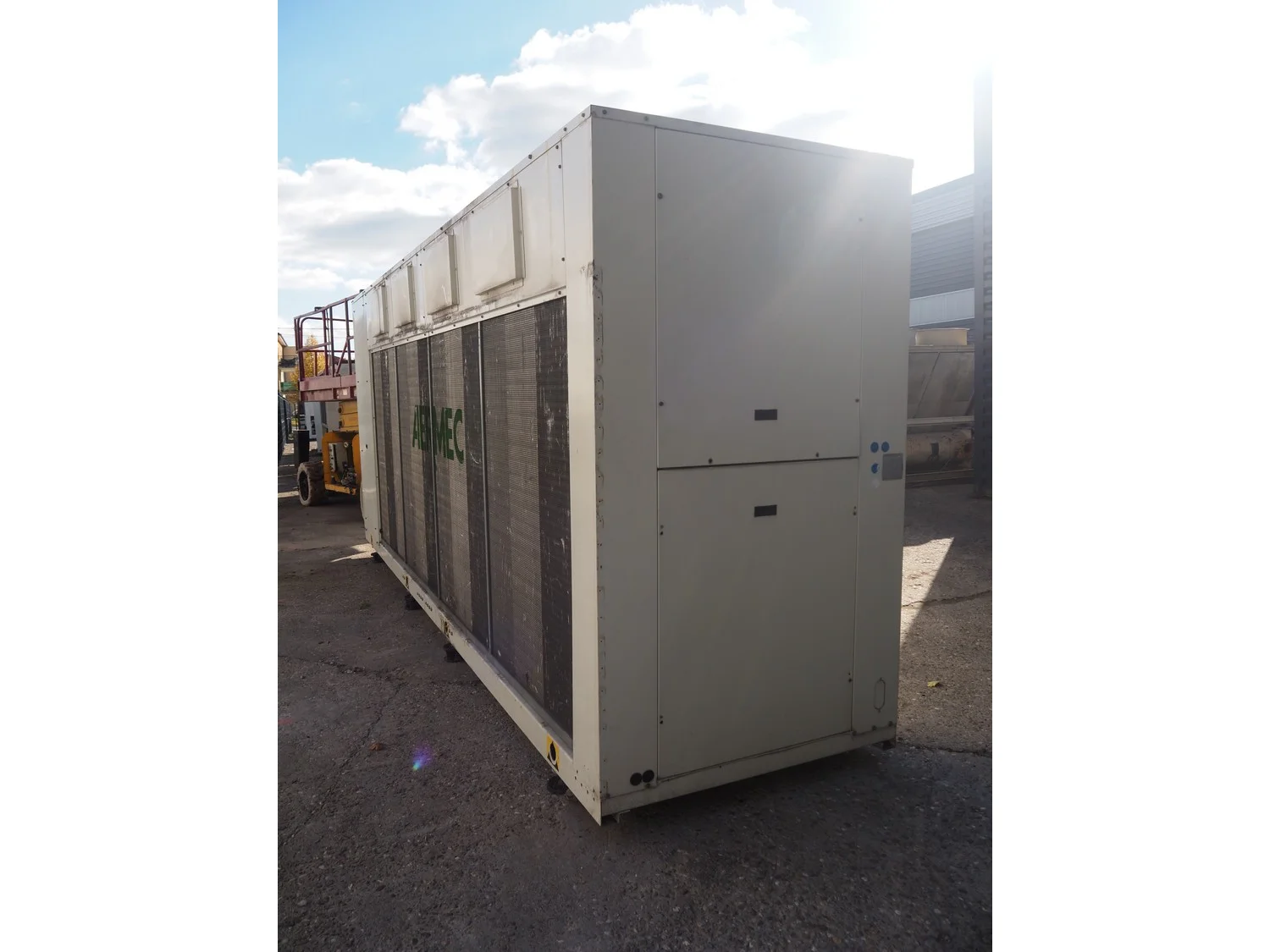 Aermec chiller, model: NRC0800 04V1VV, serial number: 1010006069450001, year of construction: 2010, 400 V, 3 Ph, 50 Hz, 176.5 A, heating: 101.5 kW, cooling capacity: 214 kW, refrigerant: R407C, dimensions: 6050 mm x 1300 mm x 2420 mm.