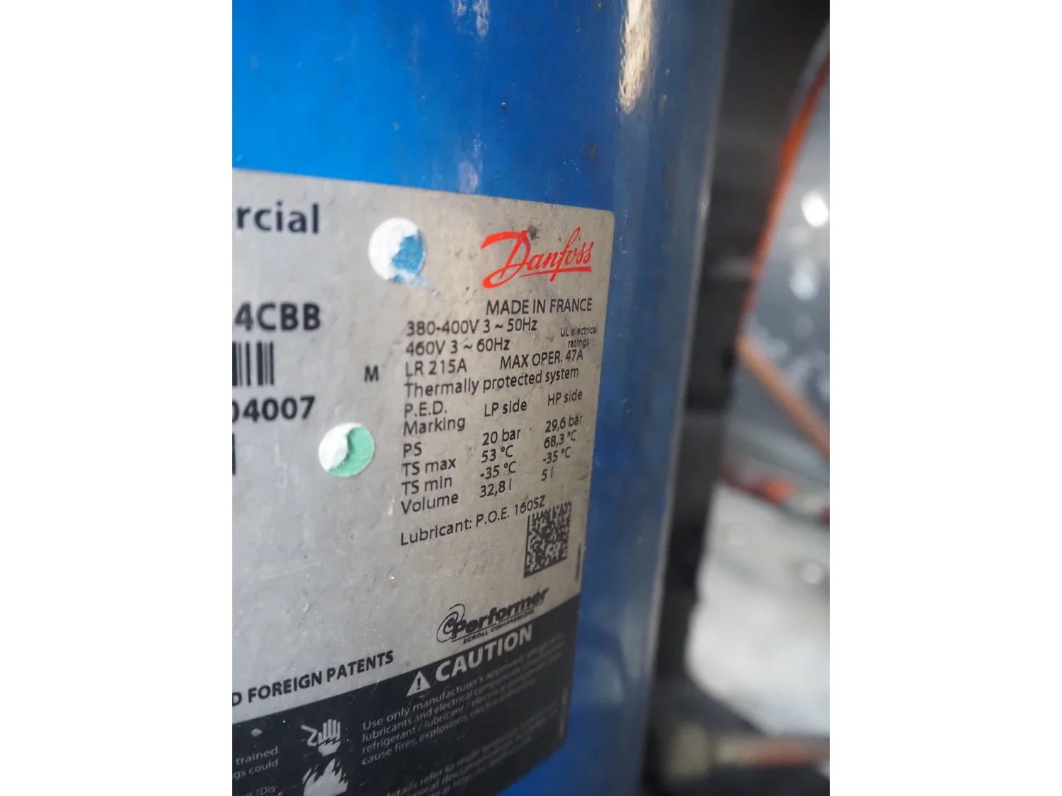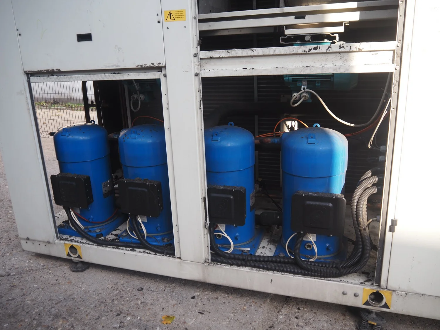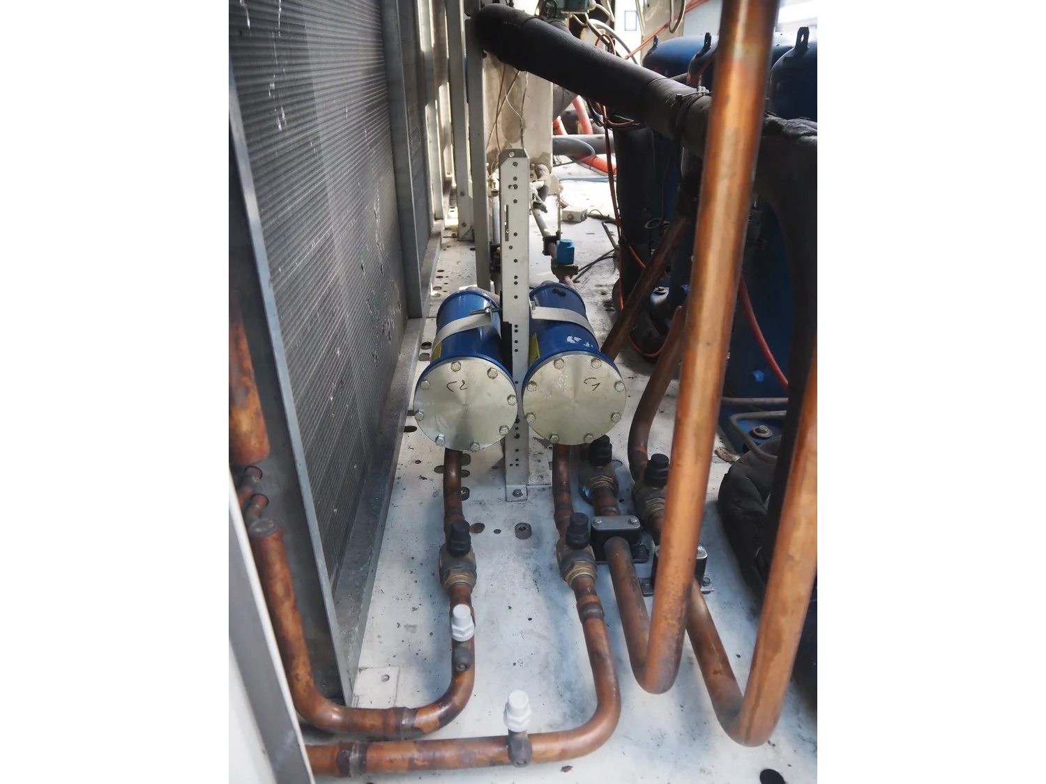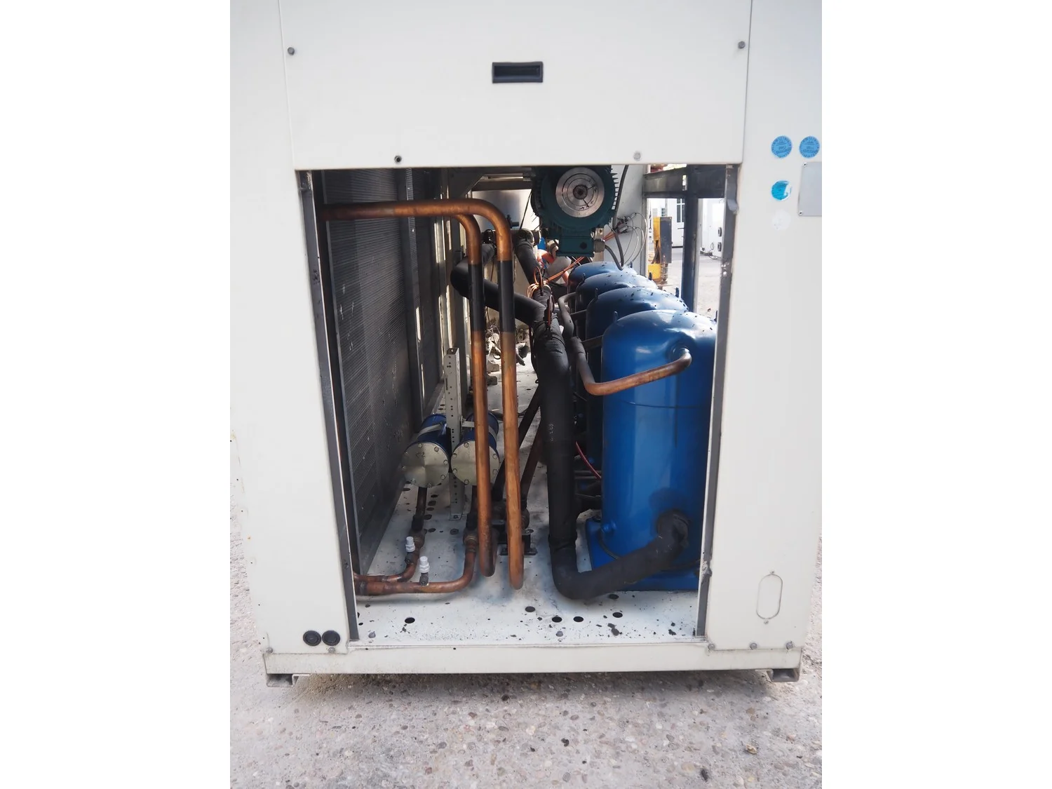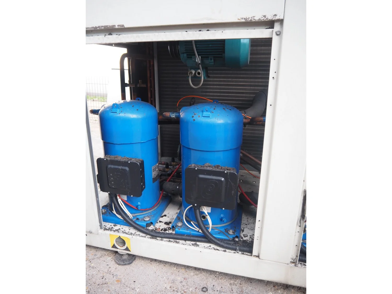 Aermec chiller, model: NRC0800 04V1VV, serial number: 1010006069450001, year of construction: 2010, 400 V, 3 Ph, 50 Hz, 176.5 A, heating: 101.5 kW, cooling capacity: 214 kW, refrigerant: R407C, dimensions: 6050 mm x 1300 mm x 2420 mm.