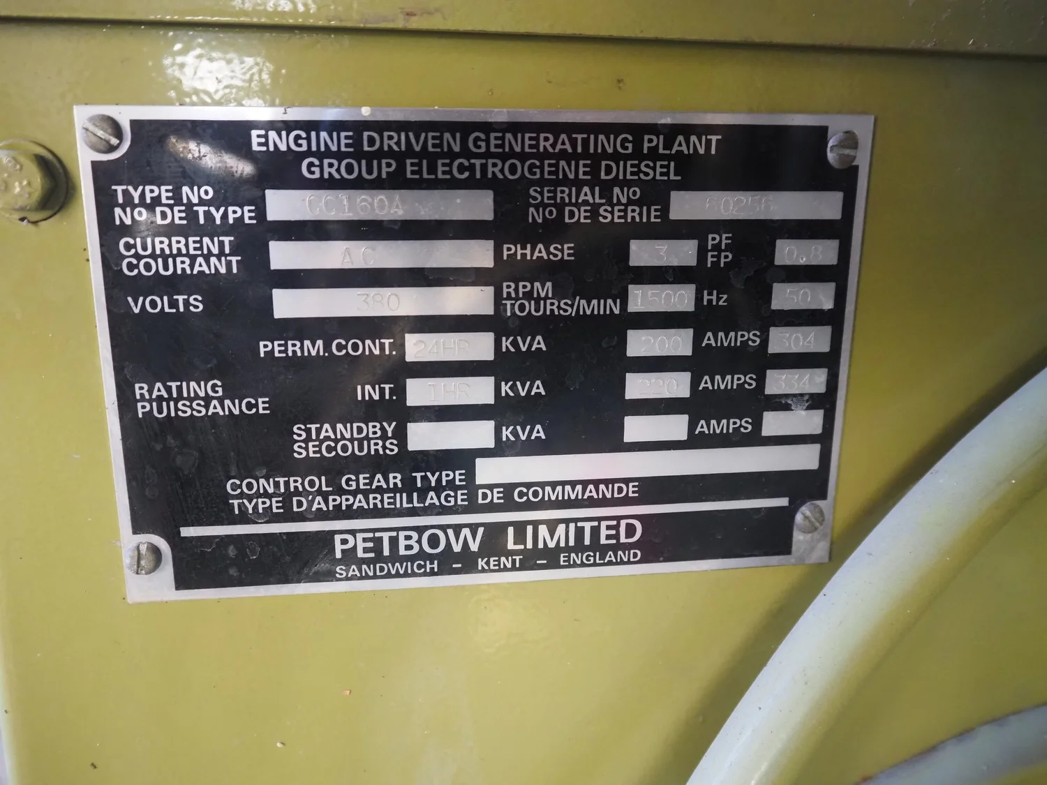 Petbow Limited / Cummins power generator, model: NT-355-62, number: 15035/00001, working hours: 113, Leroy Somer motor, type: LSA46M5, number: 15035/00001, year of construction: 16-02-1988, 380 V, 3 Ph, 50 Hz, 303.8 A, 160 kW, regulator: RS128A1, weight: 670 kg, dimensions: 3000 mm x 1050 mm x 1750 mm. Including Friga Bohn condenser and pallet with switch cabinets.