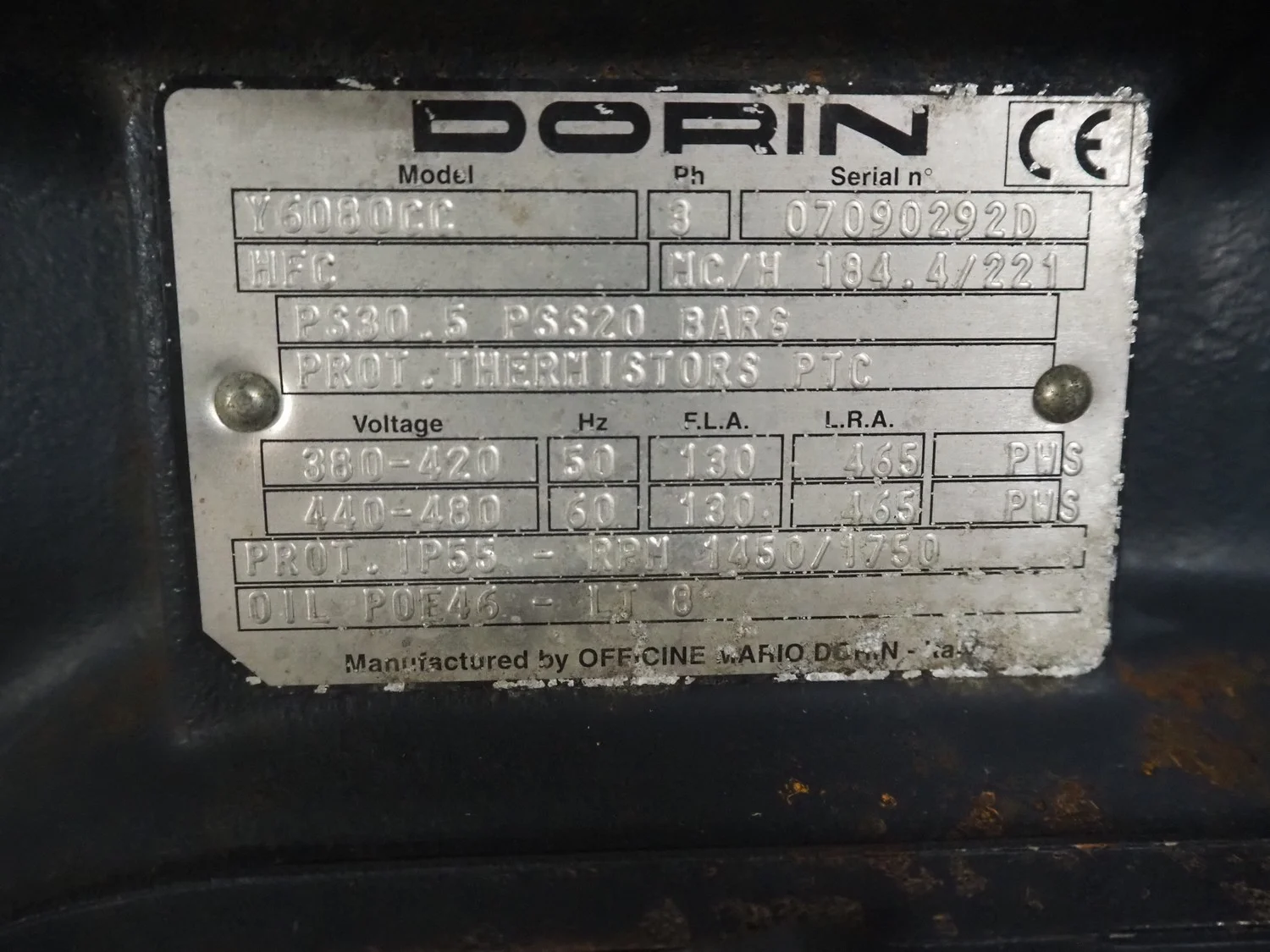 Dorin cooling compressor, model: Y6080CC, serial number: 07090292D, 380/480 V, 50/60 Hz, dimensions: 870 mm x 600 mm x 650 mm.