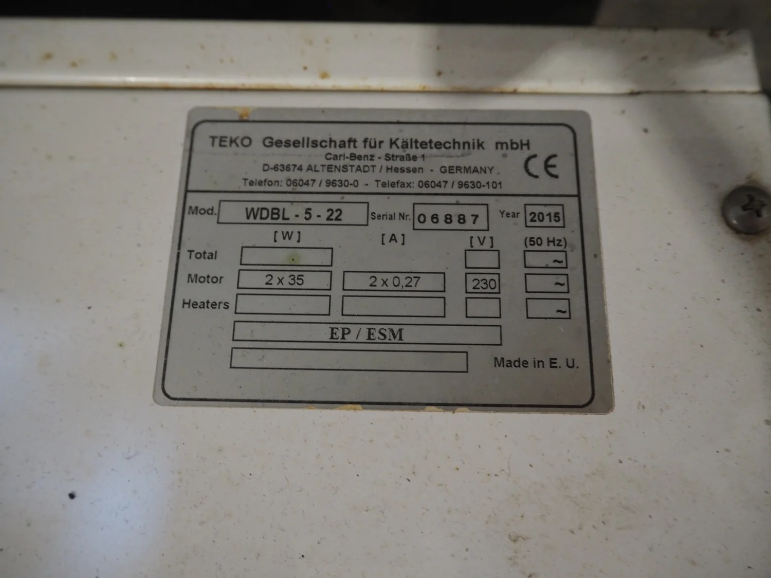 Teko evaporator, model: WDBL-5-22, serial number: 06887, year of construction: 2015, 230 V, 50 Hz, 2x0.27 A, 2x35 W, 2 fans, dimensions: 1350 mm x 850 mm x 400 mm.