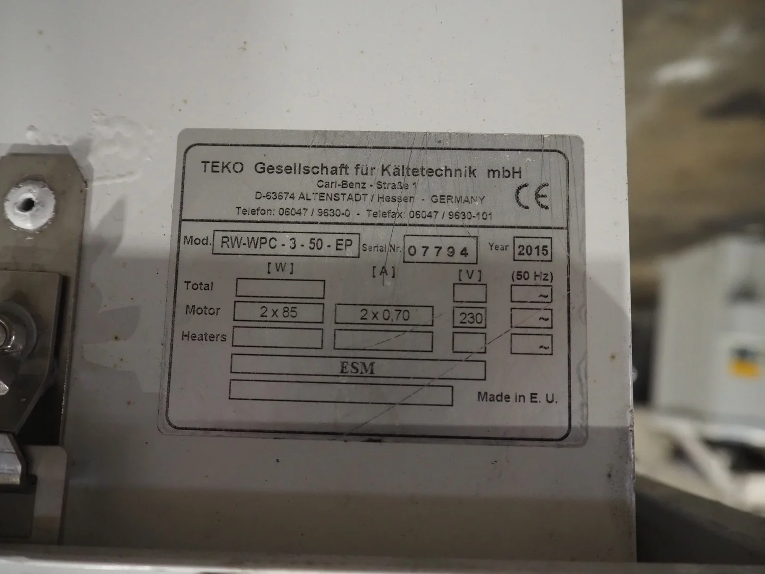 Teko evaporator, model: RW-WPC-3-50-EP, serial number: 07794, year of construction: 2015, 230 V, 50 Hz, 2x0.70 A, 2x85 W, 2 fans, dimensions: 1320 mm x 750 mm x 500 mm.