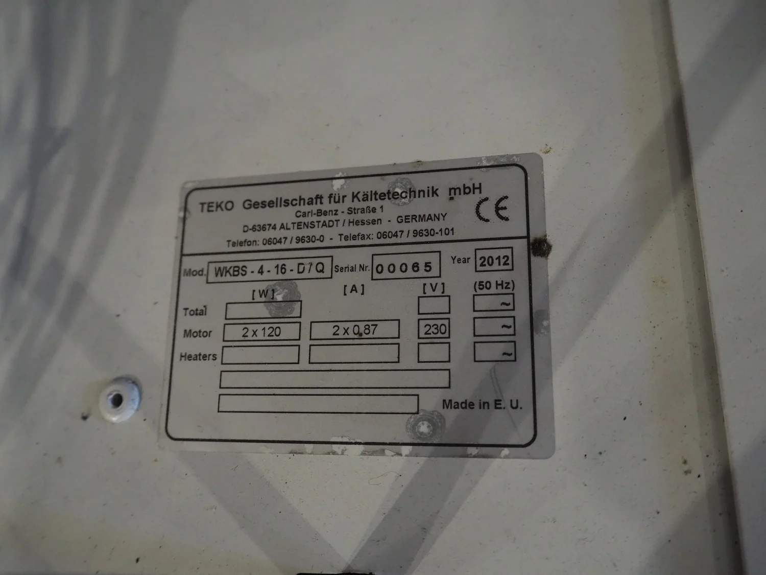 Teko evaporator, model: WKBS-4-16-D/Q, serial number: 00065, year of construction: 2012, 230 V, 50 Hz, 2x0.87 A, 2x120 W, 2 fans, dimensions: 1170 mm x 500 mm x 500 mm.