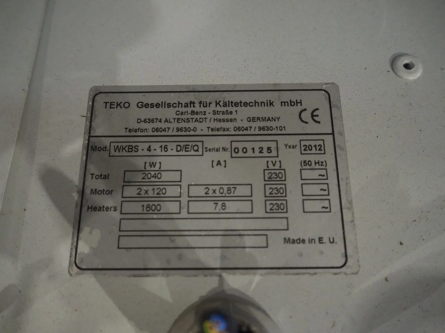 Teko evaporator, model: WKBS-4-16-D/E/Q, serial number: 00125, year of construction: 2012, 230 V, 50 Hz, 2x0.87 A, 2x120 W, 2 fans, dimensions: 1170 mm x 600 mm x 500 mm.