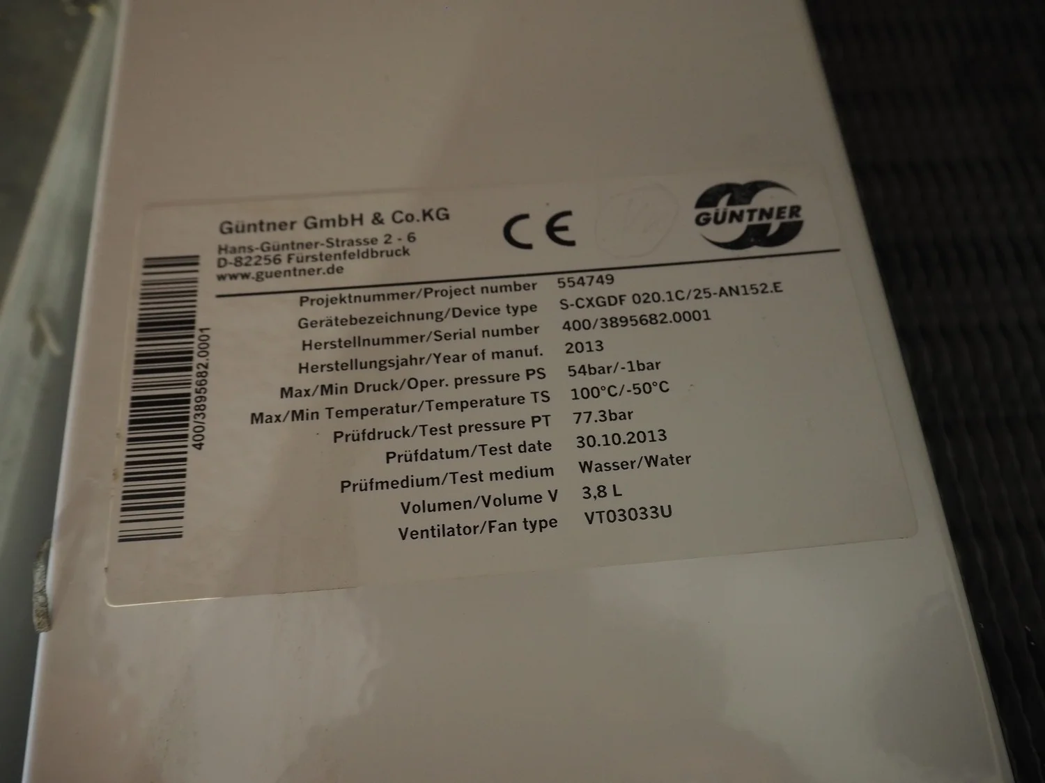 Güntner AG&Co.KG evaporator, type: S-CXGDF 020.1C/25-AN152.E, serial number: 400/3895682.0001, year of construction: 2013, volume: 3.8 liter, 2 fans, dimensions: 1080 mm x 540 mm x 380 mm.
