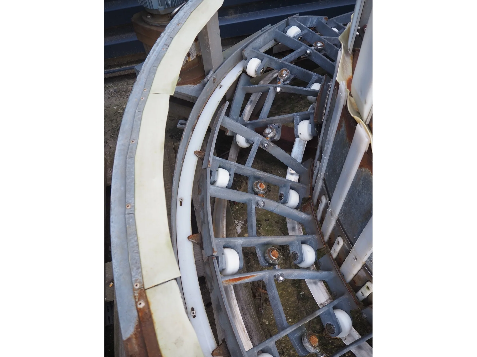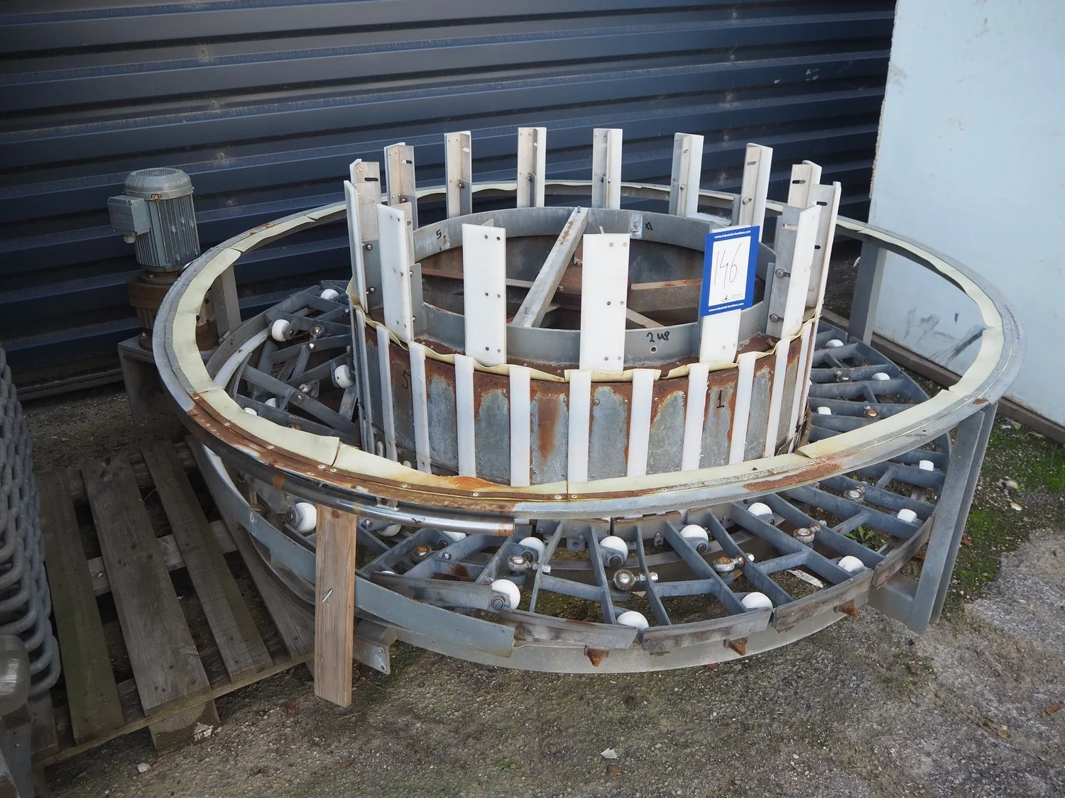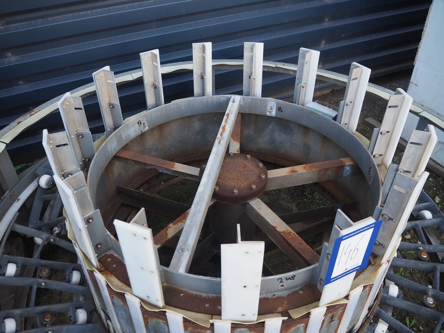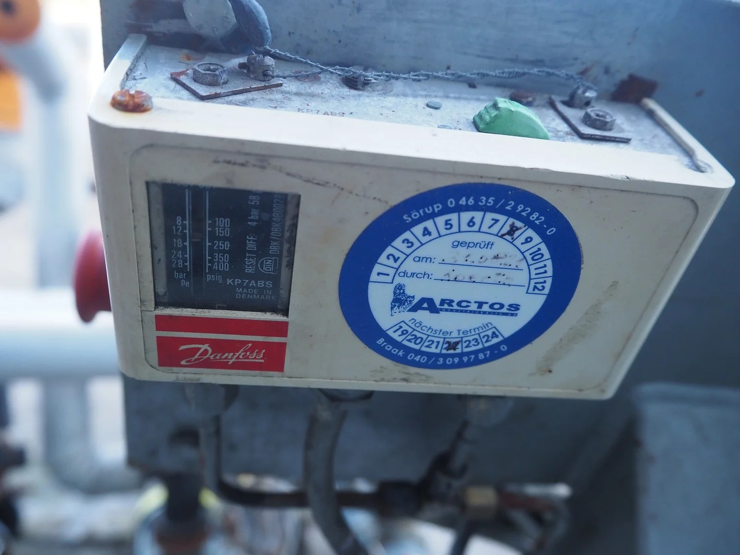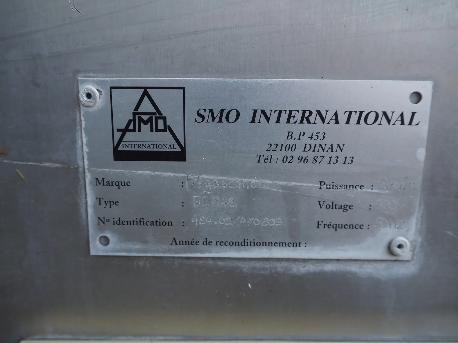 Frigoscandia spiral freezer, model: GYRoCOMPACT, type: GLP42, consisting of: 3 pallets with s/s mesh belts, belt width: 400 mm, dimensions: 2700 mm x 400 mm x 1000 mm; Fläkt Solyvent-Ventec fan, type: CHK LP 630 EDSP RD ADX, serial number: M192837 010/303703N0001, year of construction: 2003, temperature: Max 20°C, dimensions: 3700 mm x 1550 mm x 2060 mm; steel spiral, dimensions: ø 2400 mm x 900 mm; blower, 2 fans, dimensions: 2400 mm x 2000 mm x 2000 mm; Pallet with frame, dimensions: 1200 mm x 800 mm x 1300 mm; Plastic tube with parts, dimensions: 1200 mm x 1000 mm x 2000 mm; SMO International switch cabinet, type: GLP42, number: 424.02/470203, dimensions: 800 mm x 400 mm x 1500 mm; Assmann & Stocker condenser, number: 45130, year of construction: 1986, dimensions: 5000 mm x 2000 mm x 2100 mm; Steel frame with panels/doors, dimensions: 6500 mm x 2500 mm x 1500 mm; Steel box with parts, dimensions: 1300 mm x 1100 mm x 1600 mm; Sabroe cooling compressor, dimensions: 3500 mm x 1600 mm x 2300 mm; APV heat exchanger, type: N 35, number: 37905, year of construction: 1994, dimensions: 1000 mm x 500 mm x 1600 mm; Pallet with Hermatic pumps, dimensions: 2500 mm x 1200 mm x 1600 mm.