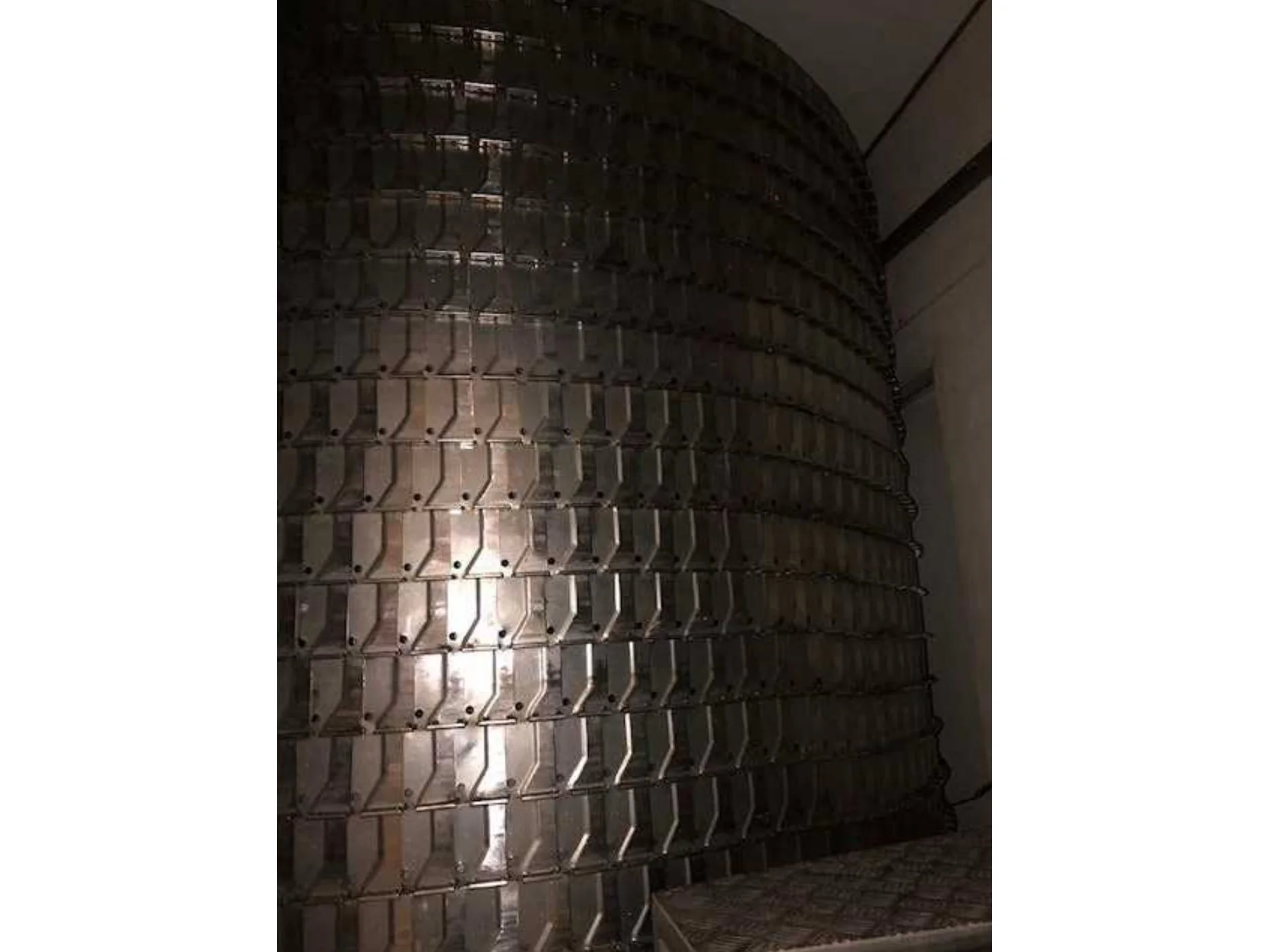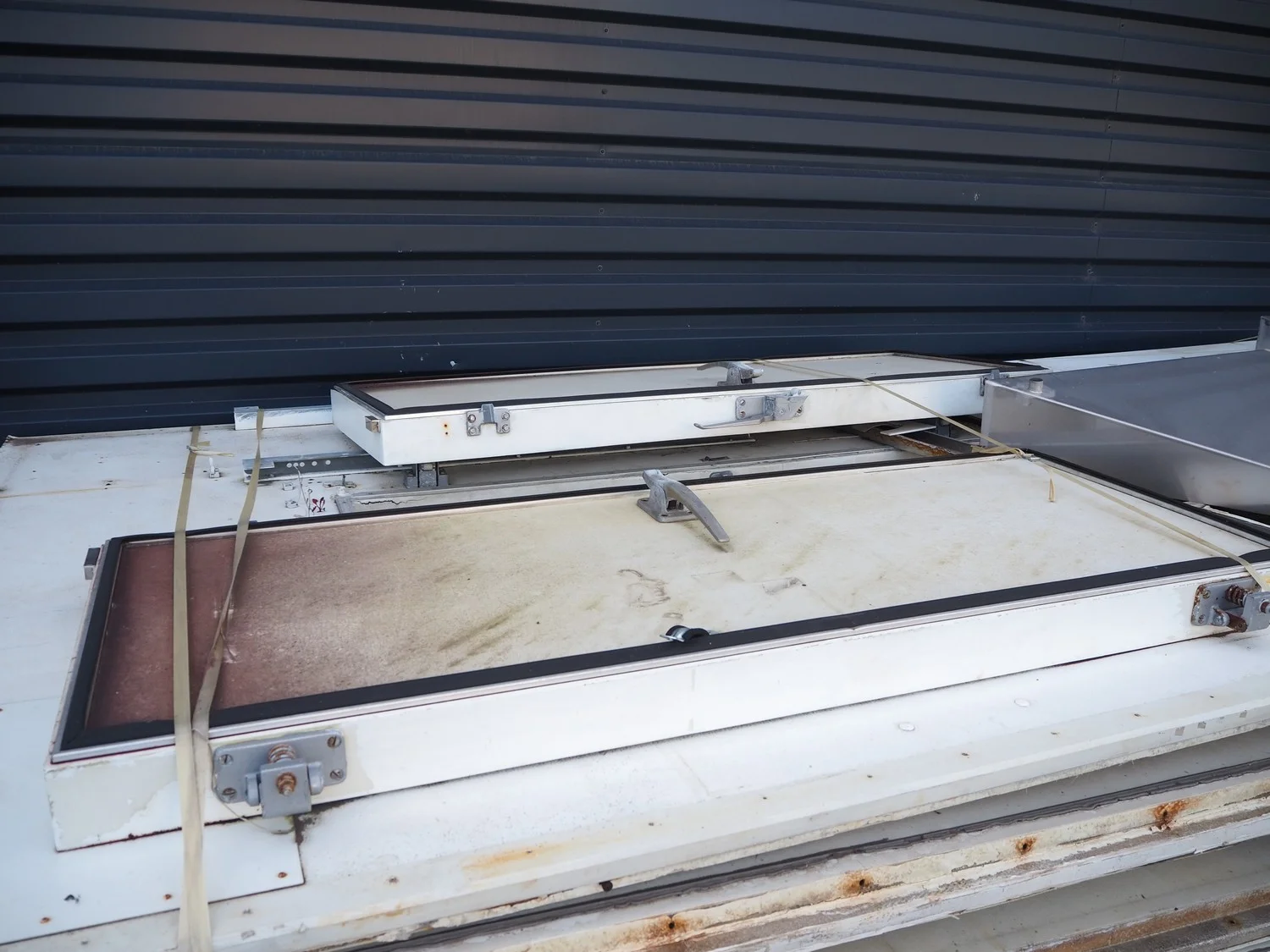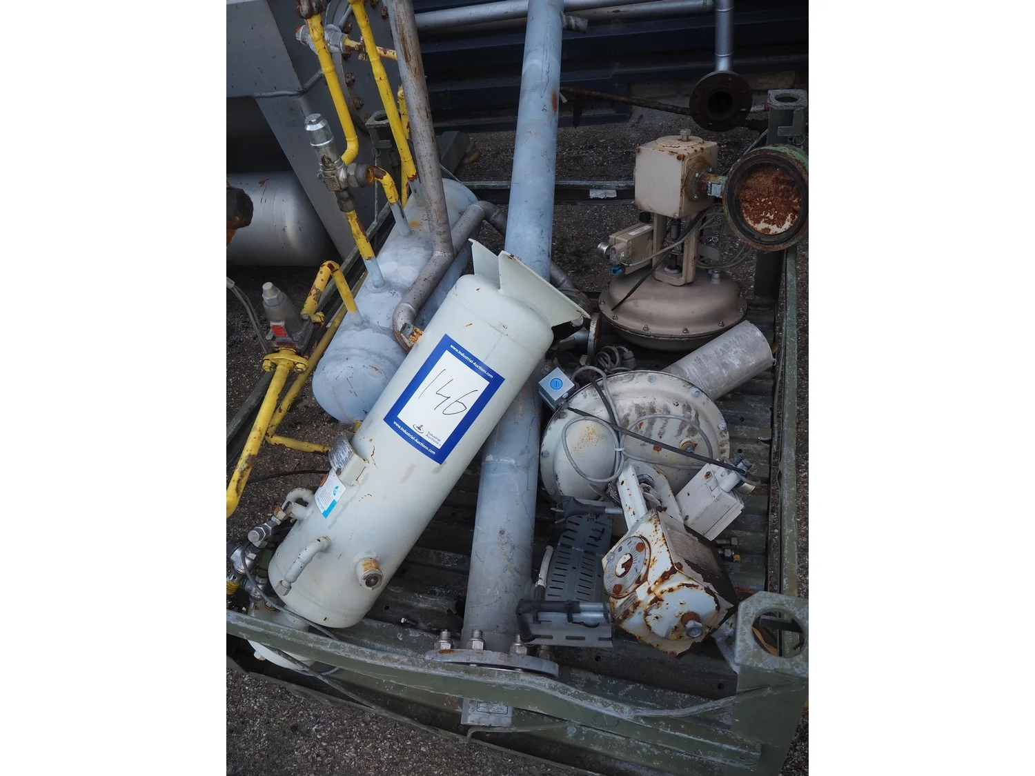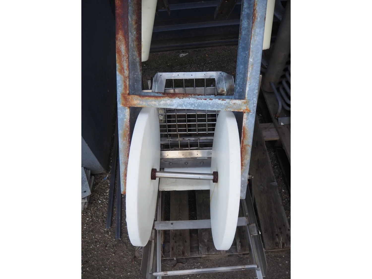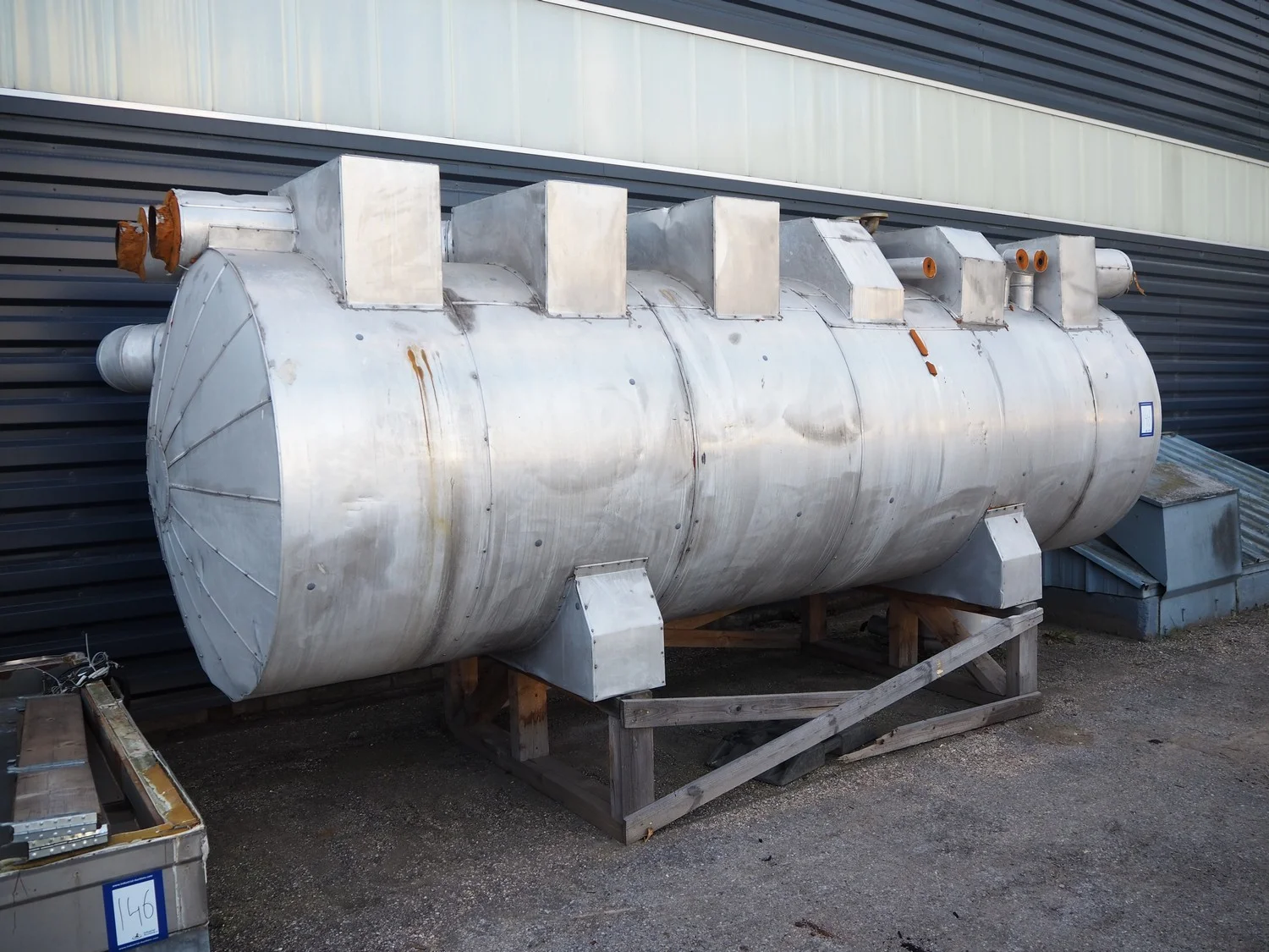 Frigoscandia spiral freezer, model: GYRoCOMPACT, type: GLP42, consisting of: 3 pallets with s/s mesh belts, belt width: 400 mm, dimensions: 2700 mm x 400 mm x 1000 mm; Fläkt Solyvent-Ventec fan, type: CHK LP 630 EDSP RD ADX, serial number: M192837 010/303703N0001, year of construction: 2003, temperature: Max 20°C, dimensions: 3700 mm x 1550 mm x 2060 mm; steel spiral, dimensions: ø 2400 mm x 900 mm; blower, 2 fans, dimensions: 2400 mm x 2000 mm x 2000 mm; Pallet with frame, dimensions: 1200 mm x 800 mm x 1300 mm; Plastic tube with parts, dimensions: 1200 mm x 1000 mm x 2000 mm; SMO International switch cabinet, type: GLP42, number: 424.02/470203, dimensions: 800 mm x 400 mm x 1500 mm; Assmann & Stocker condenser, number: 45130, year of construction: 1986, dimensions: 5000 mm x 2000 mm x 2100 mm; Steel frame with panels/doors, dimensions: 6500 mm x 2500 mm x 1500 mm; Steel box with parts, dimensions: 1300 mm x 1100 mm x 1600 mm; Sabroe cooling compressor, dimensions: 3500 mm x 1600 mm x 2300 mm; APV heat exchanger, type: N 35, number: 37905, year of construction: 1994, dimensions: 1000 mm x 500 mm x 1600 mm; Pallet with Hermatic pumps, dimensions: 2500 mm x 1200 mm x 1600 mm.