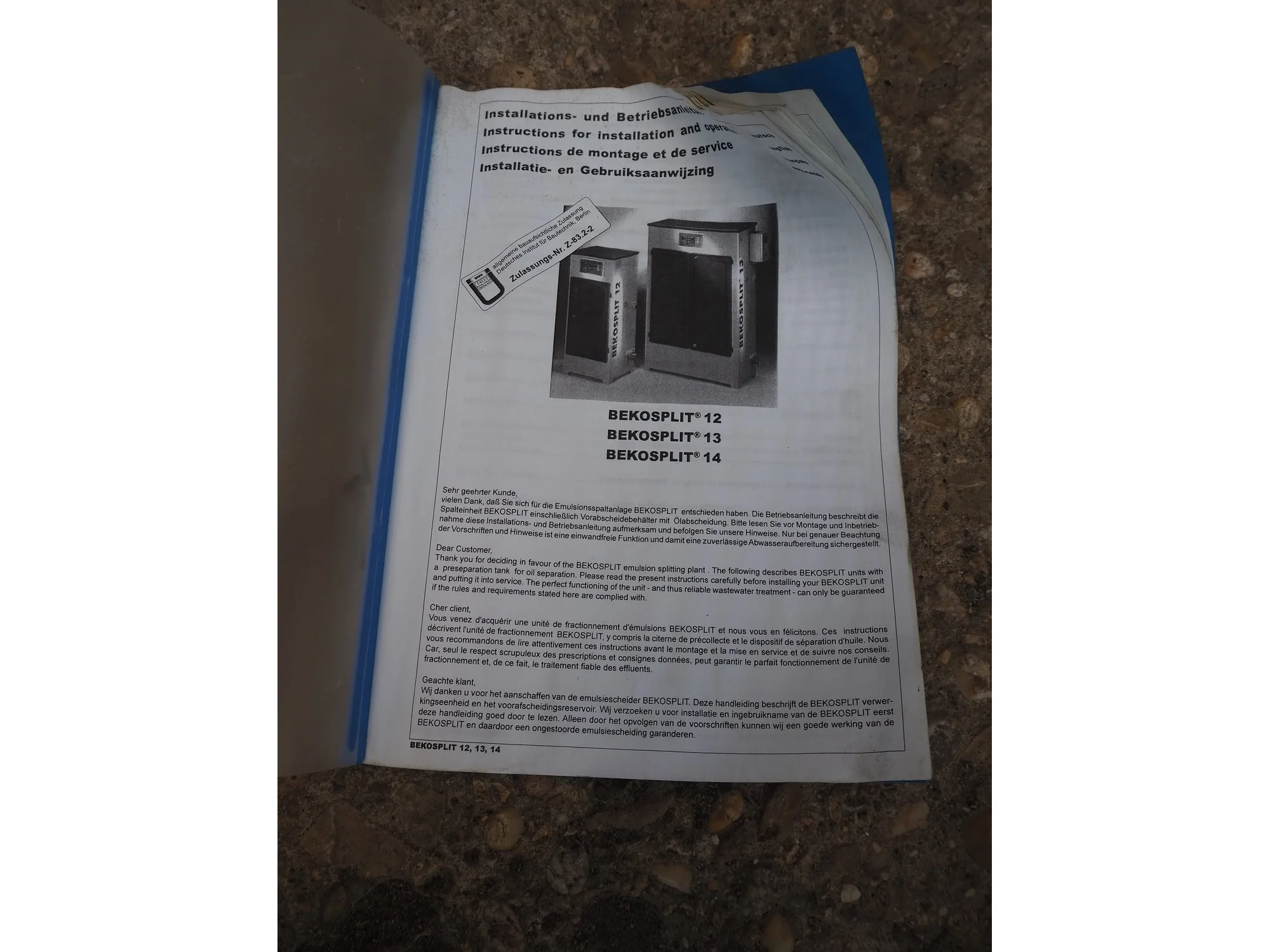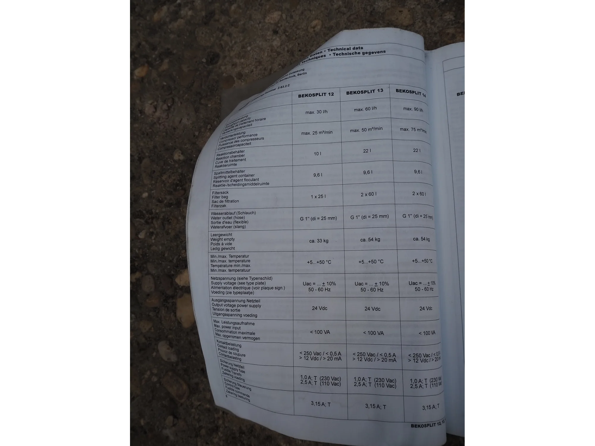 Beko eurosplit emulsion treatment cabinet, volume: 600/1000 liter, dimensions: 1100 mm x 440 mm x 1450 mm.
