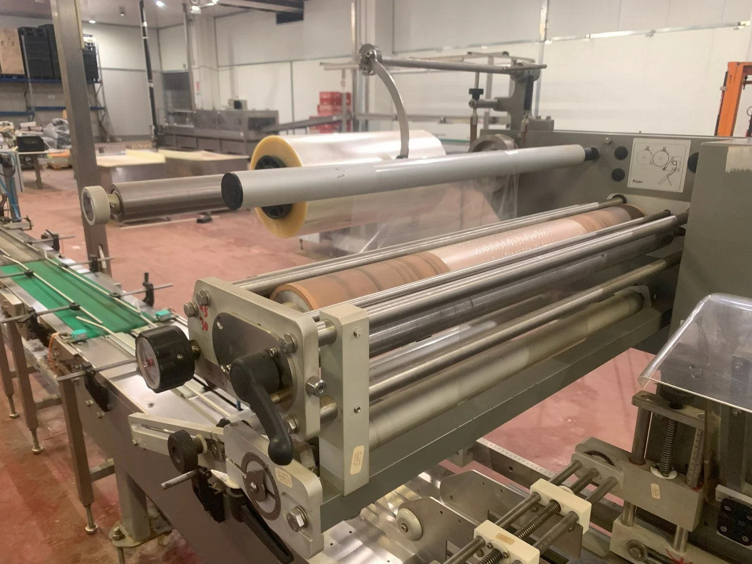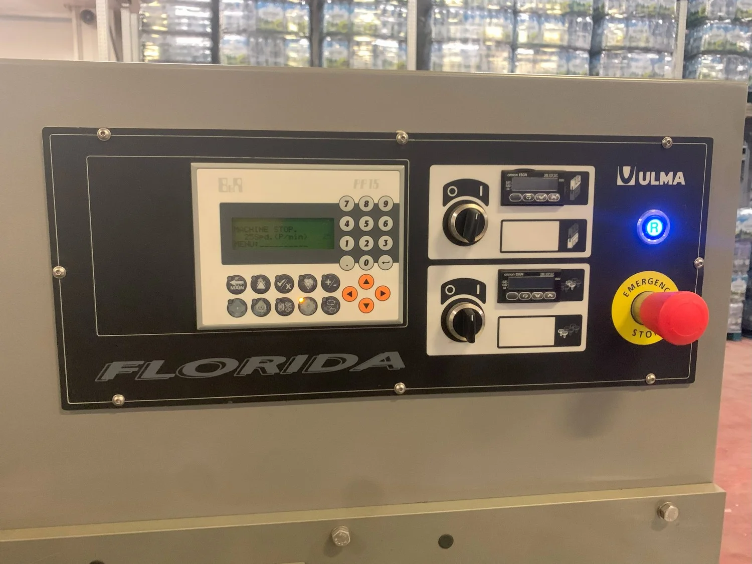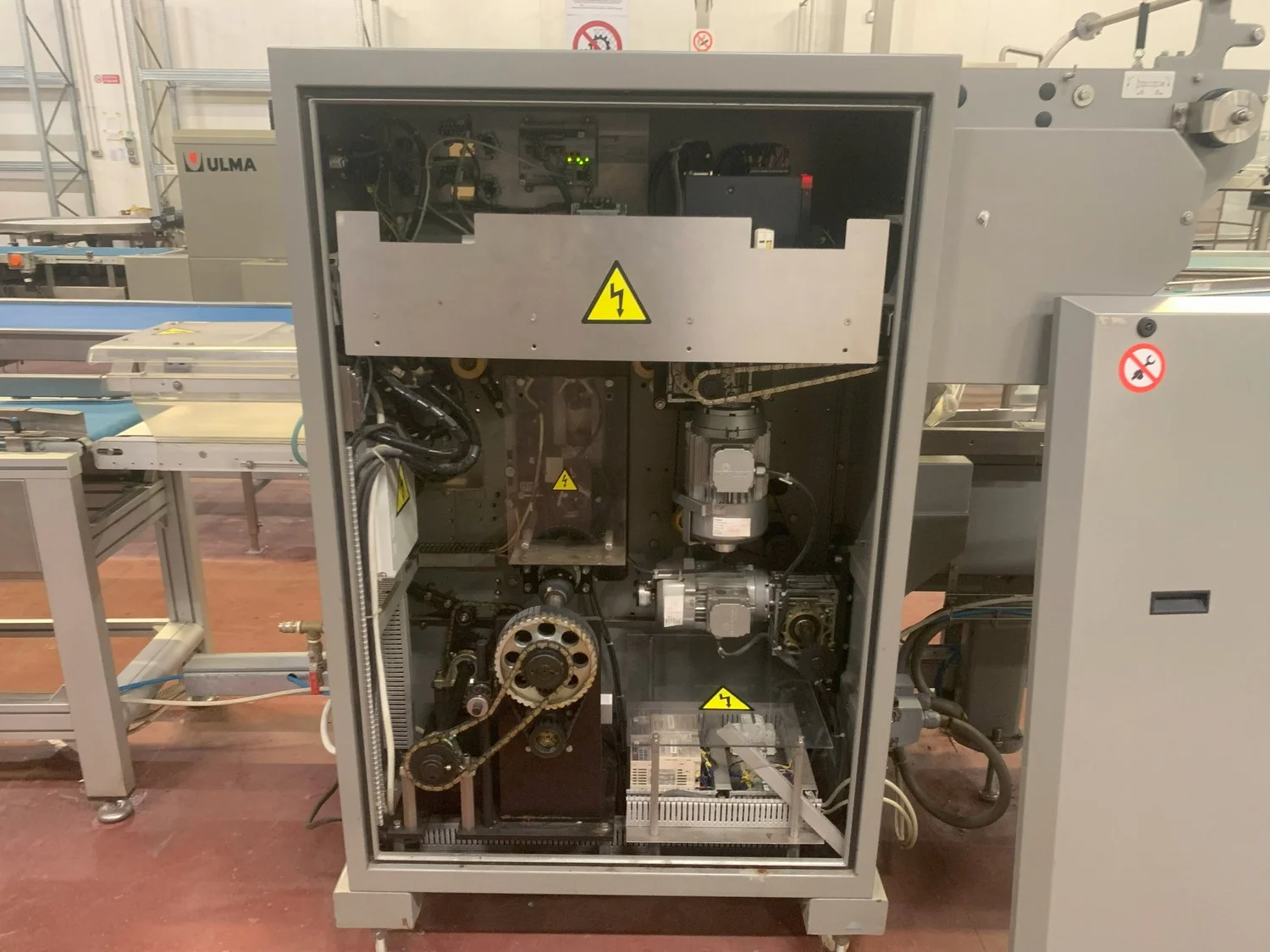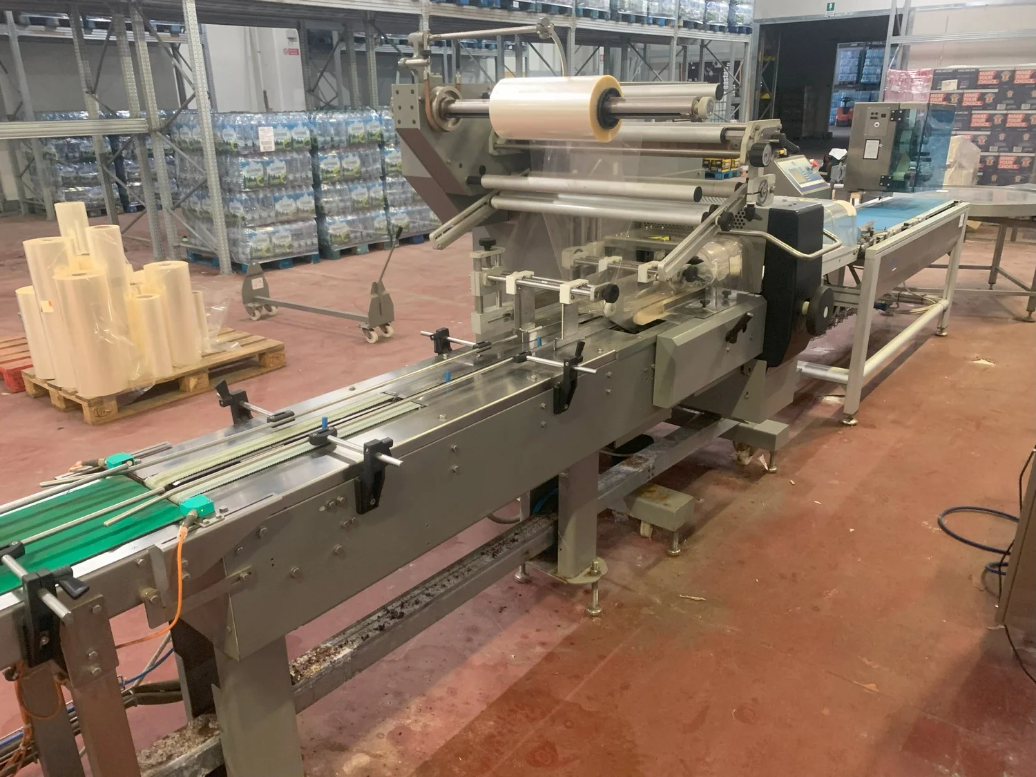 Ulma horizontal flow pack wrapper, model: FLORIDA E, machine number: 141976, year of construction: 2015, 400 V, 50 Hz, 4.7 kW, 7 A, dimensions: 3250 mm x 1250 mm x 1700 mm.