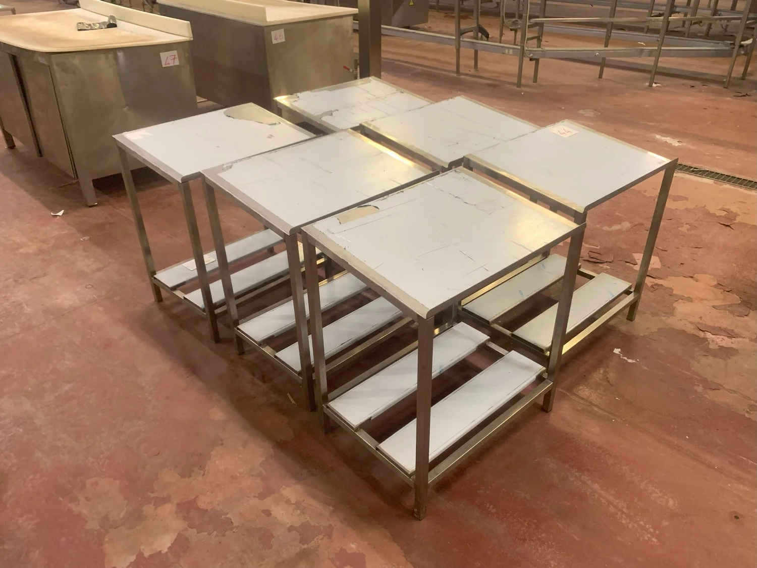 6 s/s tables, dimensions: (6x) 630 mm x 450 mm x 700 mm.
