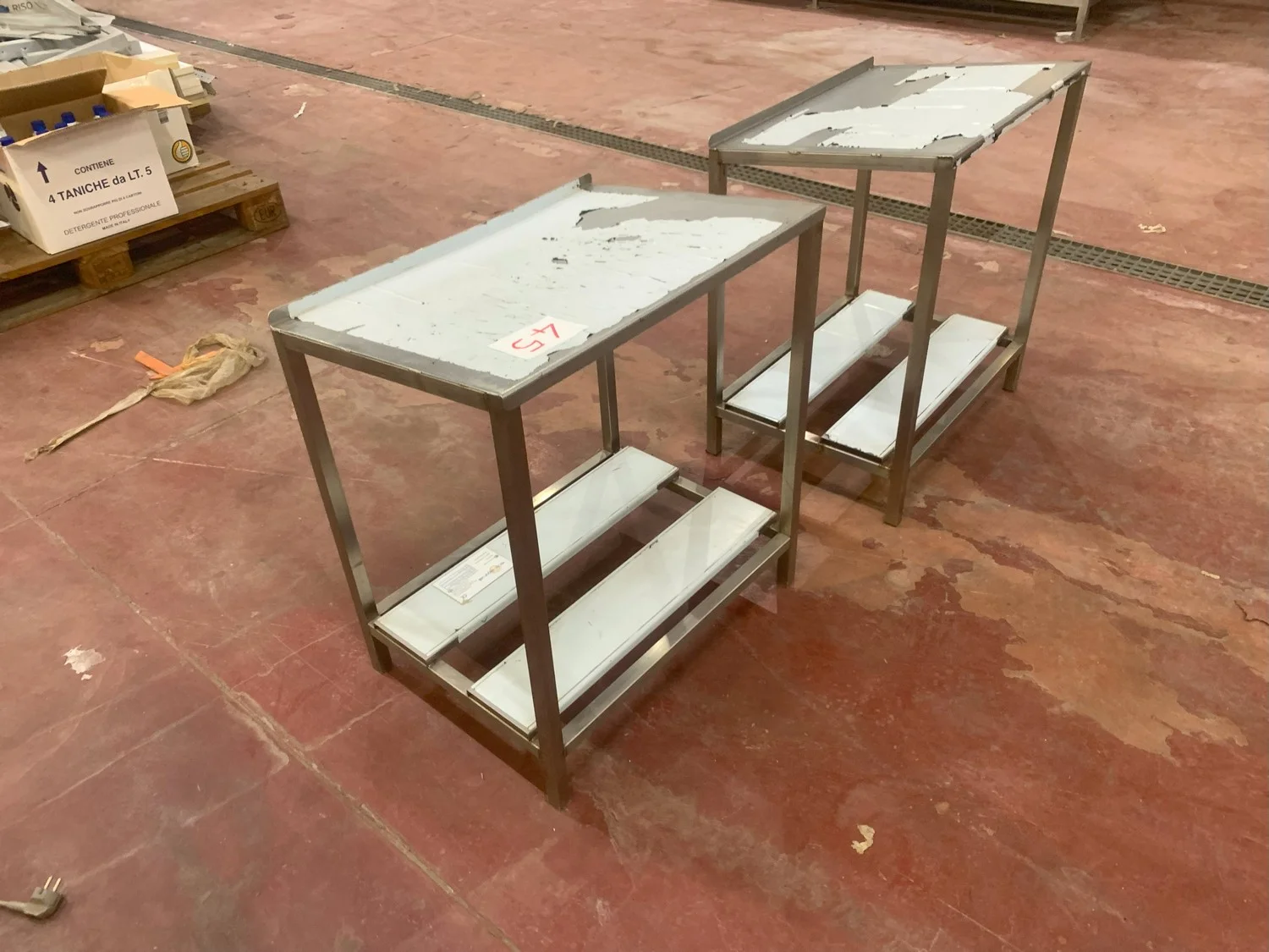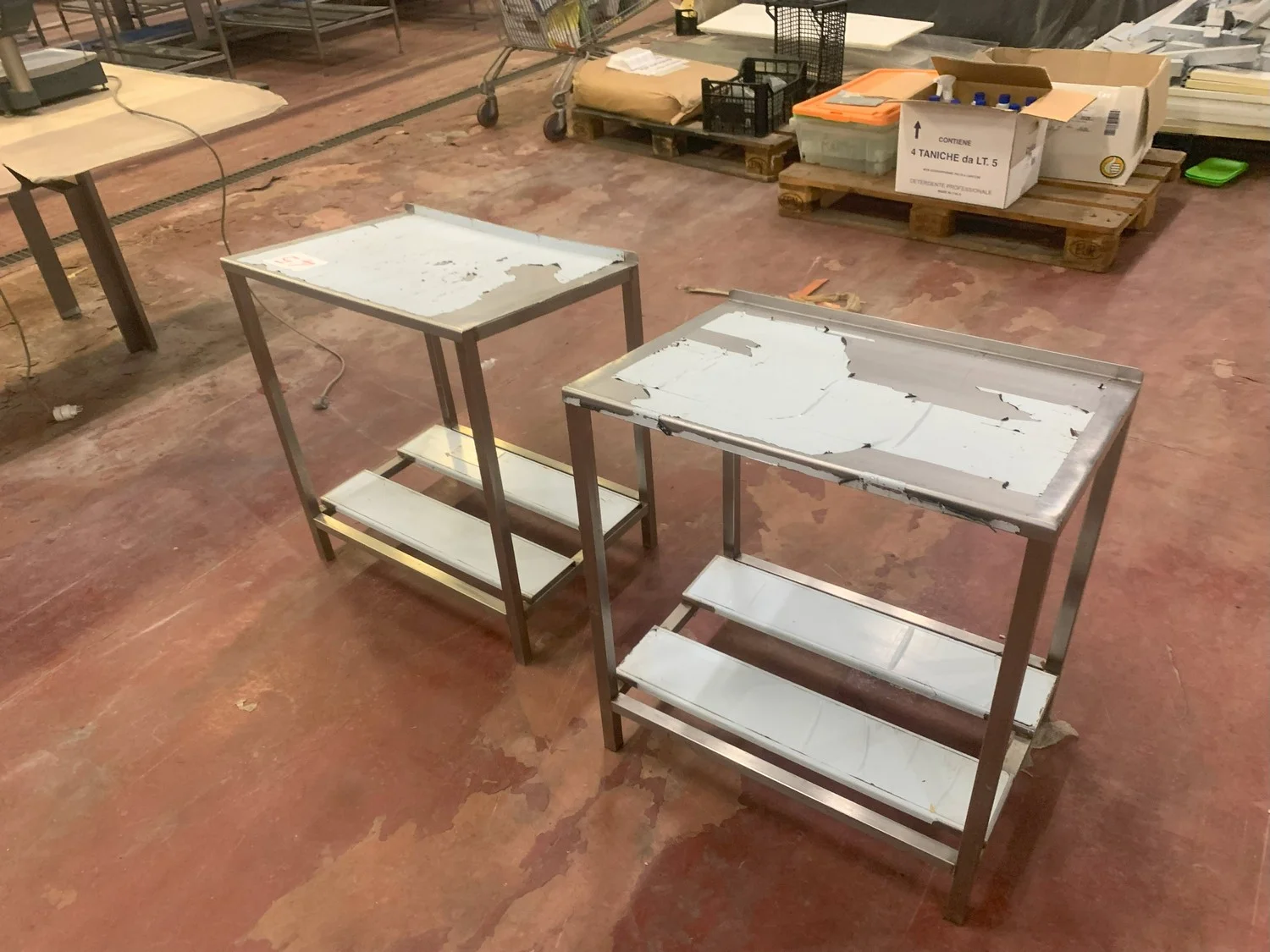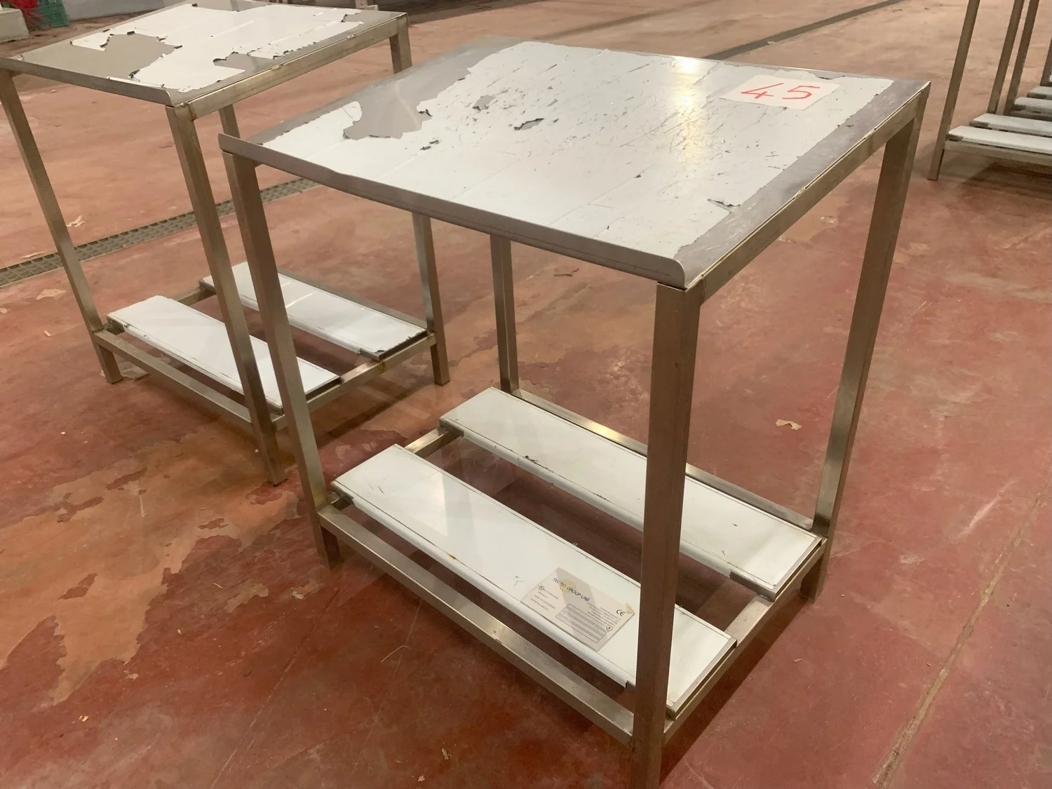 2 s/s tables, dimensions: (2x) 630 mm x 450 mm x 700 mm.