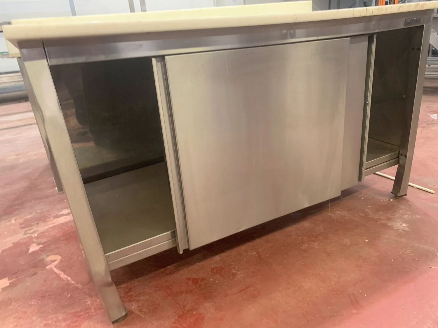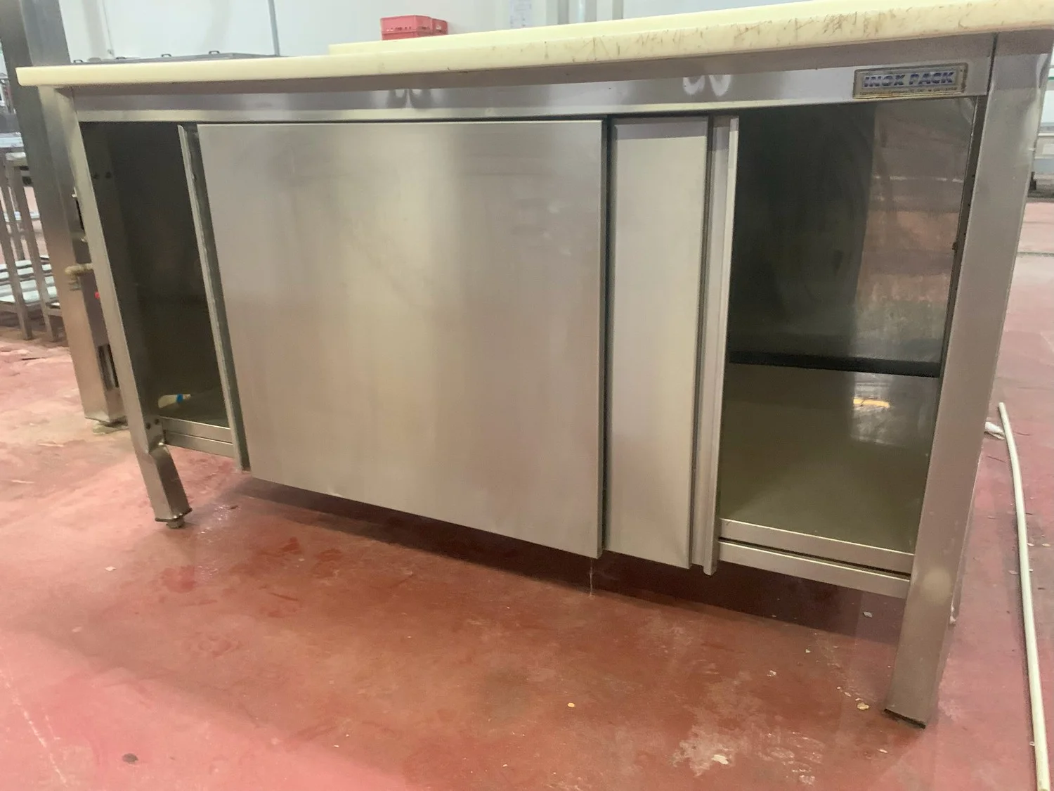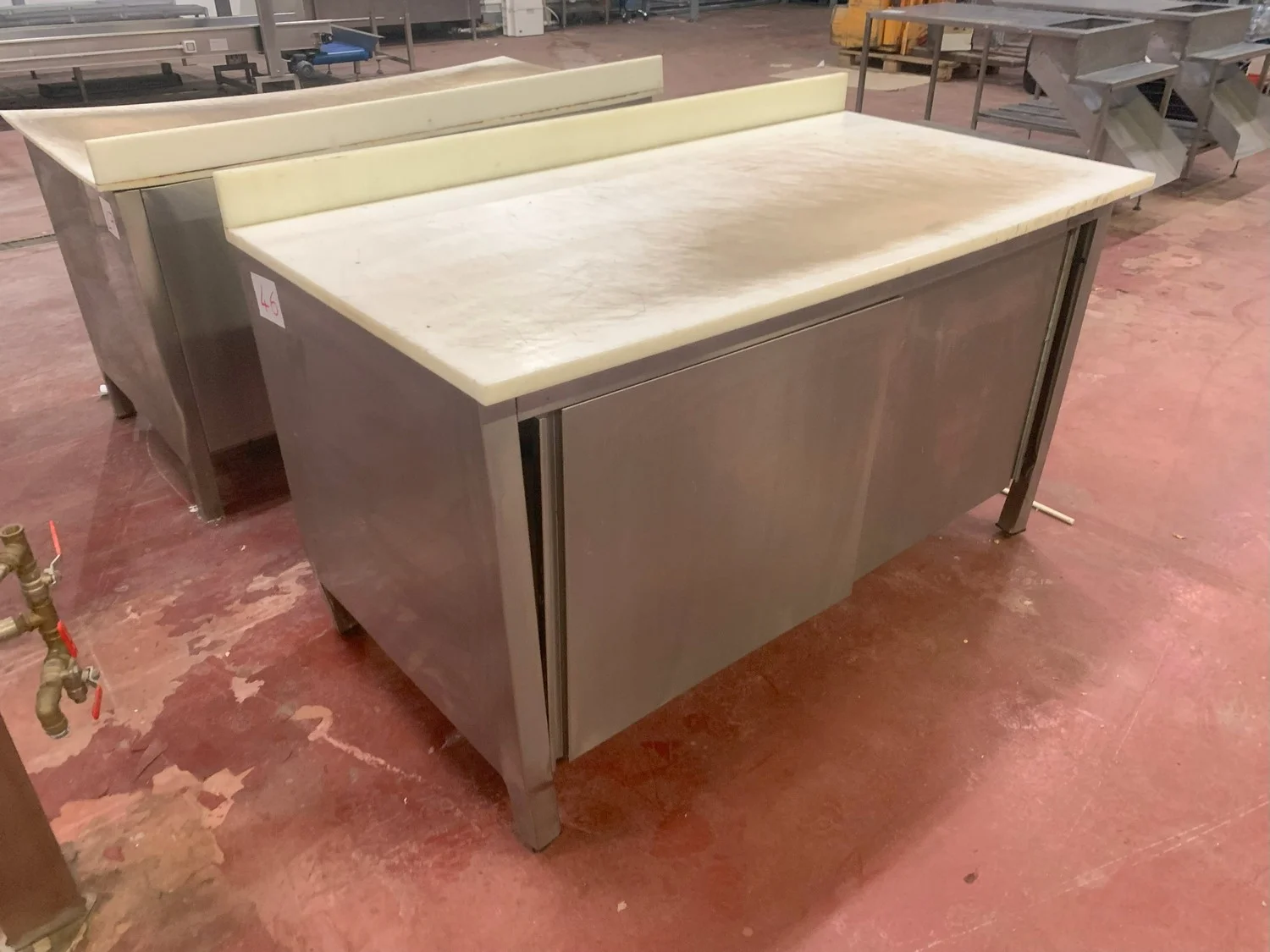 Inox Pack s/s cabinet with plastic cutting table, dimensions: 1500 mm x 800 mm x 950 mm.