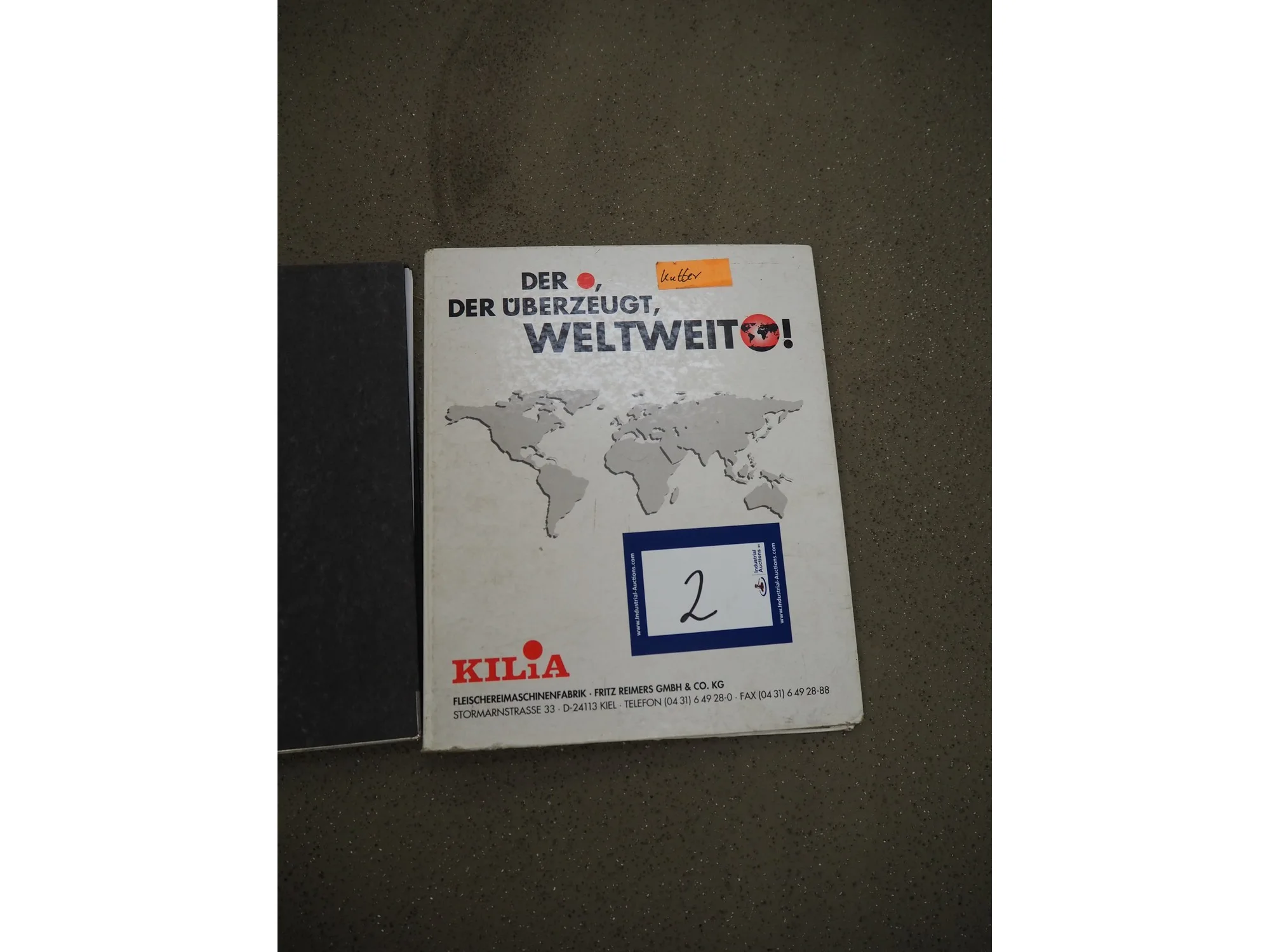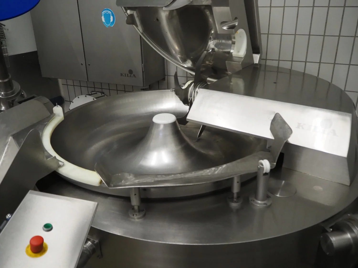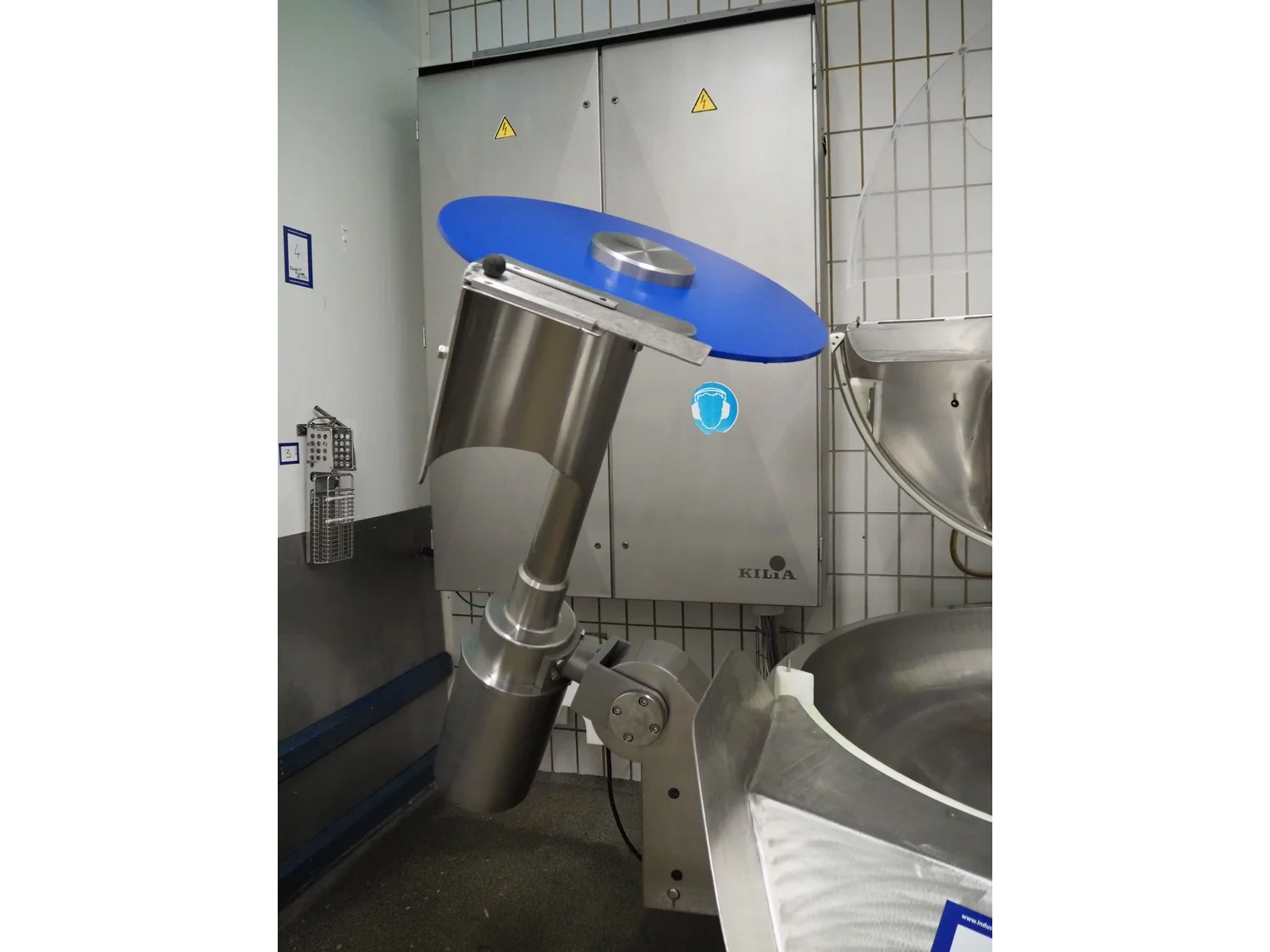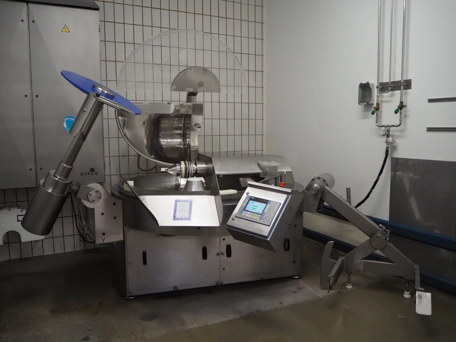 Kilia cutter with lifter for 200 liter meat bins and ejector, type: 325 L K 4000 Express AC, machine number: 89814074, year of construction: 1998, 400 V, 50 Hz, 250 A, 97 kW, machine weight: ca 5200 kg, volume bowl: 325 liter, total dimensions: 2700 mm x 3600 mm x 2600 mm, s/s switch cabinet, dimensions: 1480 mm x 500 mm x 2000 mm, pallet with additional knives.