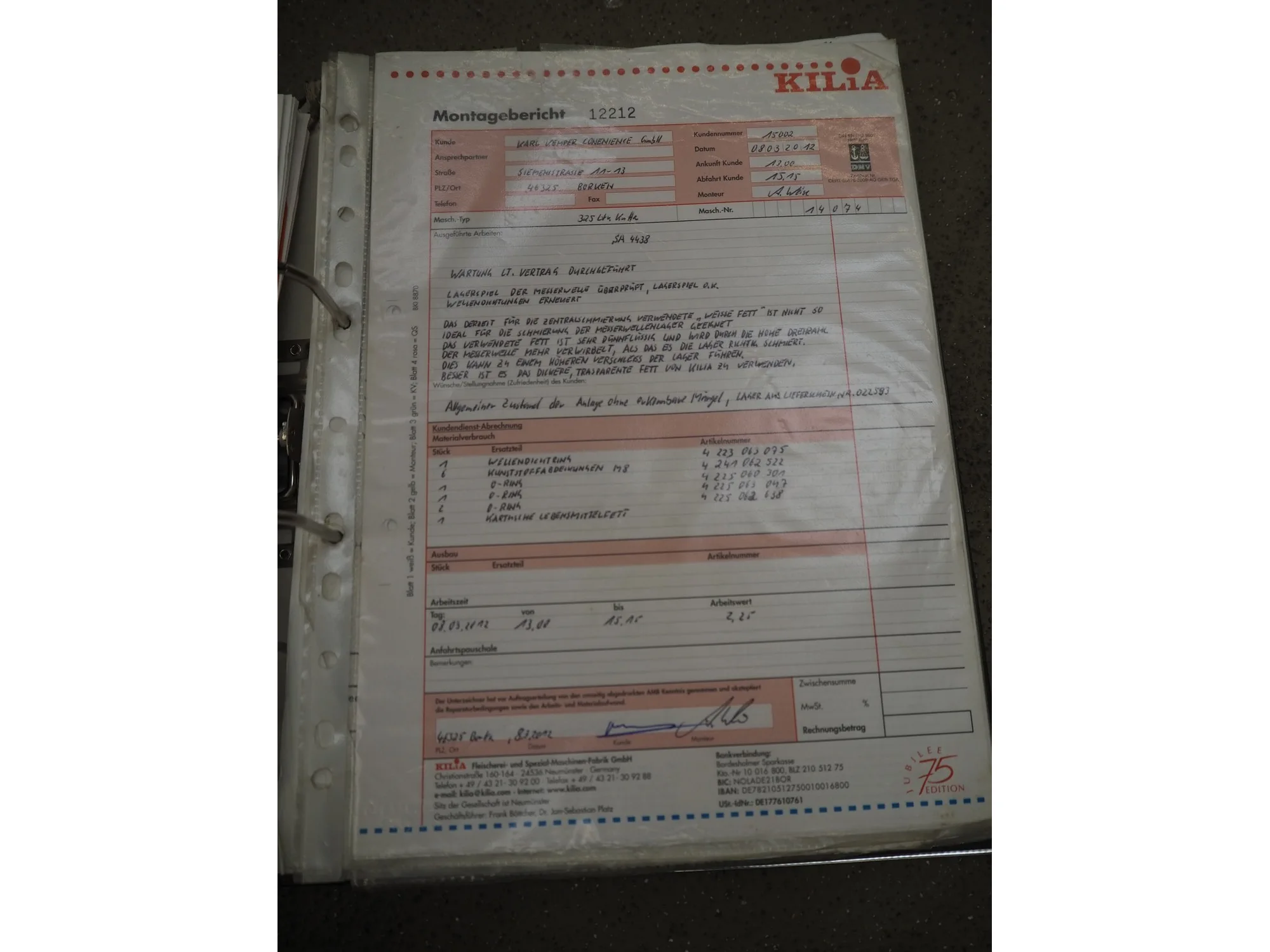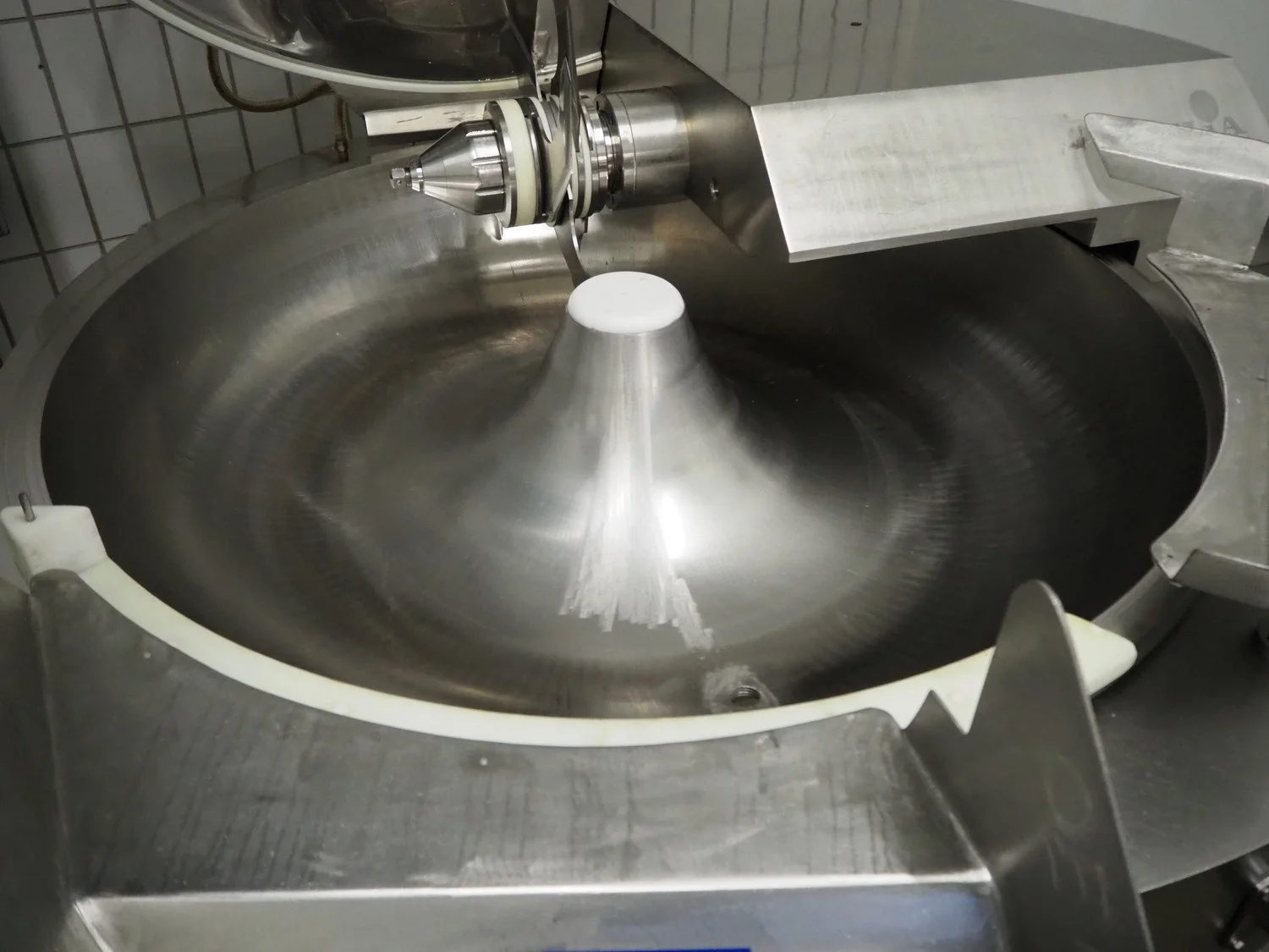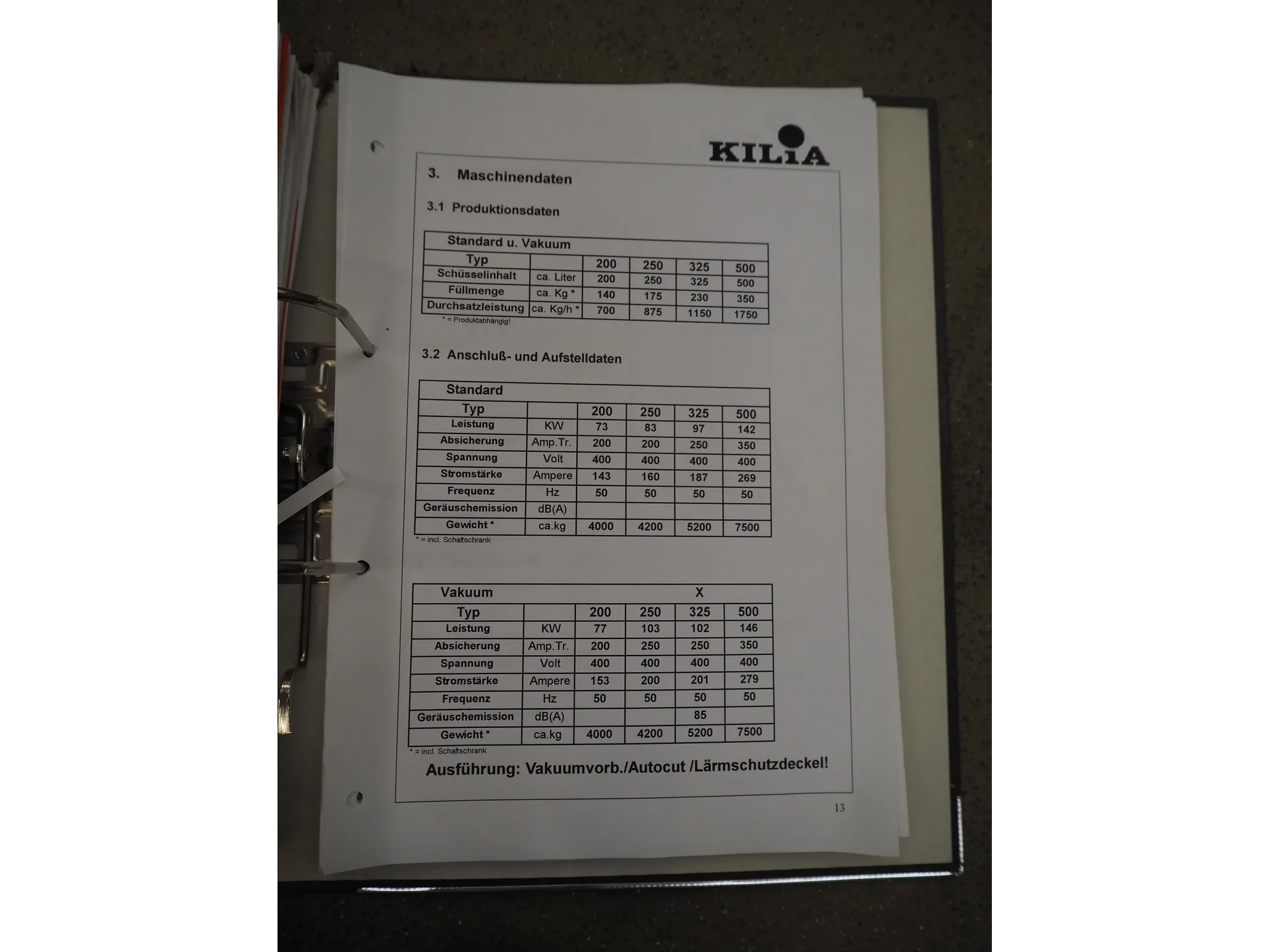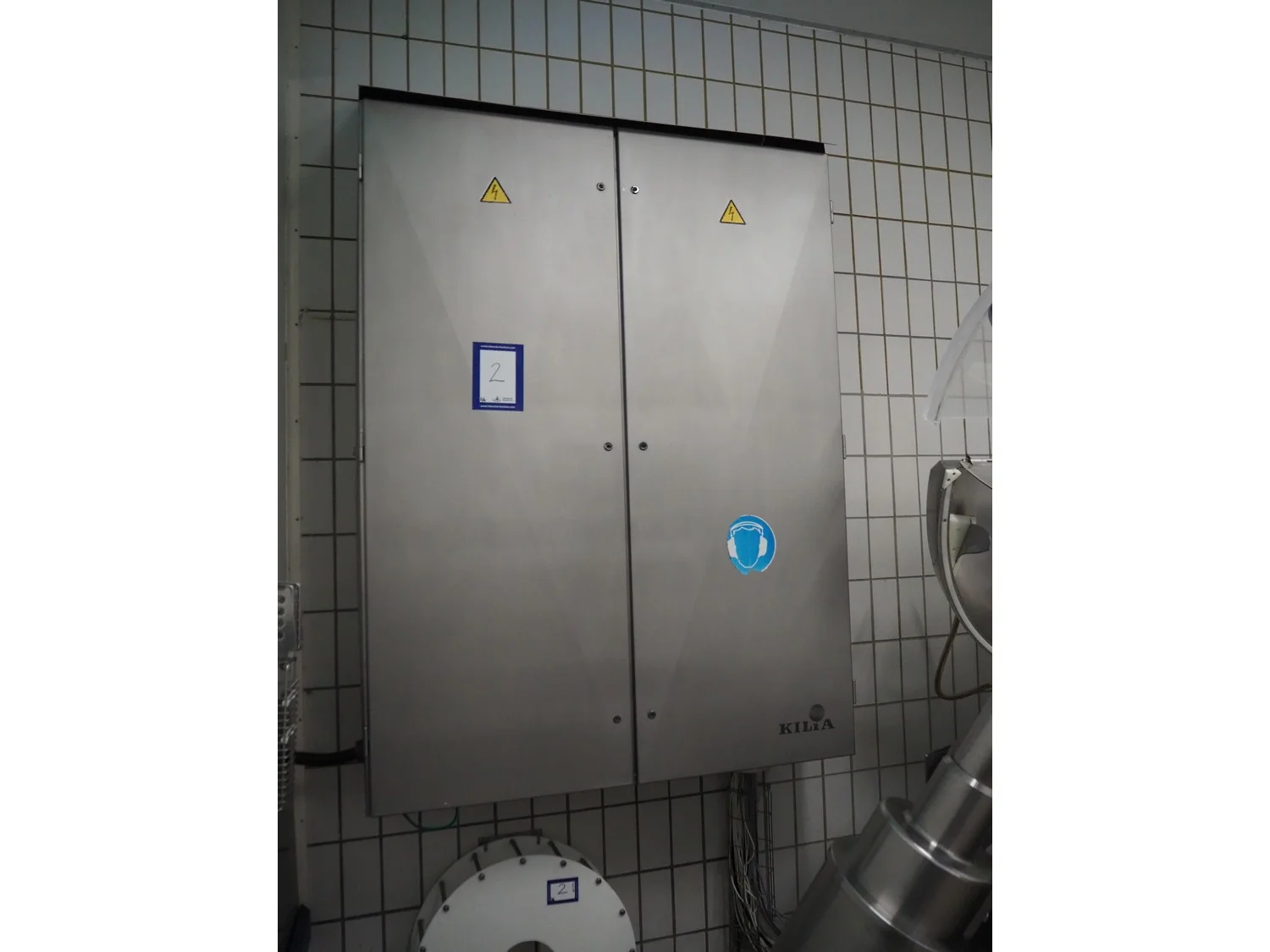 Kilia cutter with lifter for 200 liter meat bins and ejector, type: 325 L K 4000 Express AC, machine number: 89814074, year of construction: 1998, 400 V, 50 Hz, 250 A, 97 kW, machine weight: ca 5200 kg, volume bowl: 325 liter, total dimensions: 2700 mm x 3600 mm x 2600 mm, s/s switch cabinet, dimensions: 1480 mm x 500 mm x 2000 mm, pallet with additional knives.