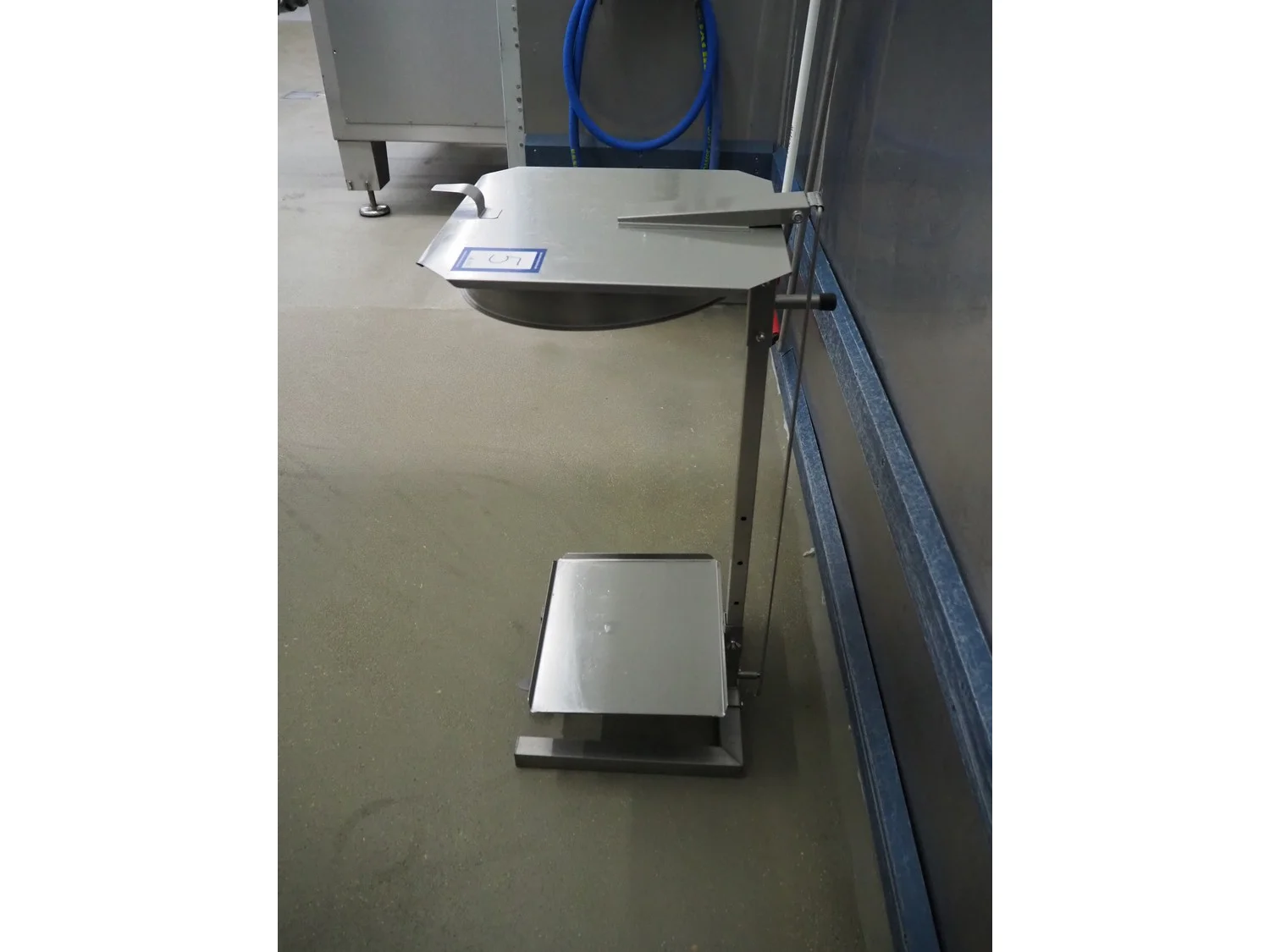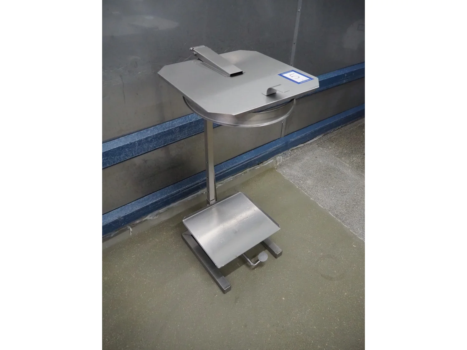 S/s waste bag holder, foot control, dimensions: 500 mm x 400 mm x 1000 mm.