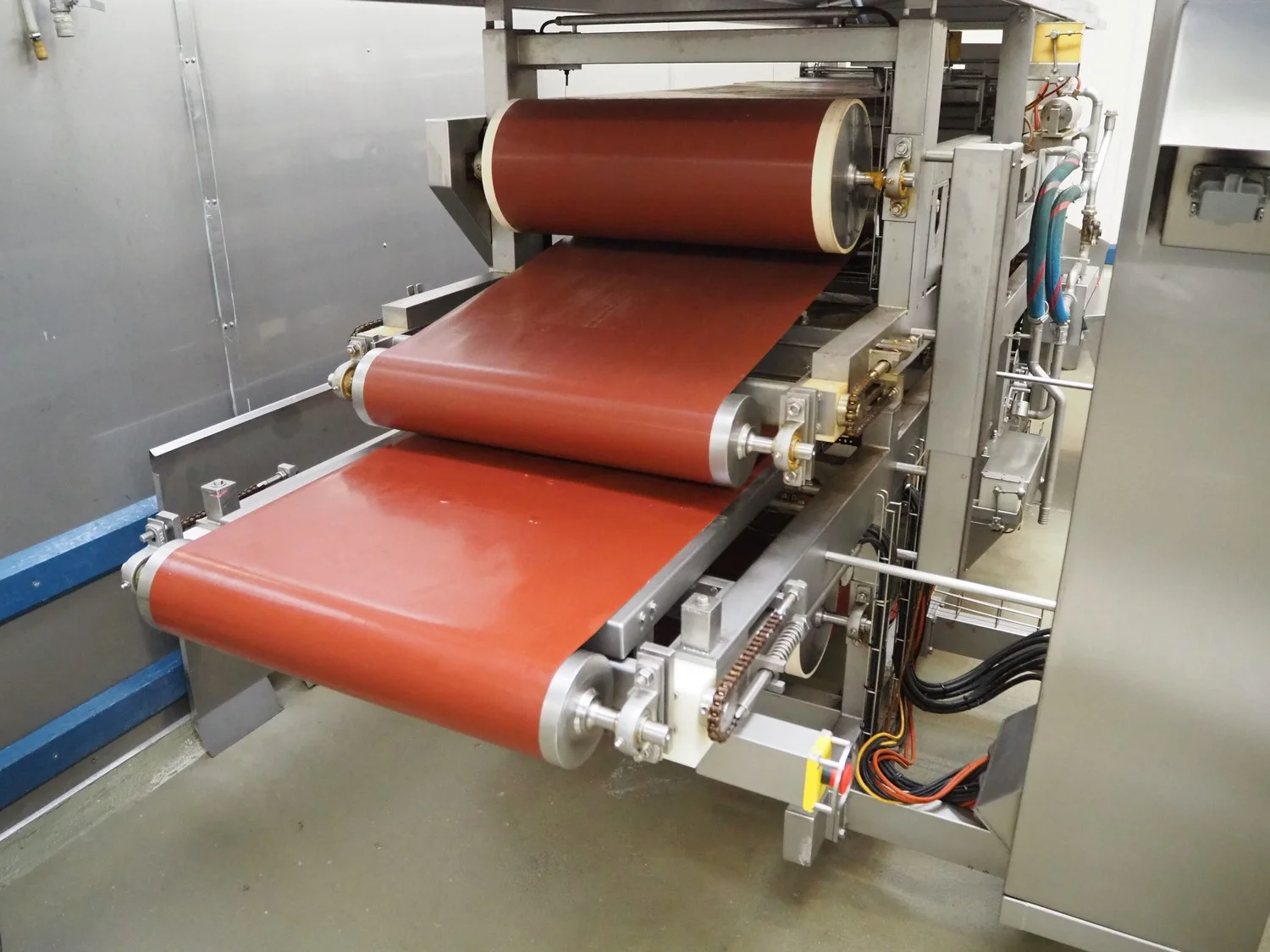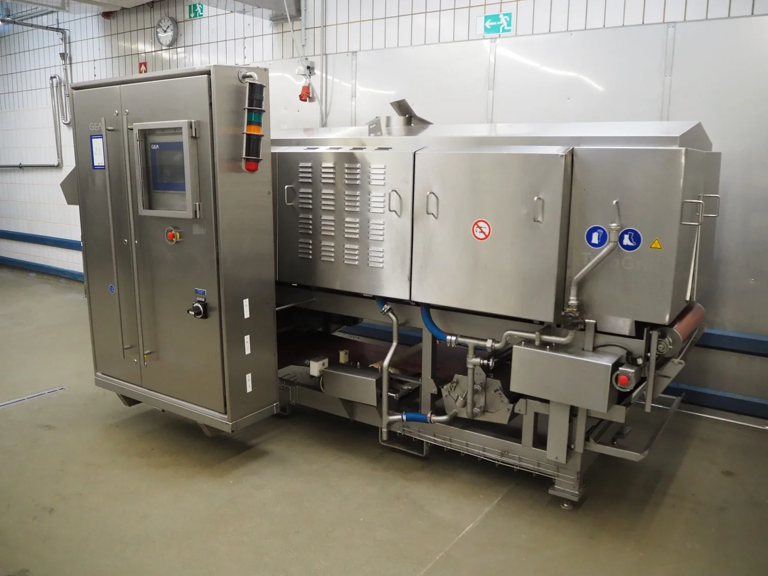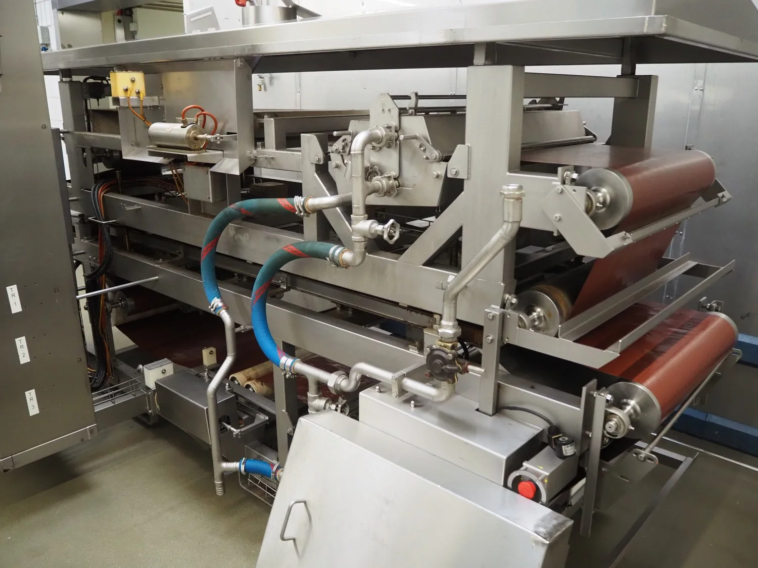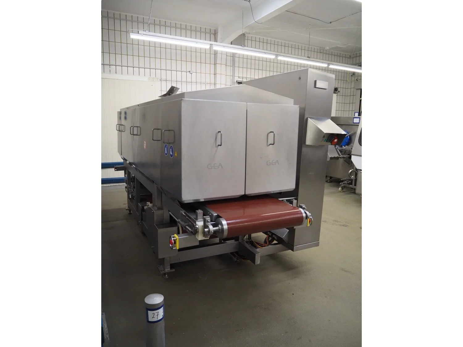 GEA teflon belt grill, type: TWG2400/600, machine number: 685, year of construction: 2012, 400 V, 3 Ph, 50 Hz, 190 A, 126 kW, 2750 kg, Teflon belt, belt width: 650 mm, total dimensions: 4000 mm x 1900 mm x 2600 mm.