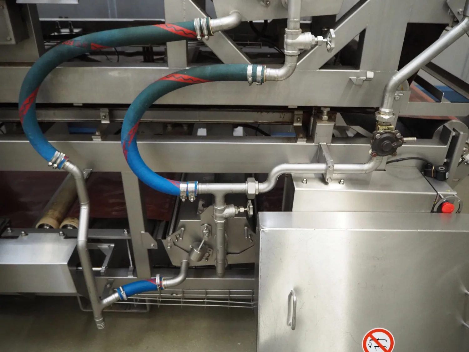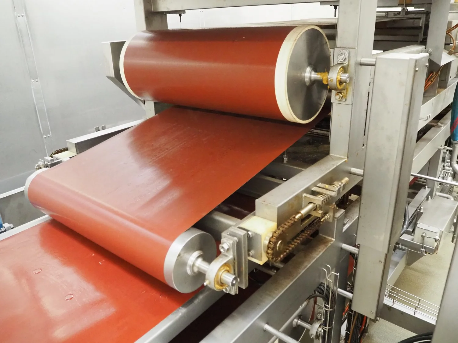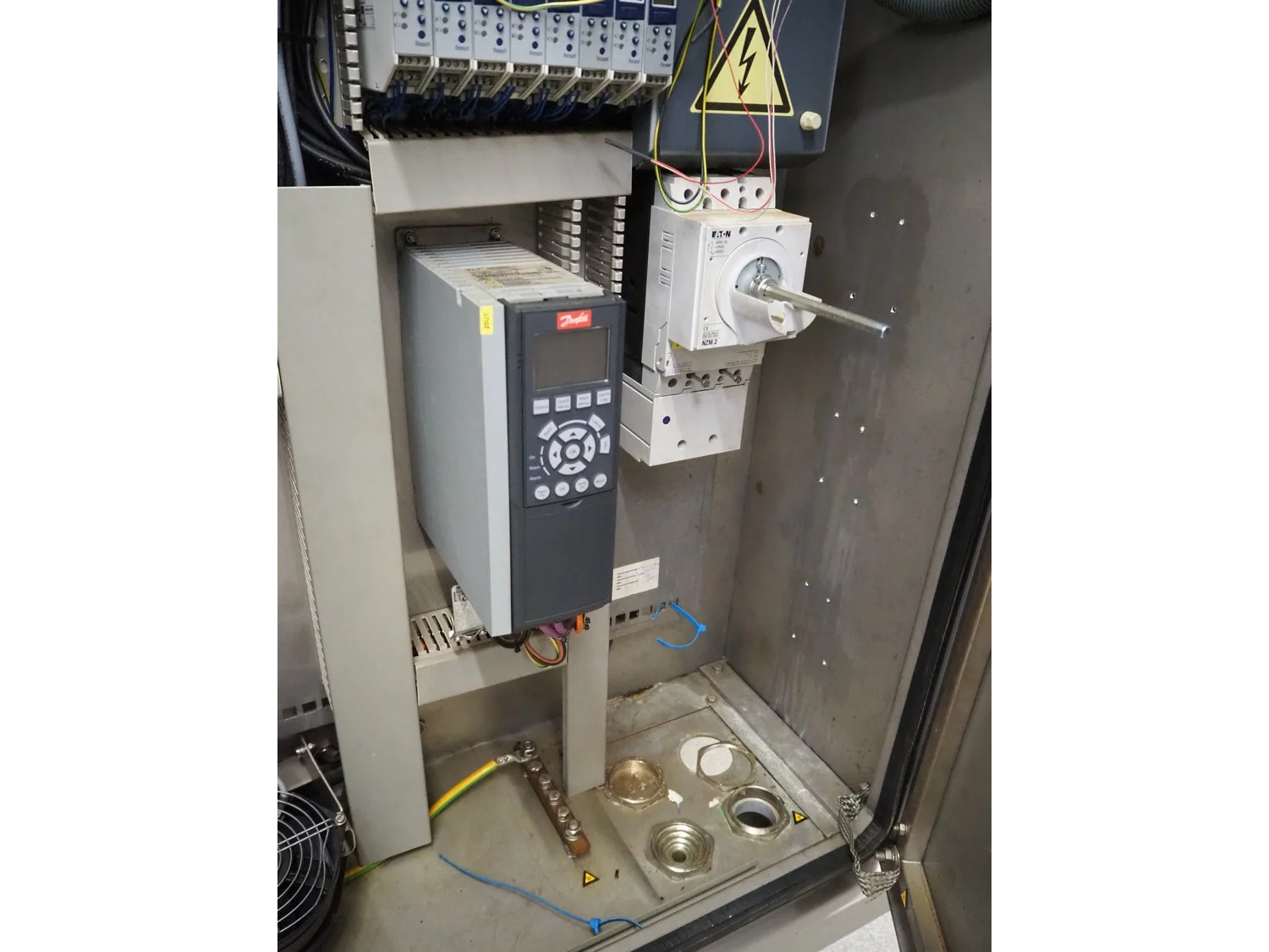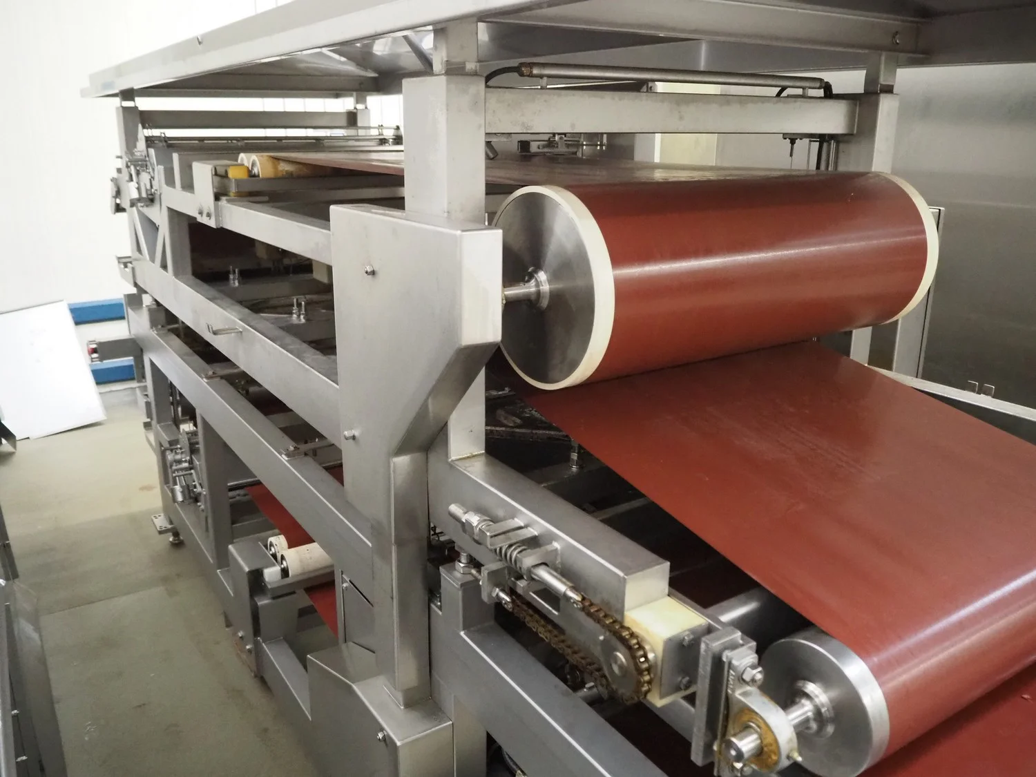 GEA teflon belt grill, type: TWG2400/600, machine number: 685, year of construction: 2012, 400 V, 3 Ph, 50 Hz, 190 A, 126 kW, 2750 kg, Teflon belt, belt width: 650 mm, total dimensions: 4000 mm x 1900 mm x 2600 mm.