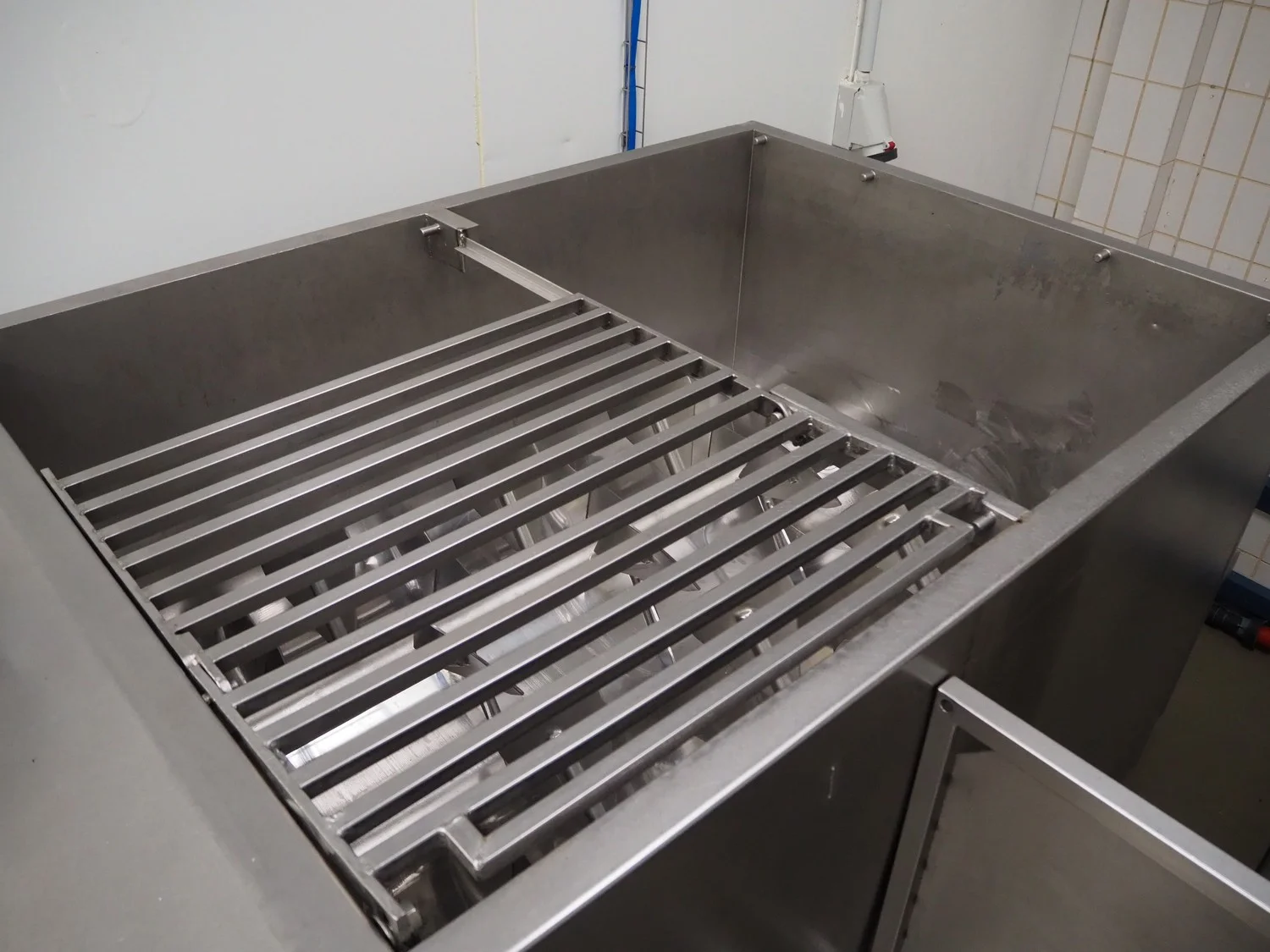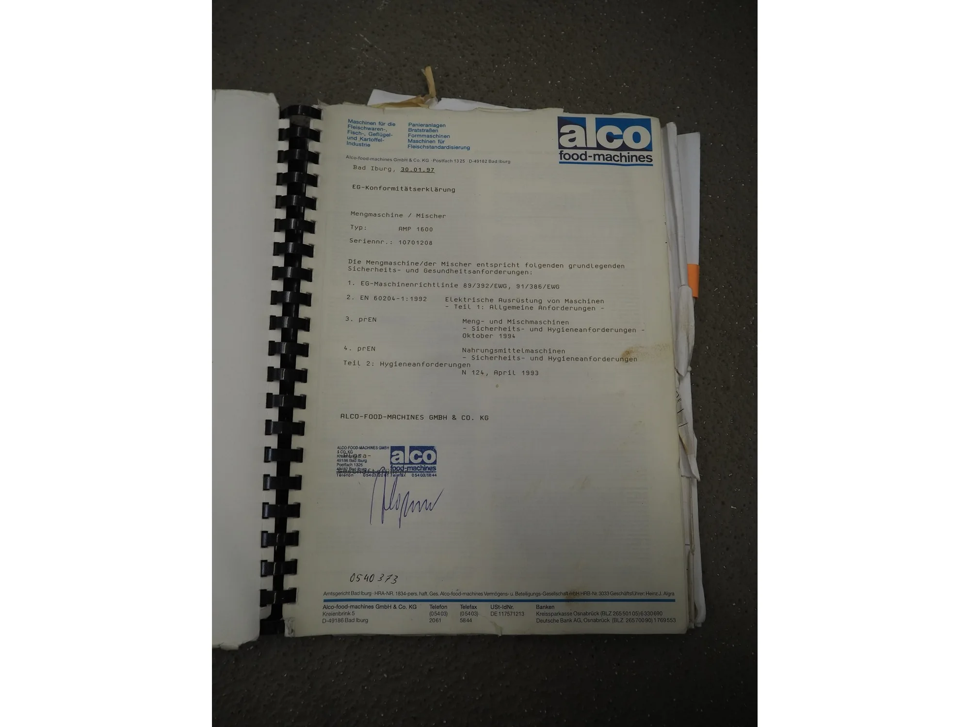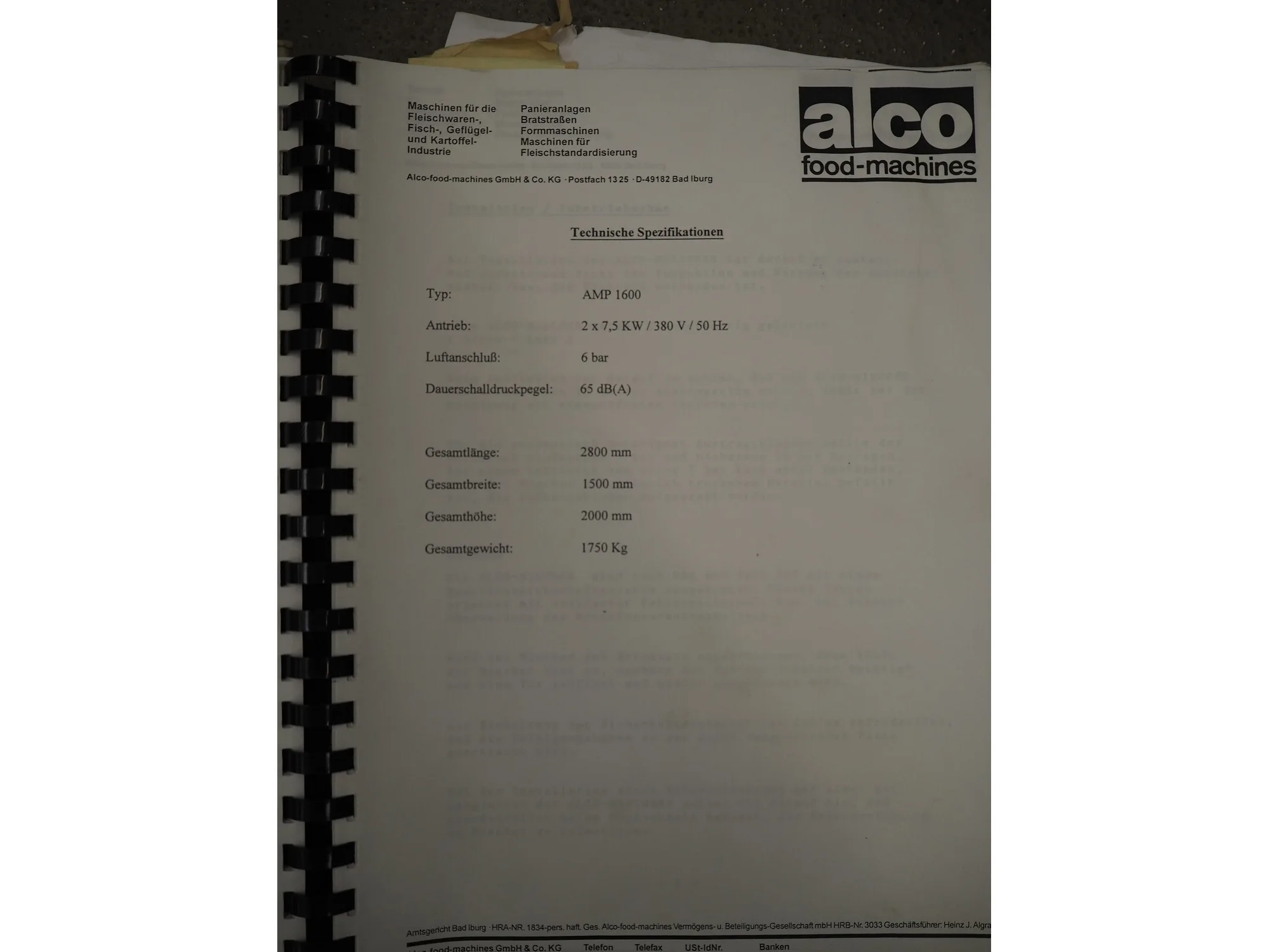 Alco Food Machines GmbH double shaft paddle mixer, type: AMP 1600, serial number: 10701208, year of construction: 1999, 380 V, 50 Hz, (2x) 7.5 kW, machine weight: 1750 kg, volume: 1600 liter, inside dimensions: 1600 mm x 1150 mm x 950 mm, total dimensions: 2800 mm x 1500 mm x 2000 mm.
