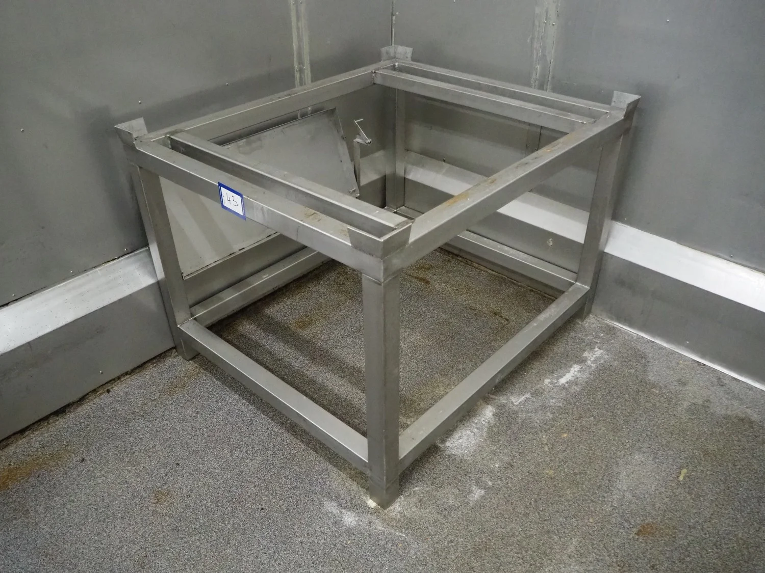 S/s frame for pallet boxes, dimensions: 1250 mm x 1050 mm x 860 mm.