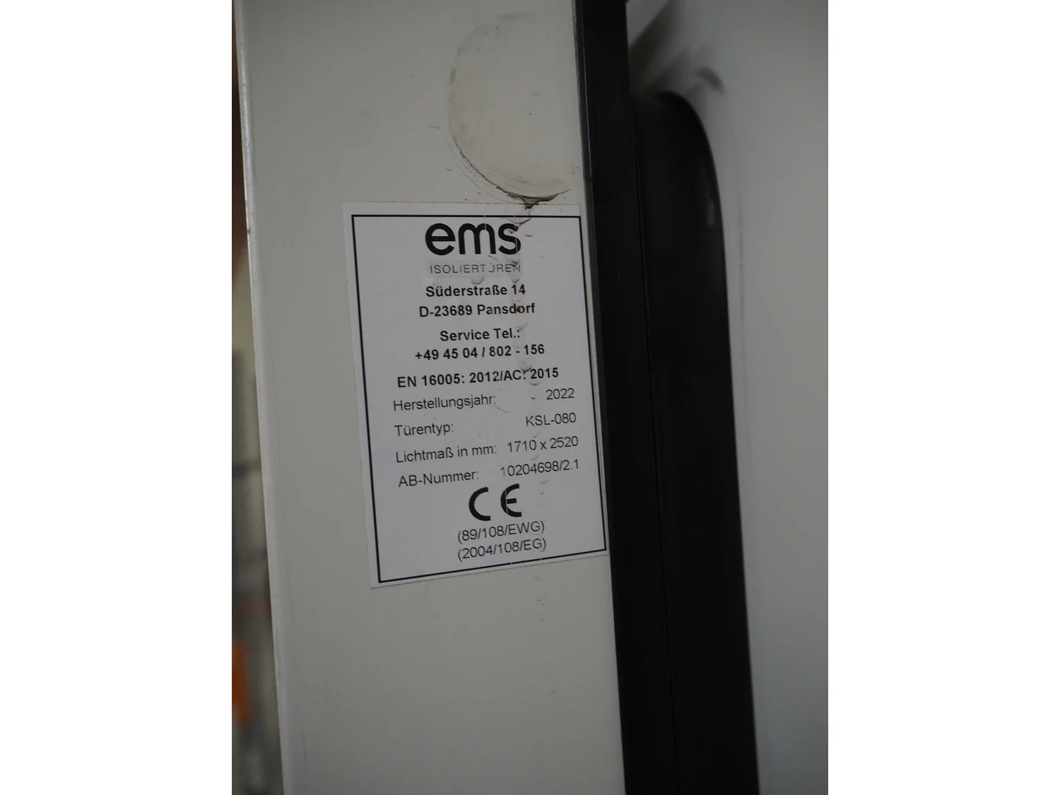 EMS refrigerated sliding door, type: KSL-080, number: 10204698/2.1, year of construction: 2022, thickness door: 80 mm, dimensions door: 1710 mm x 2520 mm, length rails: 3000 mm.