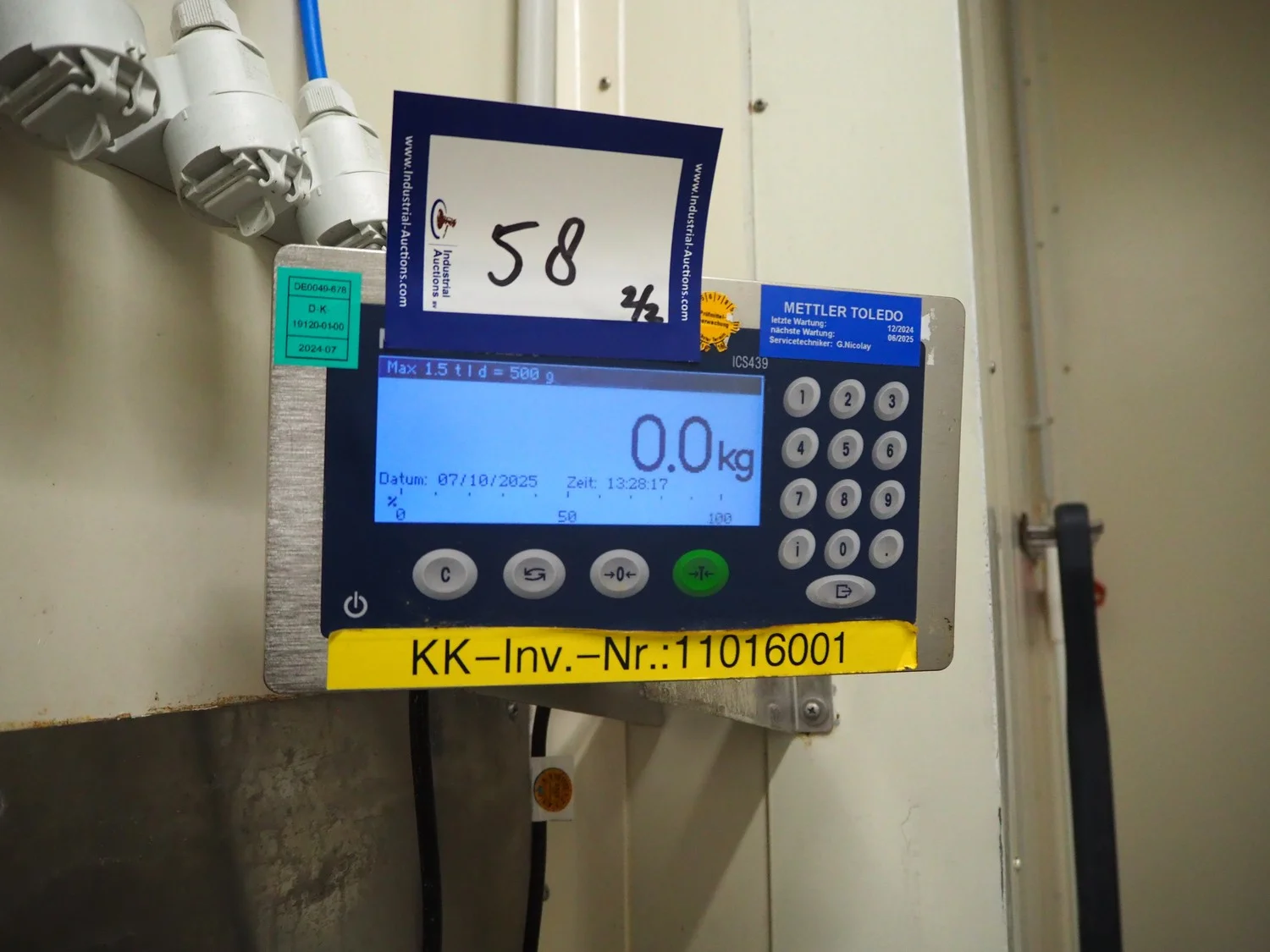 Mettler Toledo GmbH floor weighing scale with indicator, type indicator: ICS439d, 100-240 V, 50/60 Hz, 300 mA, dimensions scale: 1500 mm x 1250 mm, dimensions indicator: 250 mm x 80 mm x 150 mm. S/s outer frame of floor weighing scale is not included.
