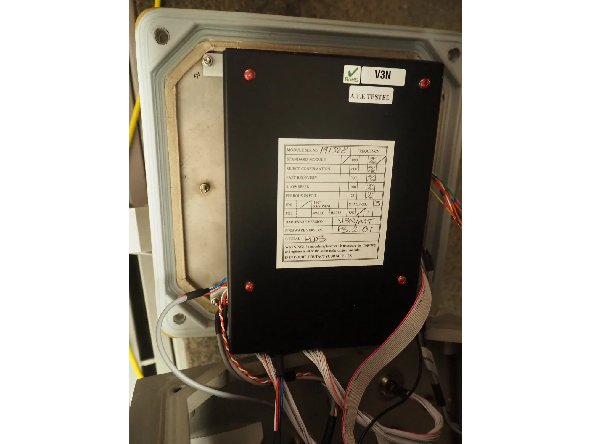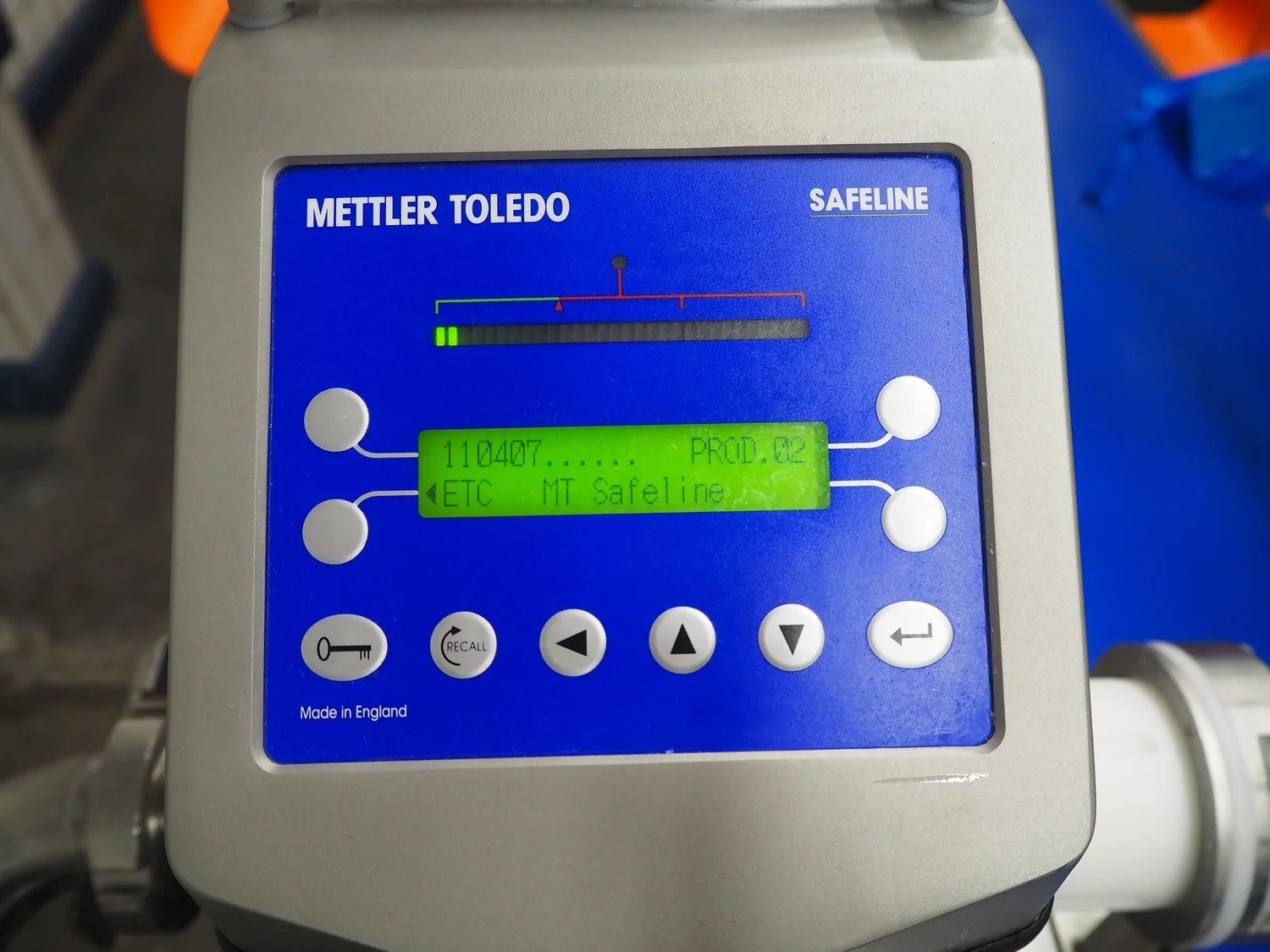 Mettler Toledo Safeline mobile pipeline metal detector, serial number: 19/328, diameter clearance: 110 mm, total dimensions: 860 mm x 500 mm x 1500 mm. Last calibration - 15.05.2024.