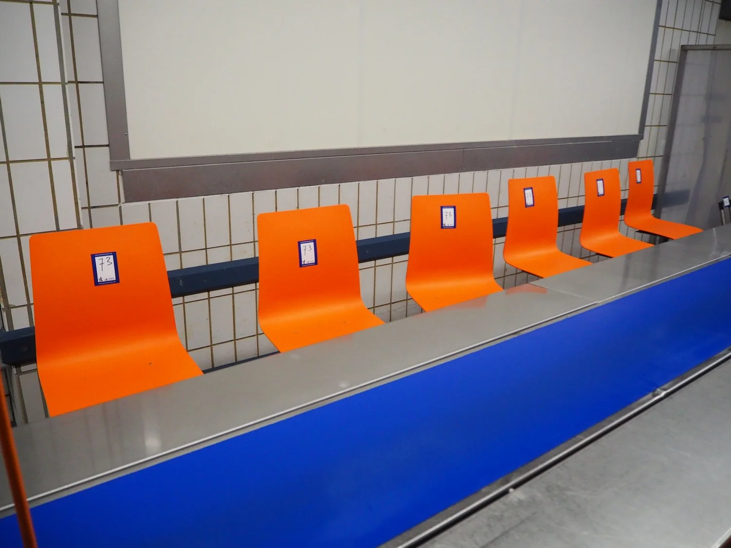6 chairs on s/s frames, dimensions: (6x) 500 mm x 450 mm x 1150 mm.