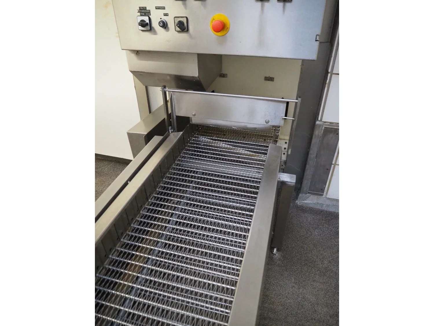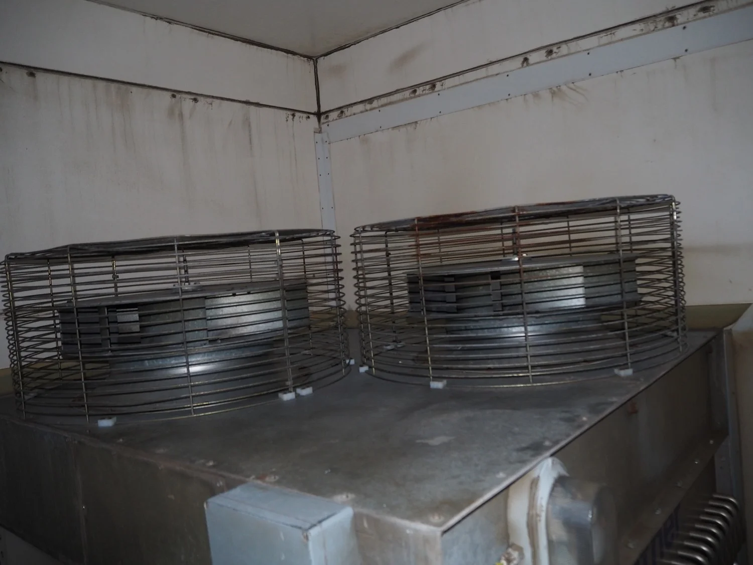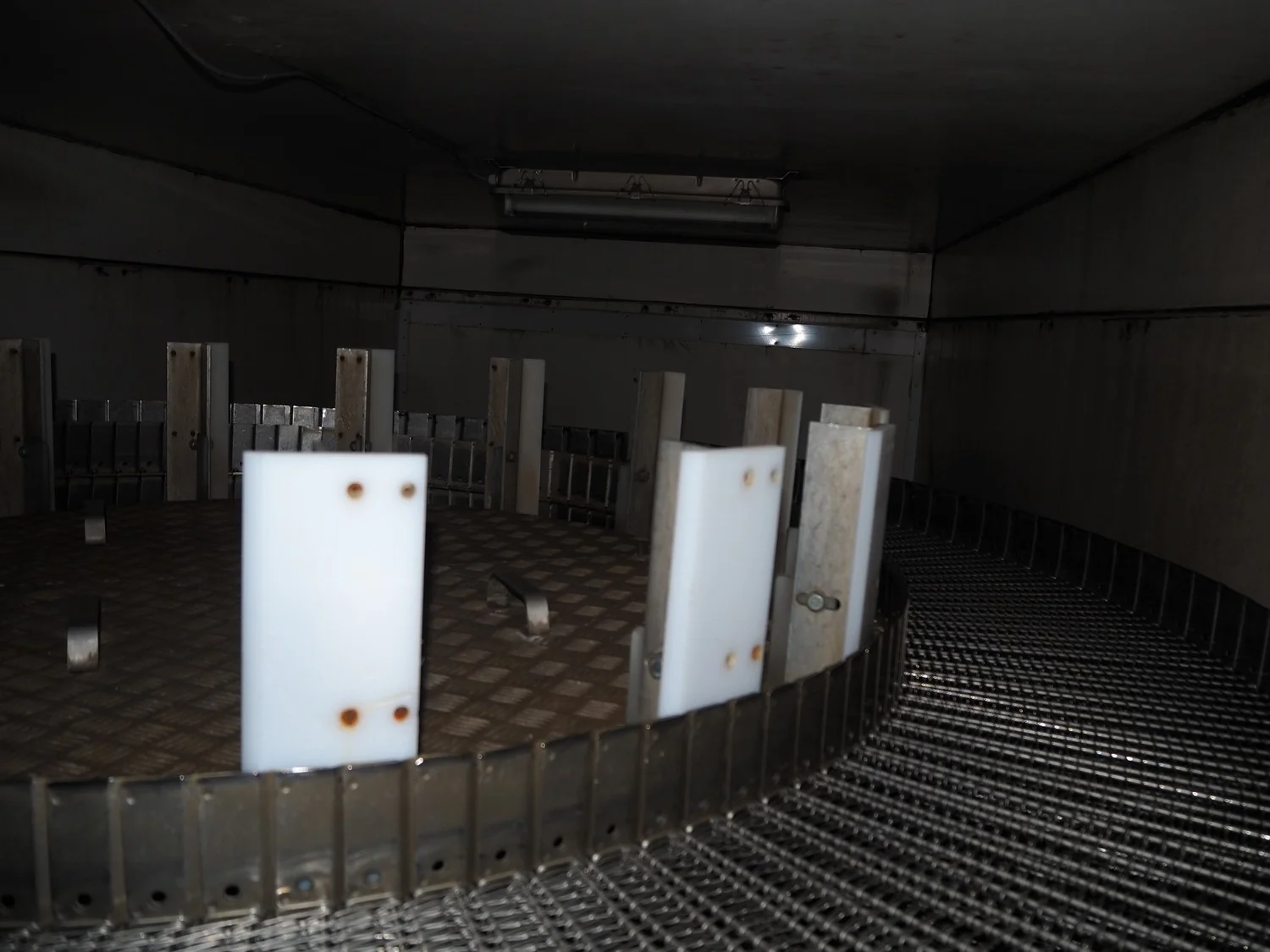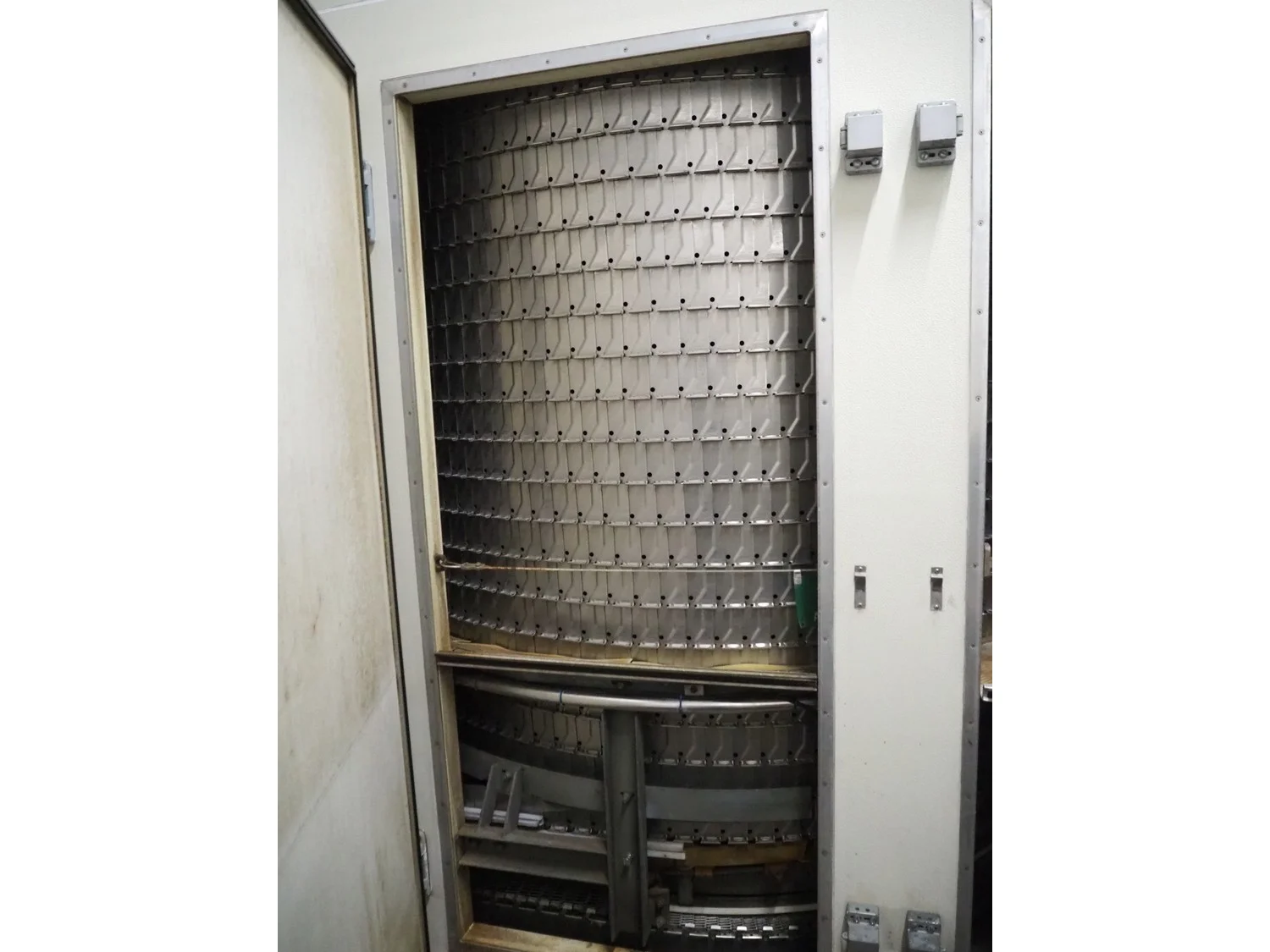 Frigoscandia Gyrocompact® spiral freezer, model: GC P 42-09-25-06, number: 470372, North-North, refrigerant: NH3, 25 floors, Frigobelt s/s mesh belt, total belt width: 420 mm, netto belt width: 375 mm, infeed height: 560 mm, outfeed height: 2900 mm, Güntner evaporator, number: 101167571, year of construction evaporator: 2021, volume: 300.9 liter, temperature range: -50/+150°C, total dimensions: 8000 mm x 2450 mm x 3500 mm.