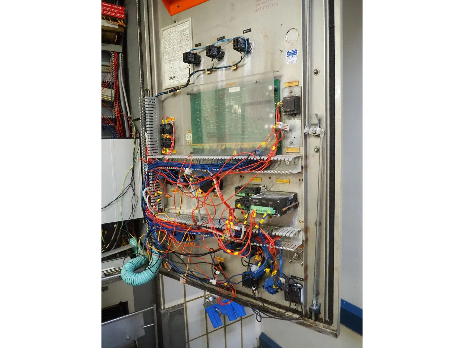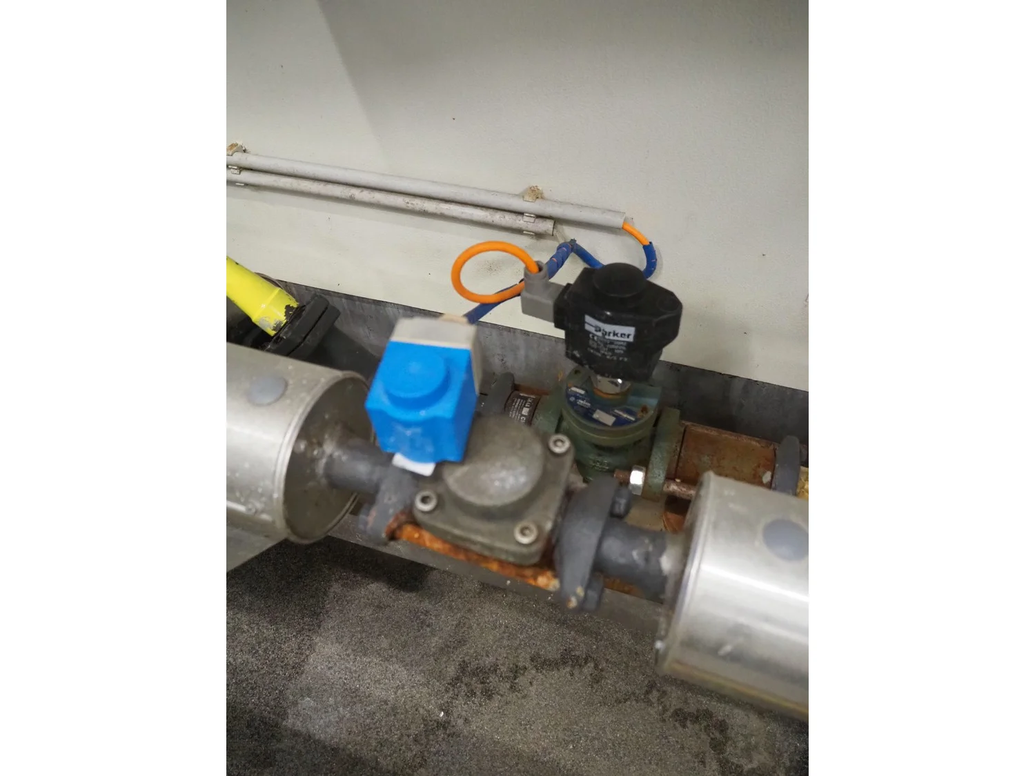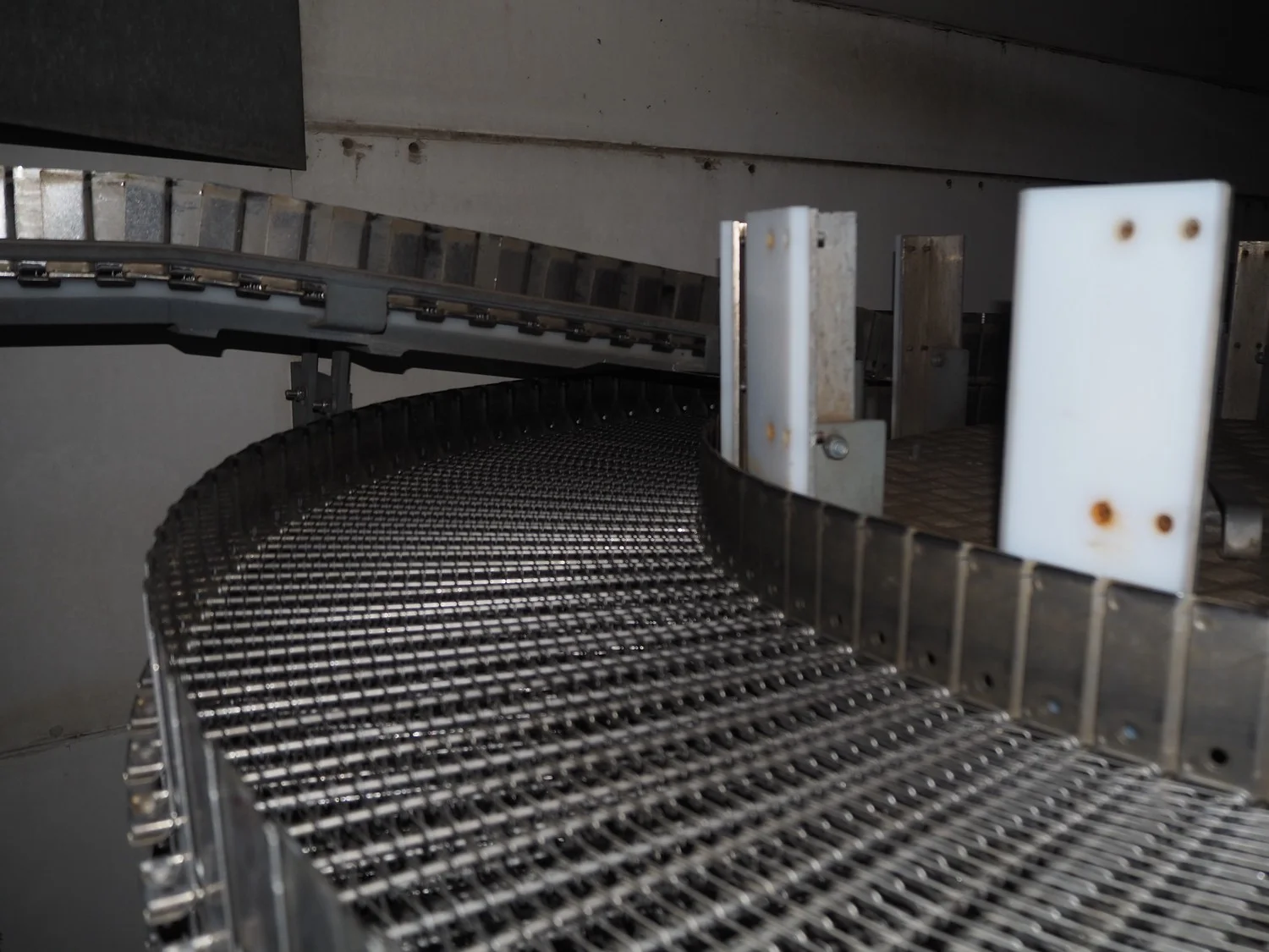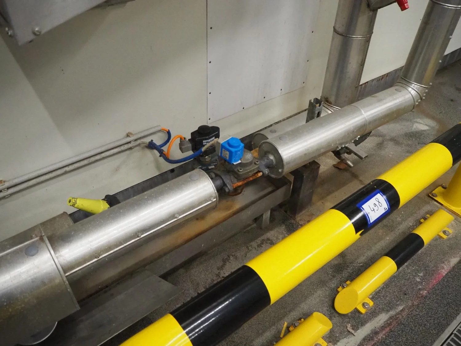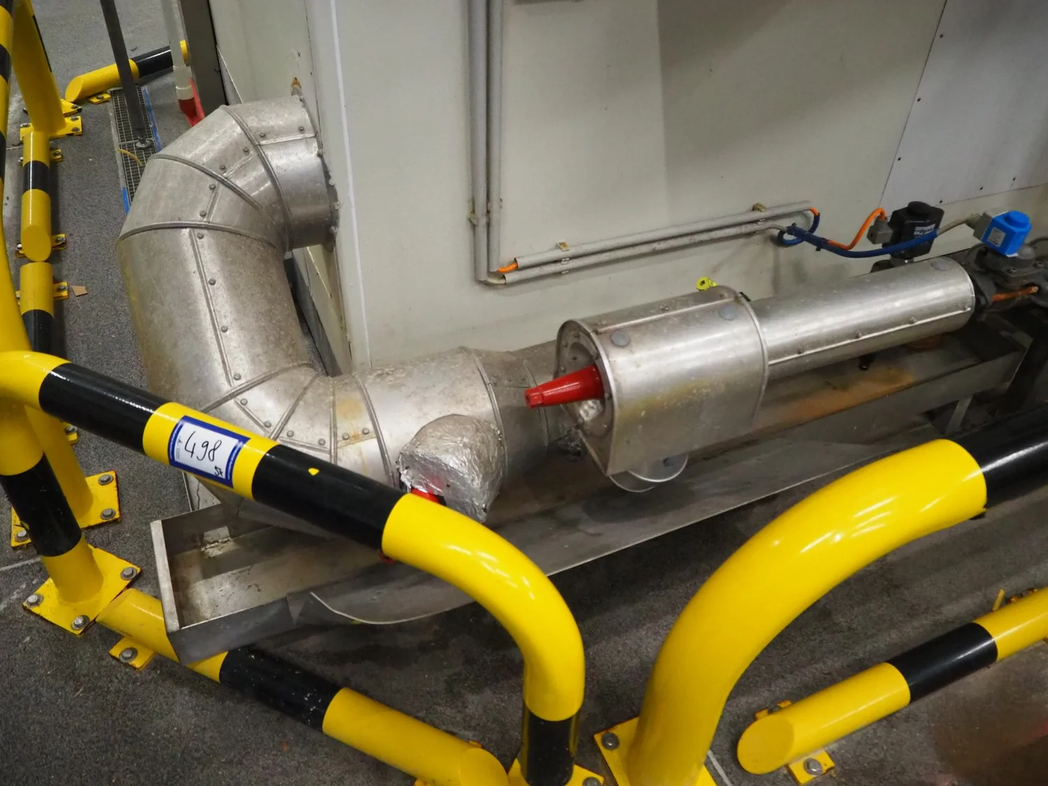 Frigoscandia Gyrocompact® spiral freezer, model: GC P 42-09-25-06, number: 470372, North-North, refrigerant: NH3, 25 floors, Frigobelt s/s mesh belt, total belt width: 420 mm, netto belt width: 375 mm, infeed height: 560 mm, outfeed height: 2900 mm, Güntner evaporator, number: 101167571, year of construction evaporator: 2021, volume: 300.9 liter, temperature range: -50/+150°C, total dimensions: 8000 mm x 2450 mm x 3500 mm.