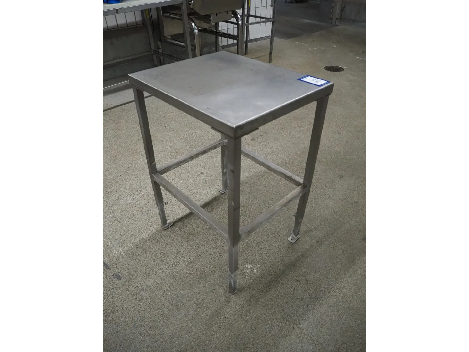 S/s table, dimensions: 600 mm x 500 mm x 840 mm.