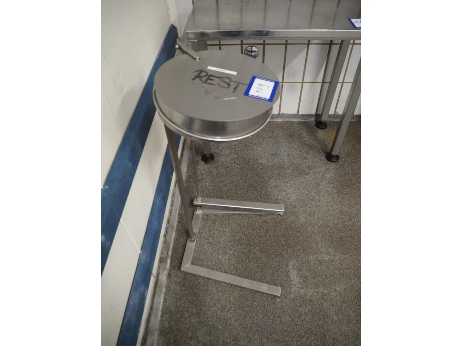 S/s waste bag holder, foot control, dimensions: 500 mm x 400 mm x 900 mm.