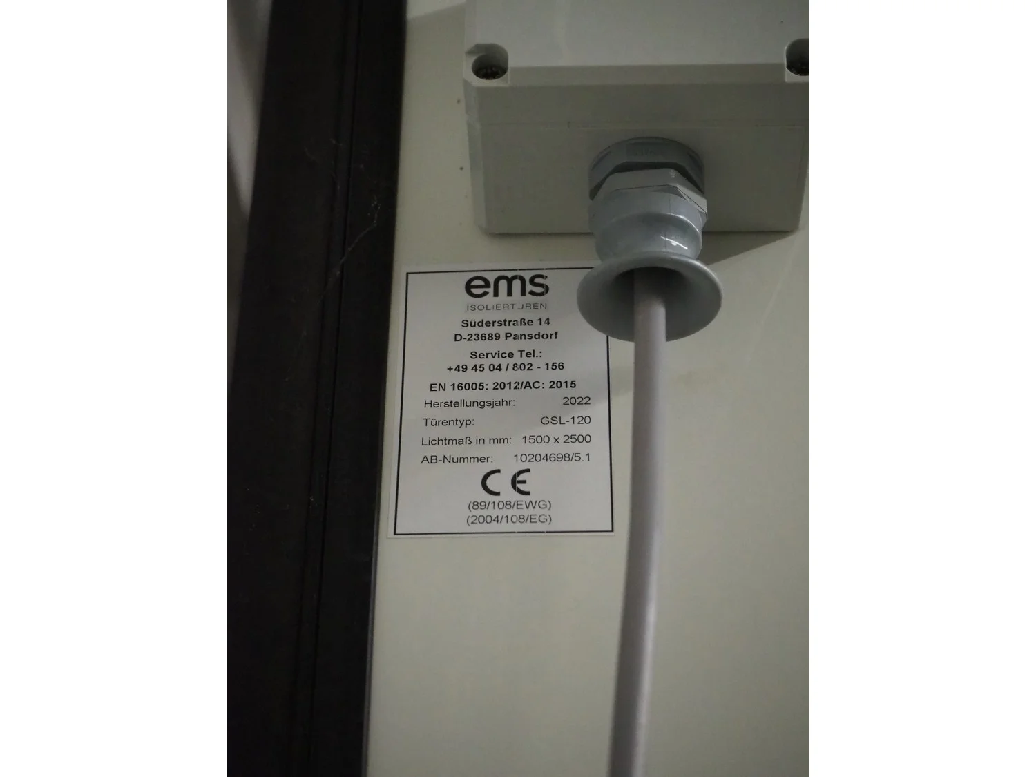 EMS refrigerated sliding door, type: GSL-120, number: 10204698/5.1, year of construction: 2022, thickness door: 120 mm, dimensions door: 1500 mm x 2500 mm, length rails: 3000 mm.