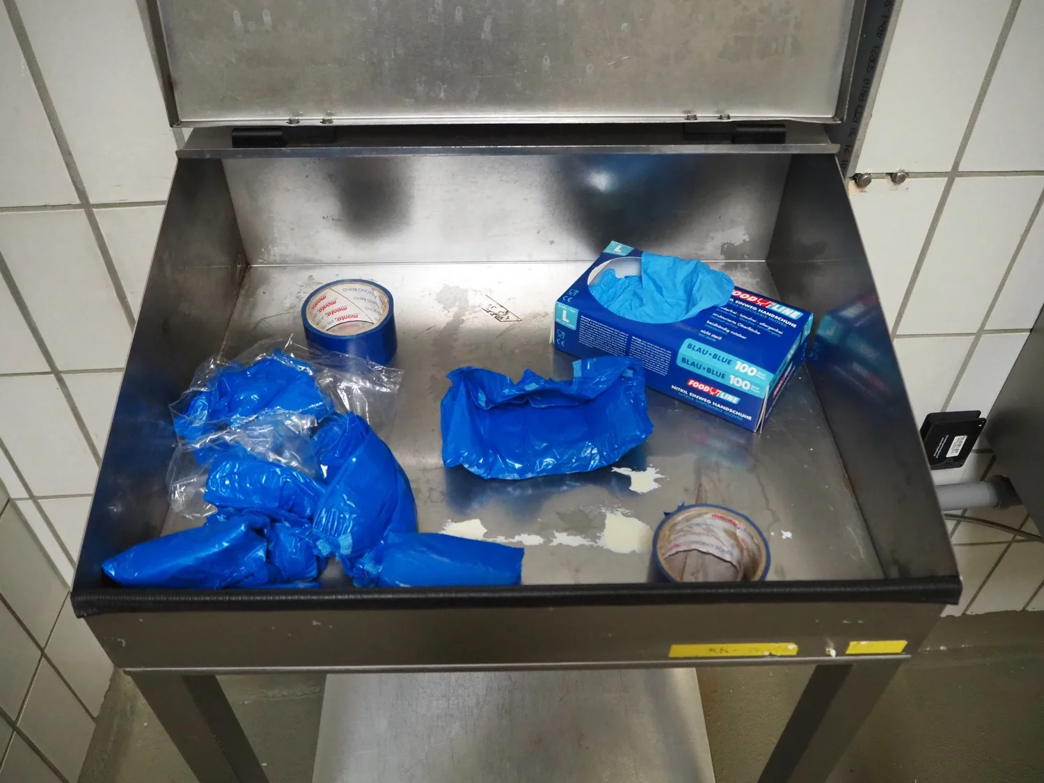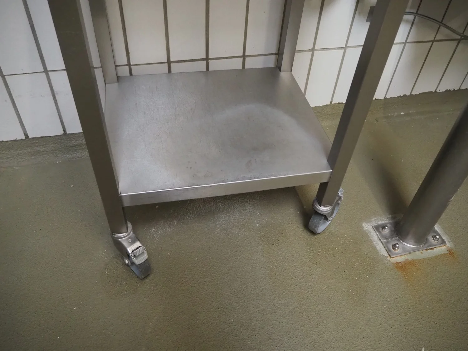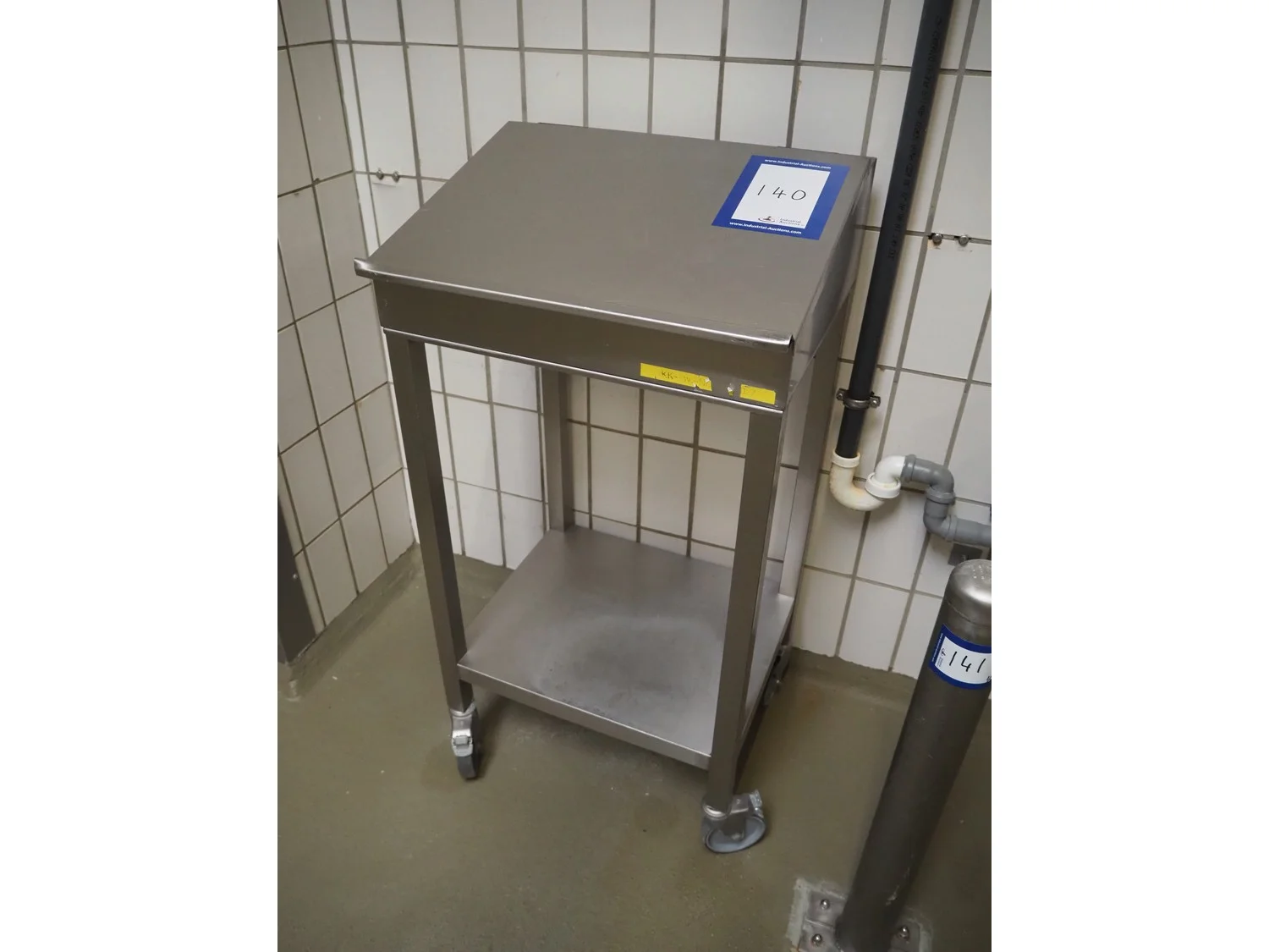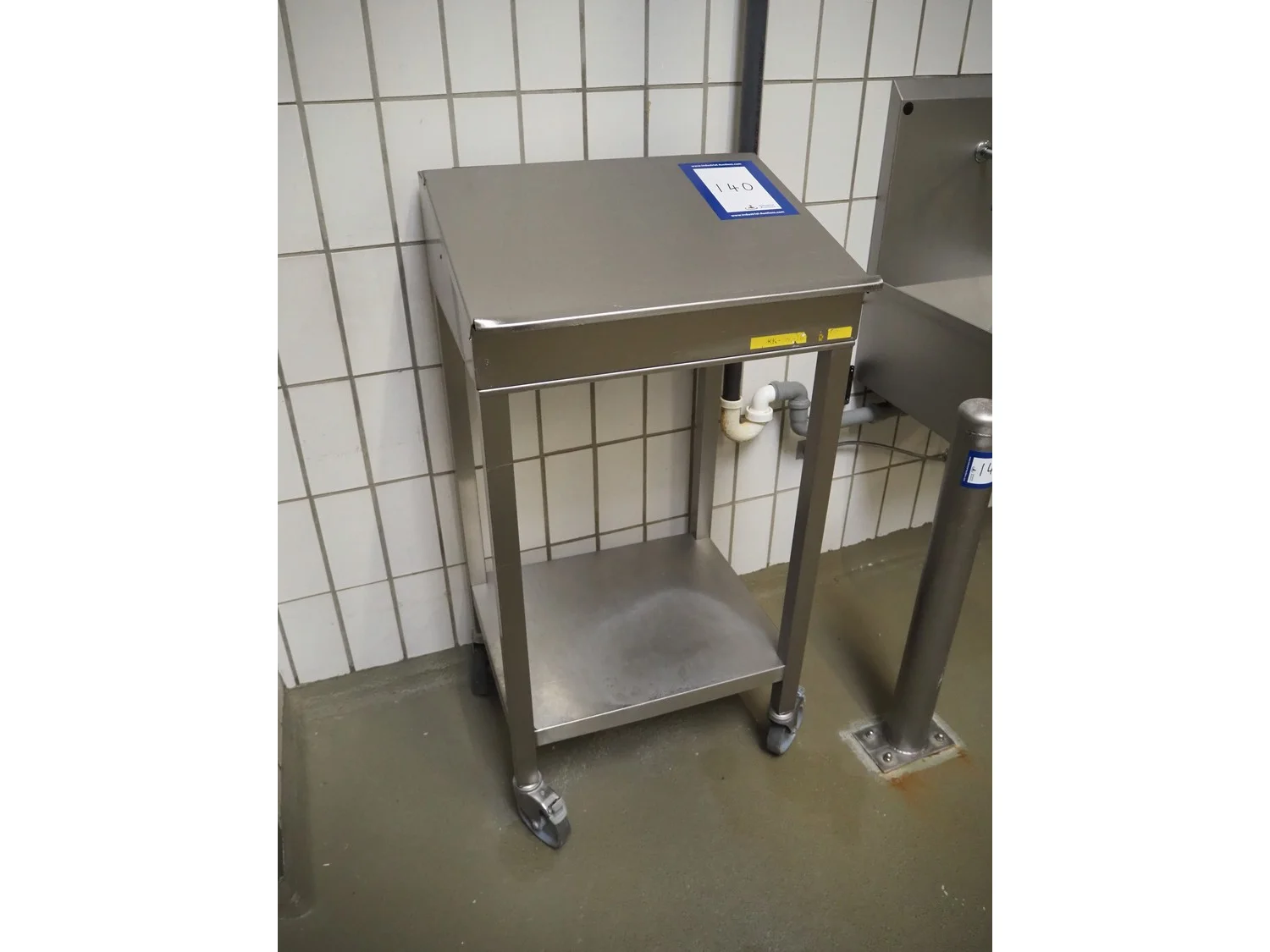 S/s mobile writing desk, dimensions: 600 mm x 500 mm x 1200 mm.