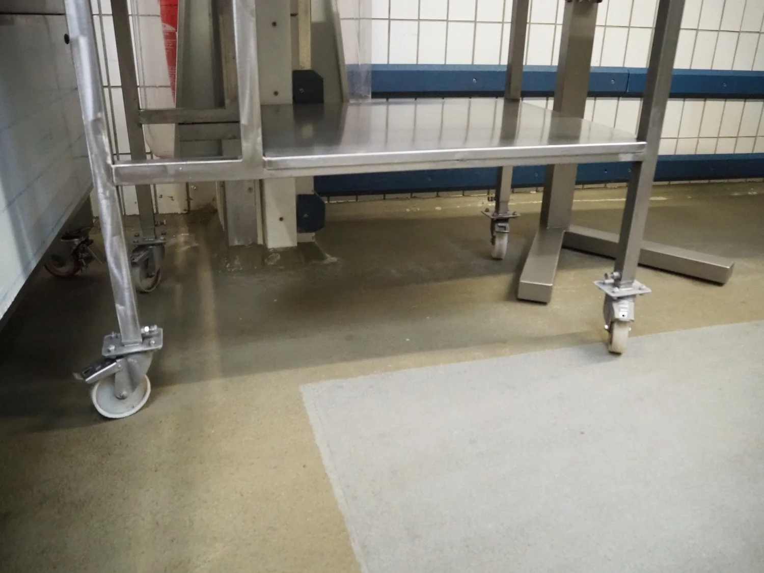 S/s mobile table, dimensions: 1300 mm x 800 mm x 1000 mm.