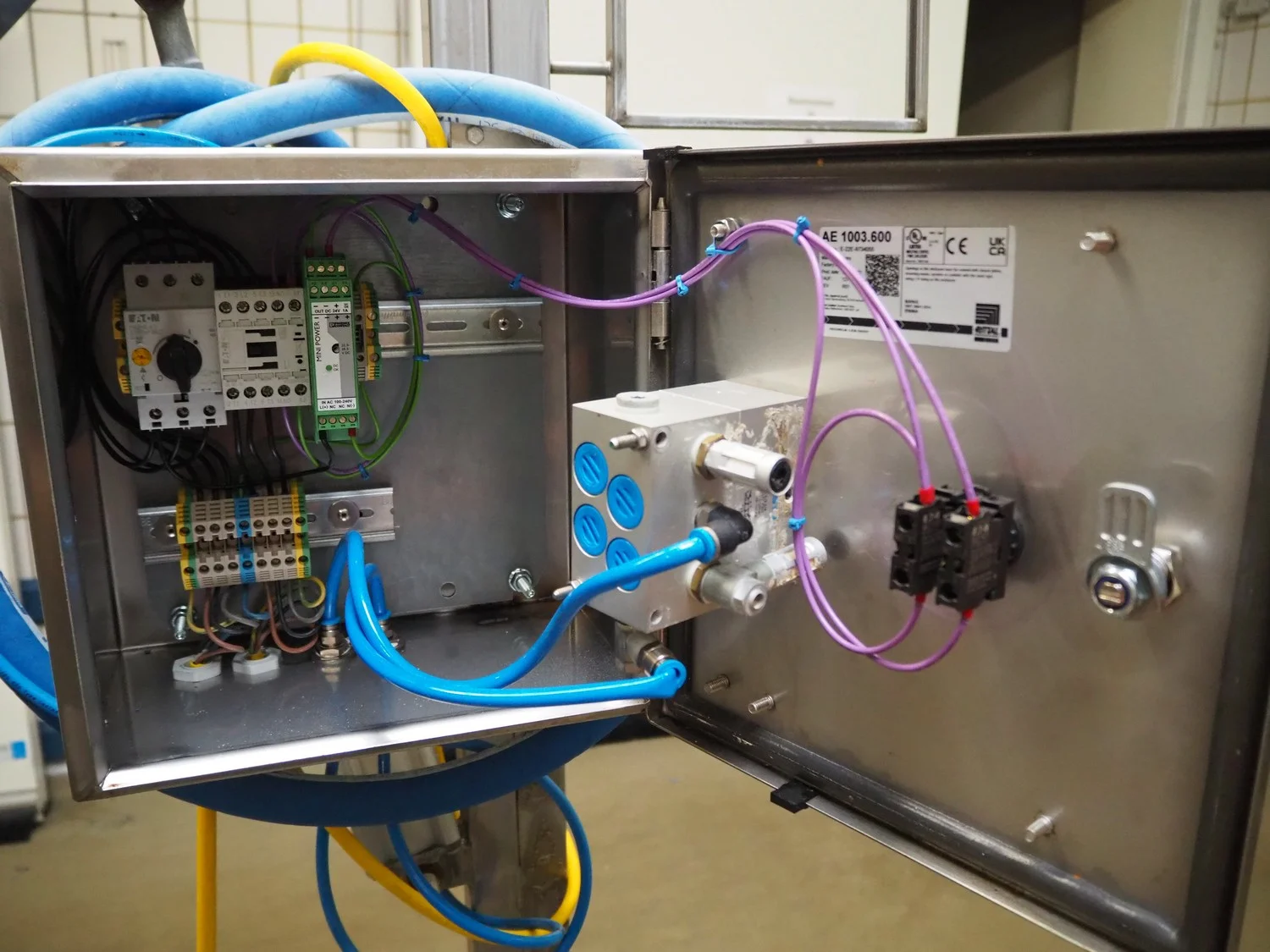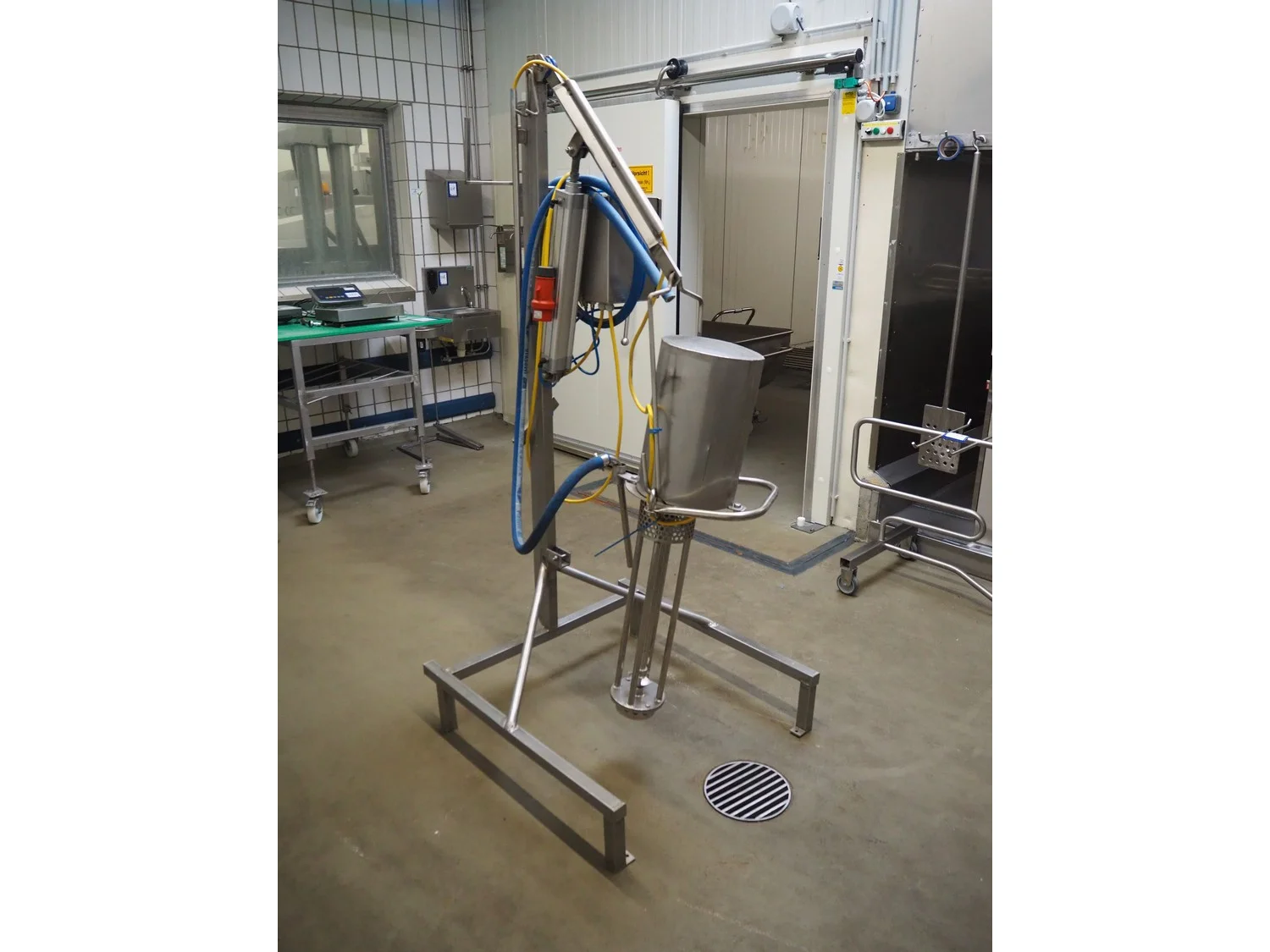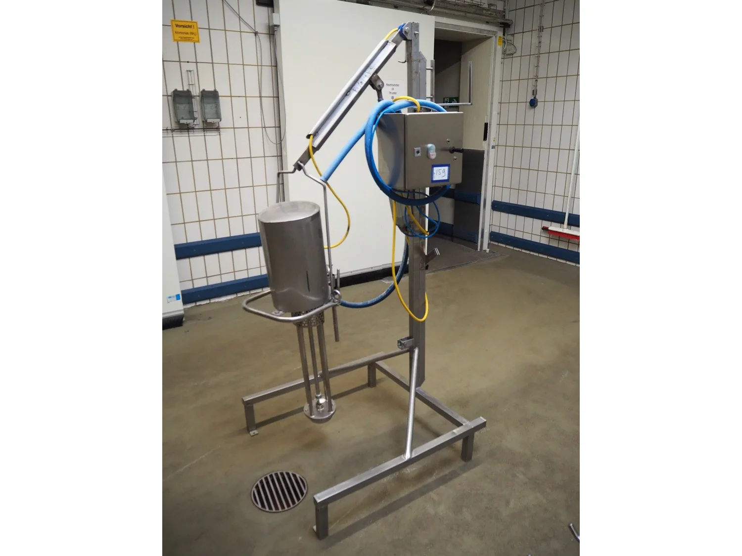 Silverson mobile mixer used for meat bins, dimensions: 900 mm x 900 mm x 2000 mm.