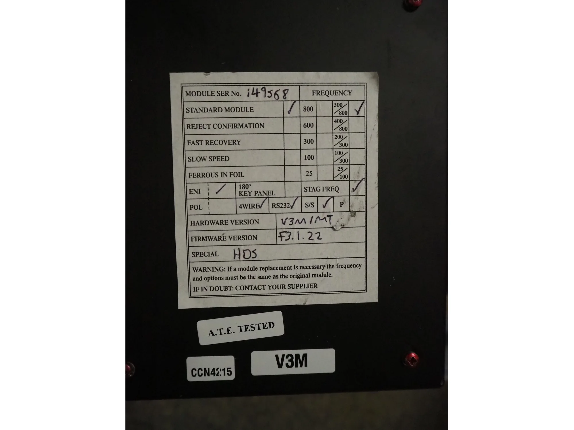 Mettler Toledo Safeline mobile pipeline metal detector with rejecter, diameter pipe: 80 mm, total dimensions: 980 mm x 600 mm x 1600 mm. Missing pipe.
