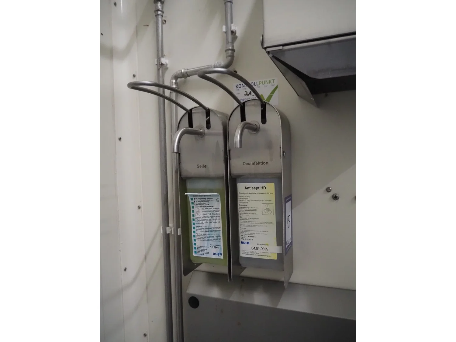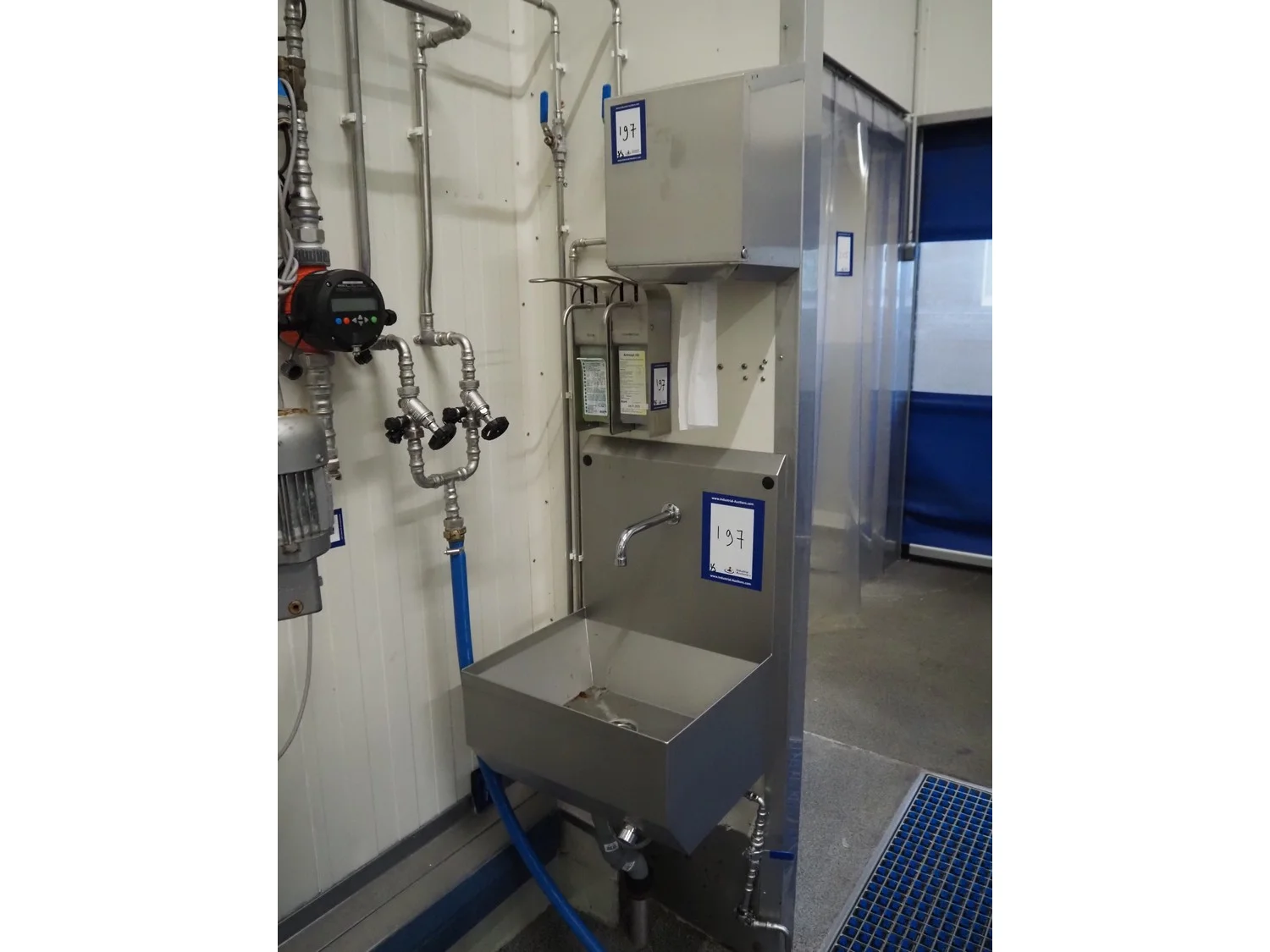 S/s sink, knee control, dimensions: 500 mm x 450 mm x 700 mm, s/s paper dispenser, dimensions: 280 mm x 250 mm x 380 mm, 2 s/s soap dispensers.
