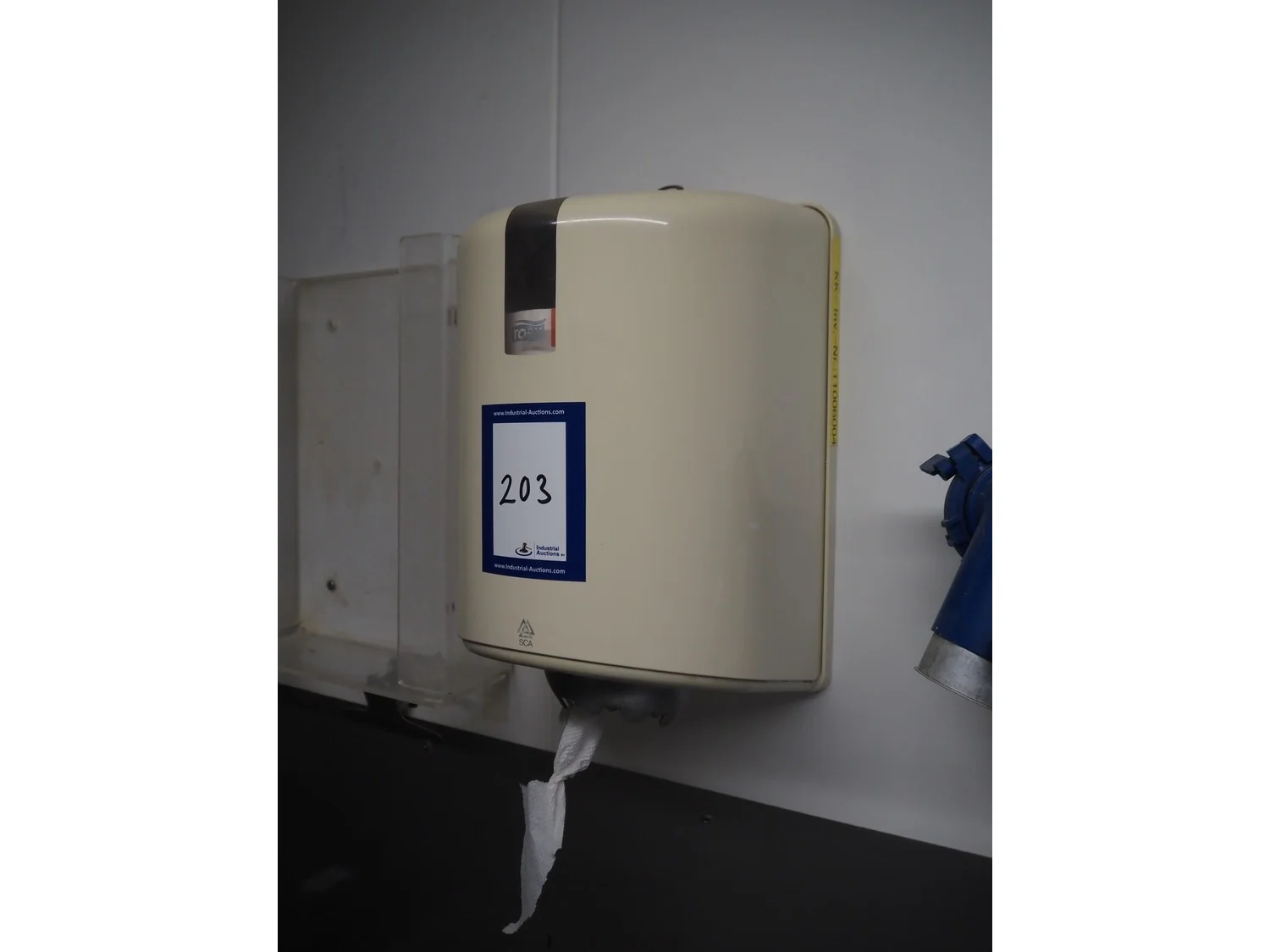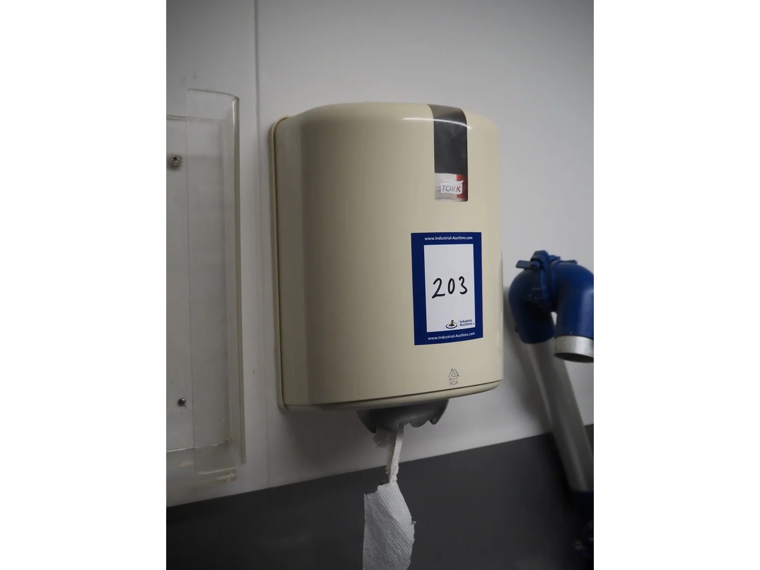 Tork paper dispenser, dimensions: 250 mm x 210 mm x 260 mm.