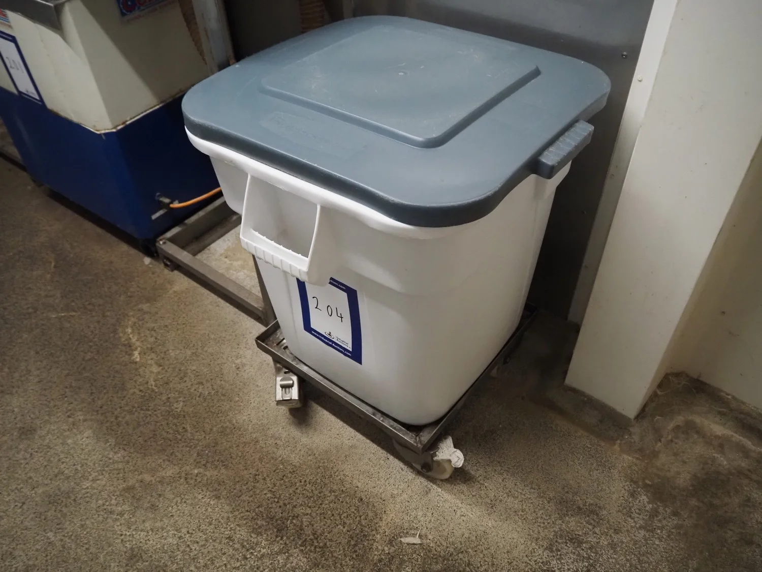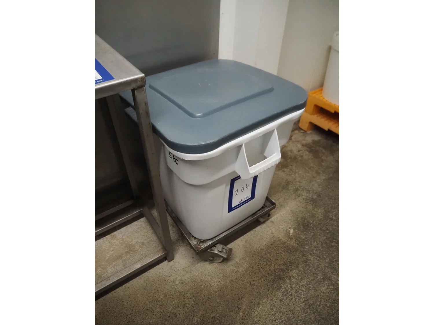 S/s rollie with plastic tub, dimensions: 560 mm x 560 mm x 750 mm.