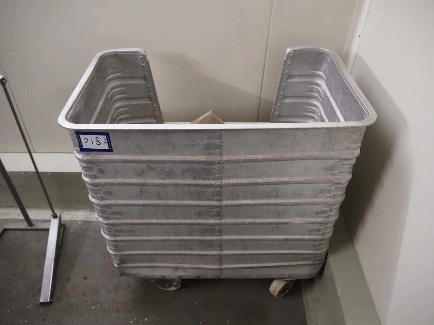 Steel mobile waste container, dimensions: 830 mm x 560 mm x 910 mm.