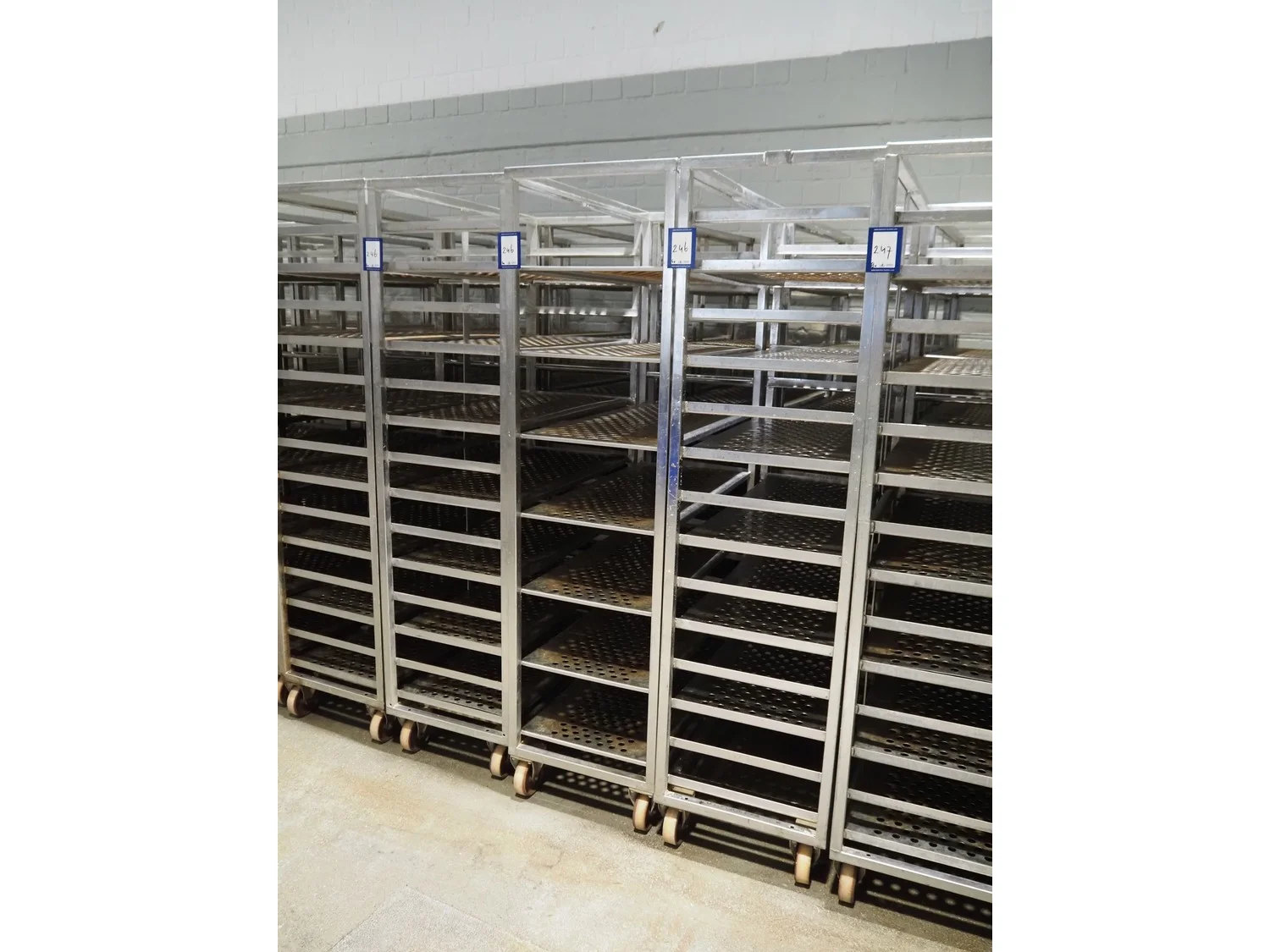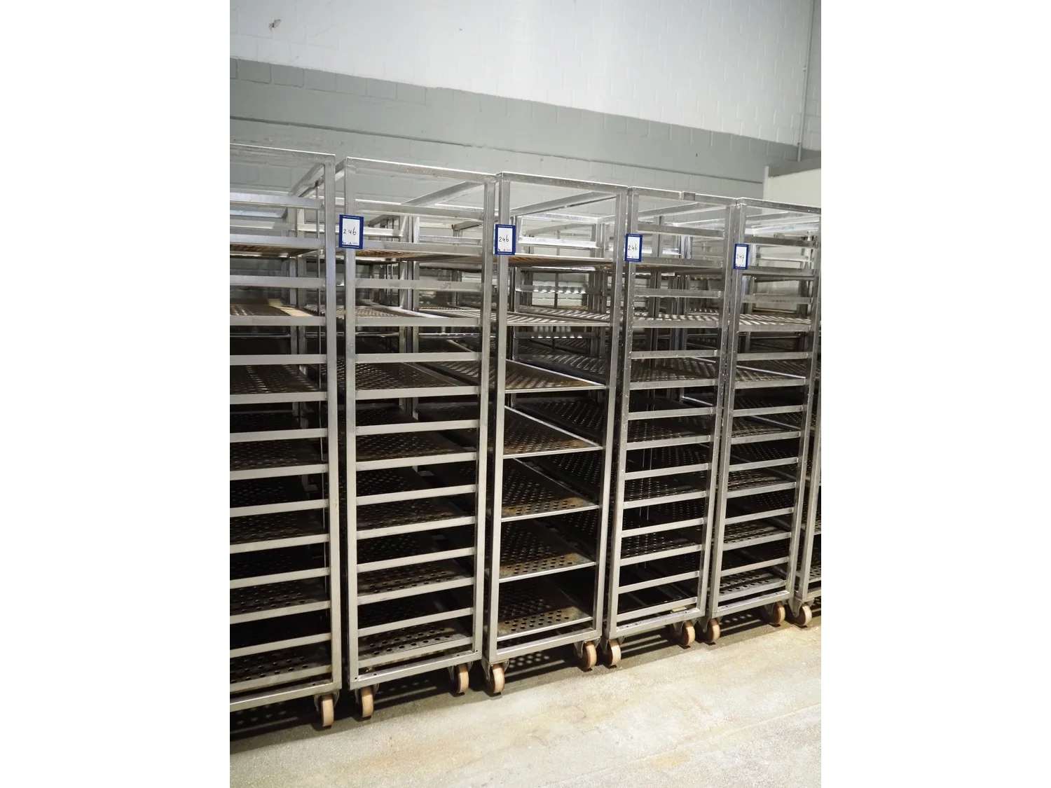 6 s/s cooking trolleys used for cabbage, 14 floors each, dimensions: (6x) 1040 mm x 500 mm x 1900 mm.