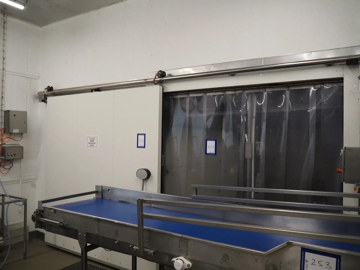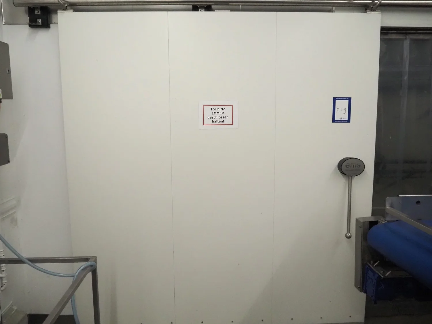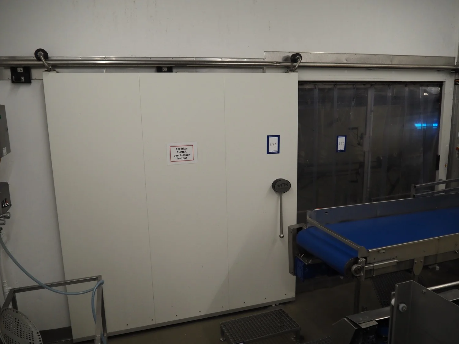 EMS refrigerated sliding door, thickness door: 80 mm, dimensions door: 2400 mm x 2600 mm, length rails: 5000 mm.