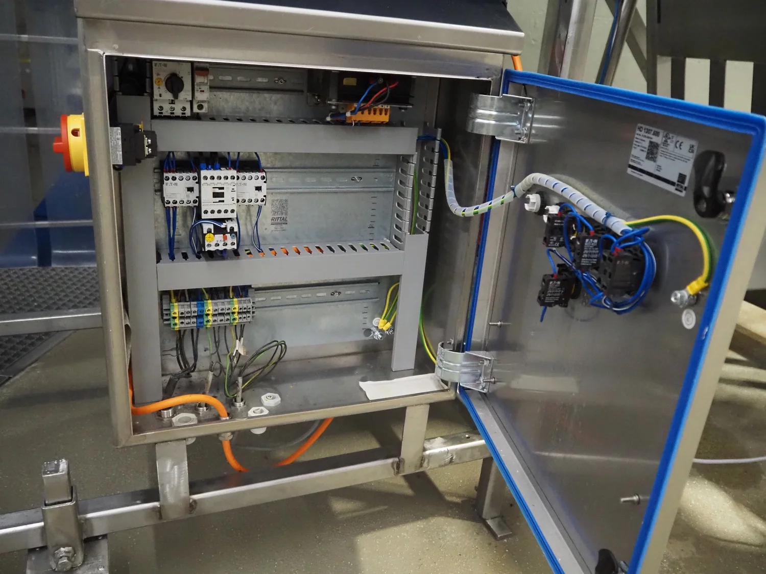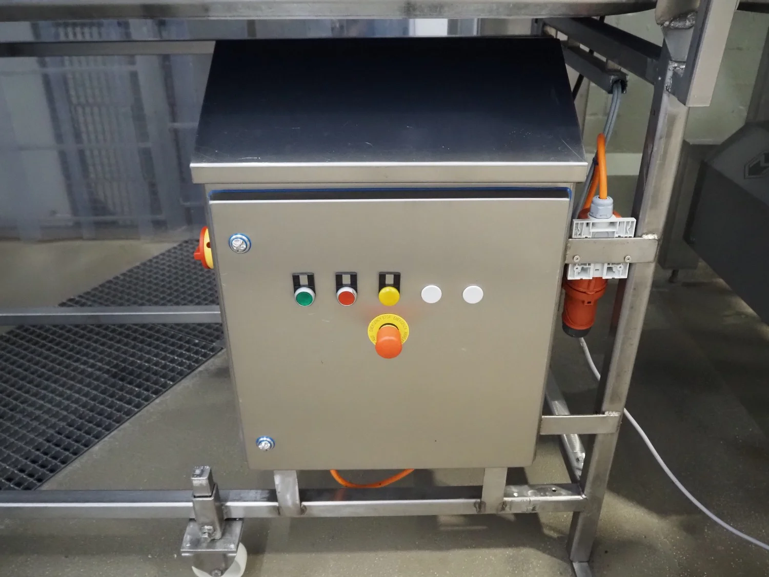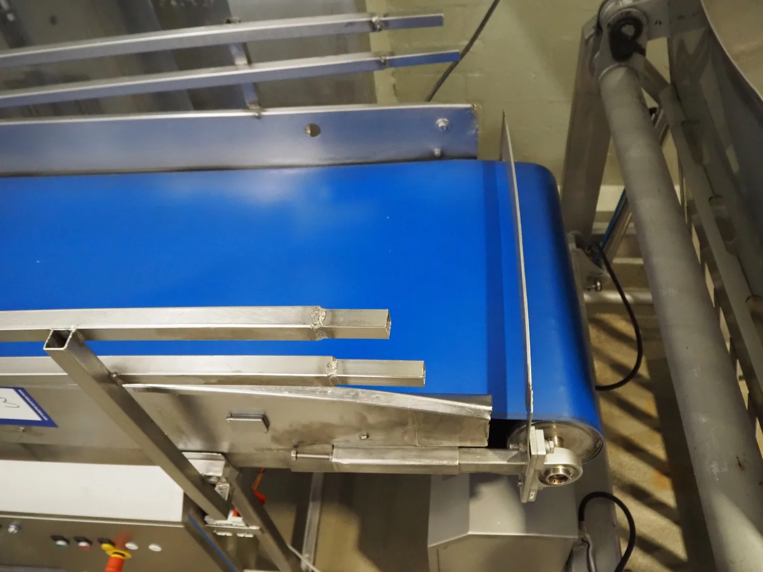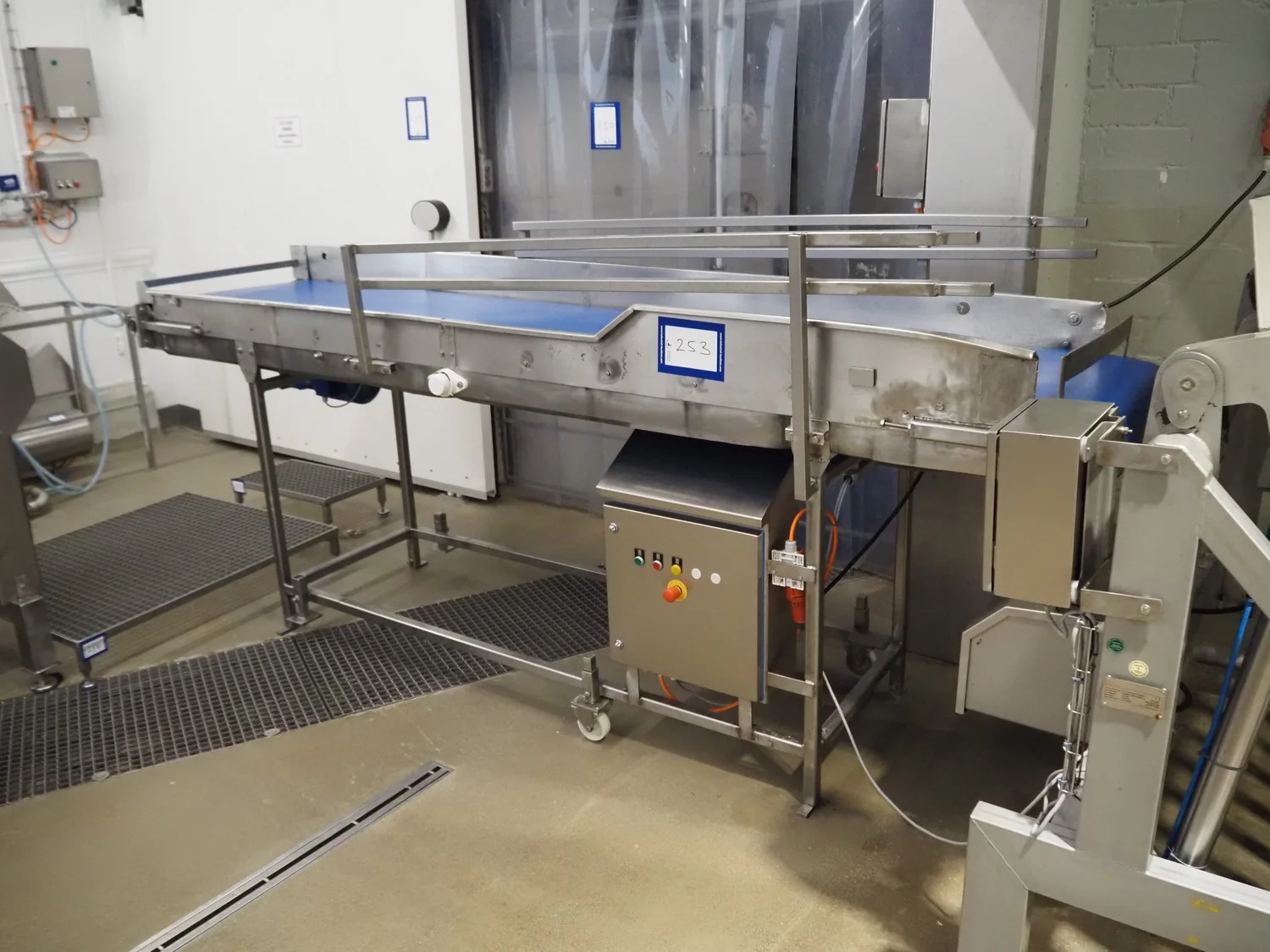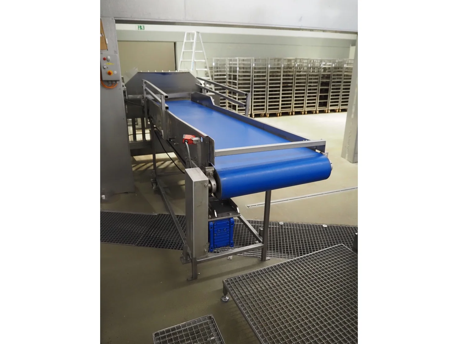 Transport belt, s/s frame, plastic belt, belt width: 700 mm, total dimensions: 3400 mm x 800 mm x 1550 mm.