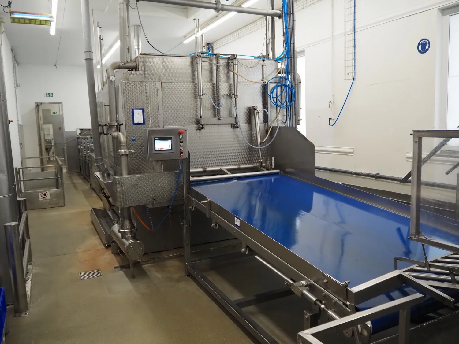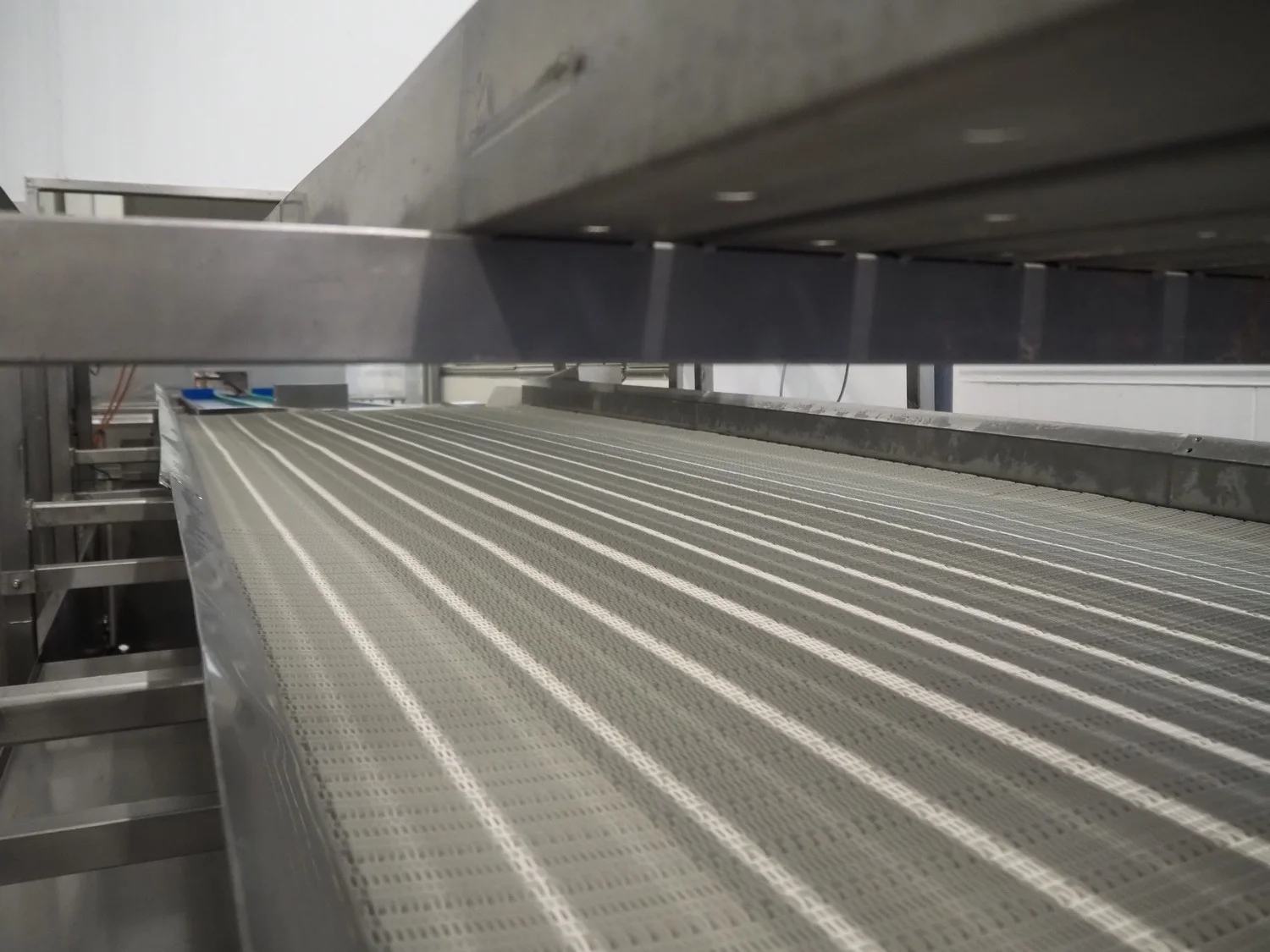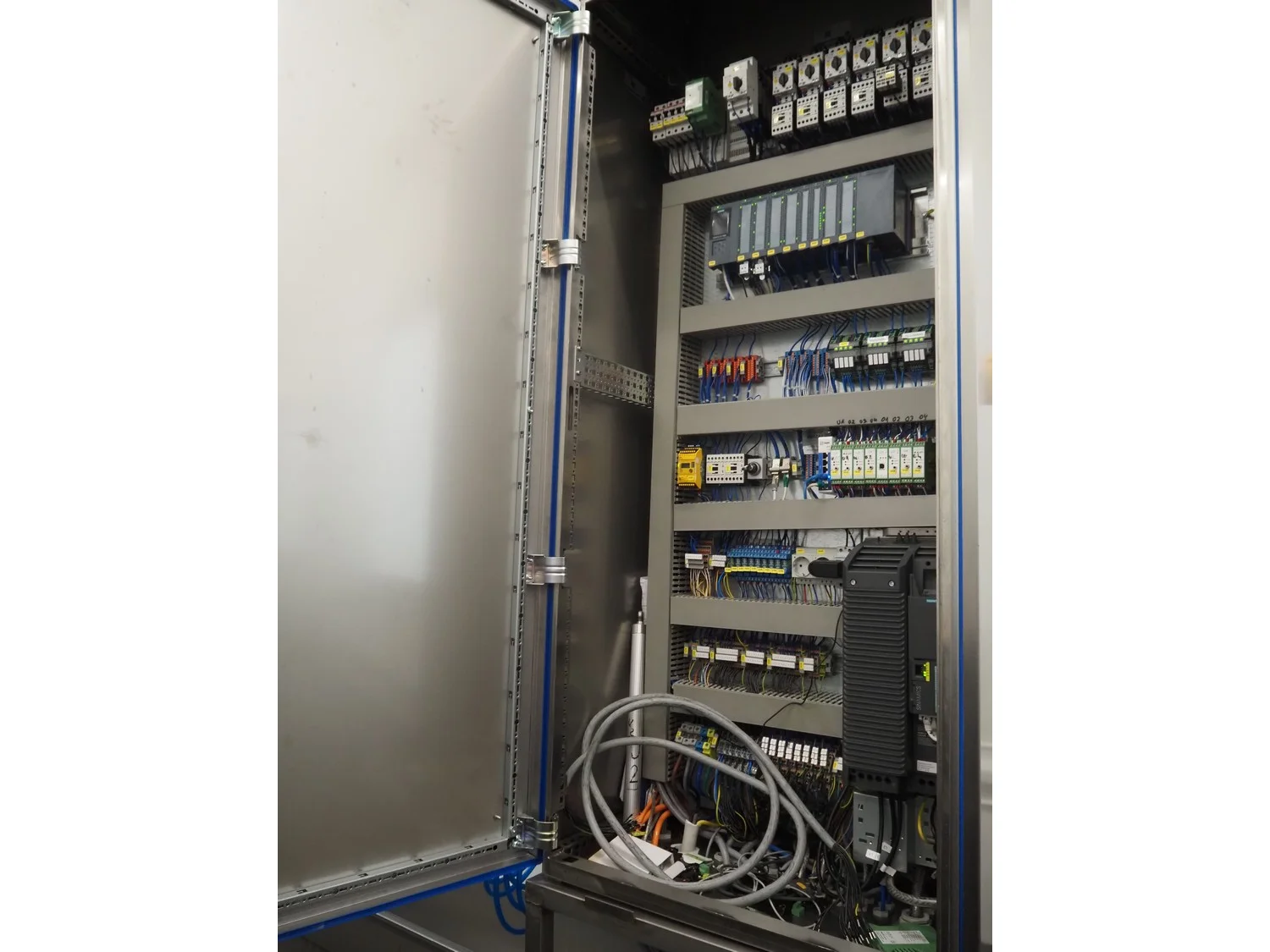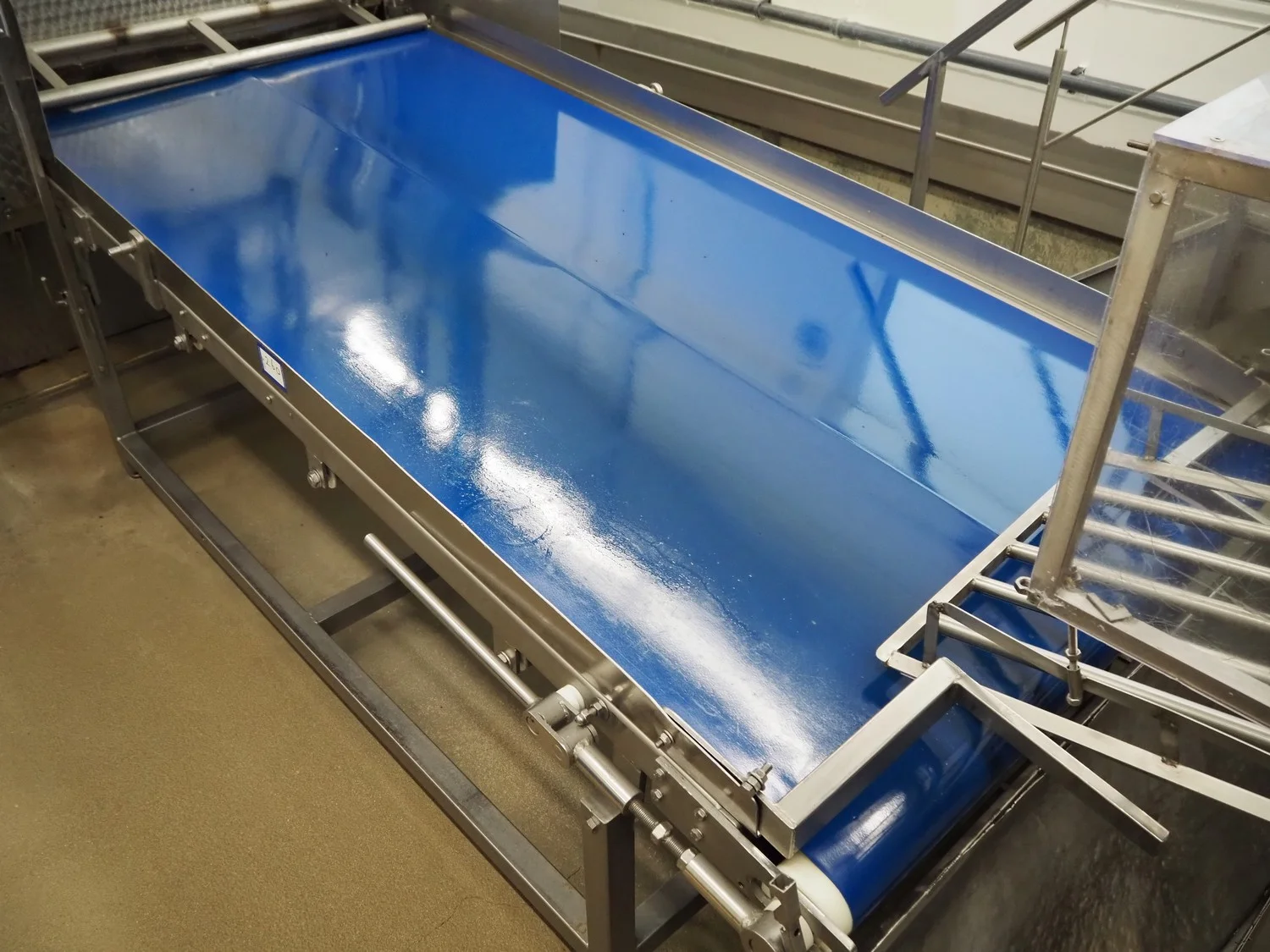Cabbage cooking line consisting of: infeed belt, s/s frame, plastic belt, belt width: 1420 mm, total dimensions: 3100 mm x 1600 mm x 1050 mm. cooking belt with pricking system, s/s mesh belt, belt width: 1460 mm, total dimensions: 4100 mm x 2600 mm x 3600 mm and 3400 mm x 2200 mm x 1700 mm. outfeed belt, plastic mesh belt, belt width: 1420 mm, total dimensions: 4700 mm x 2000 mm x 2570 mm. outfeed table, dimensions: 1450 mm x 1300 mm x 1100 mm. 4 circulation pumps 3 s/s switch cabinets.